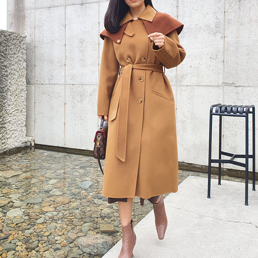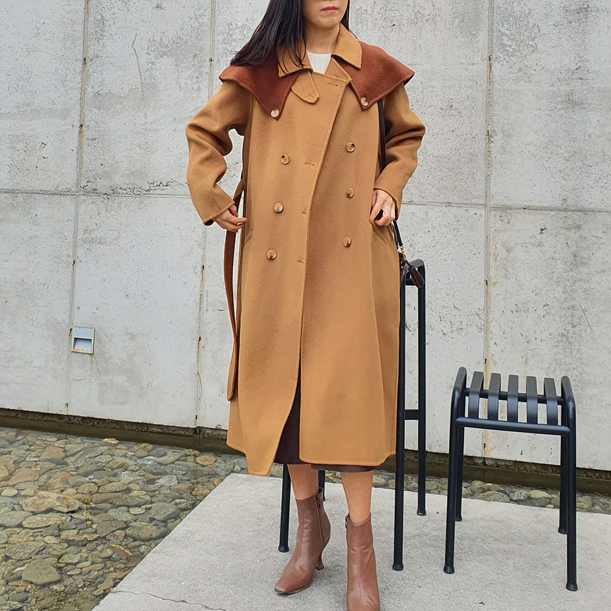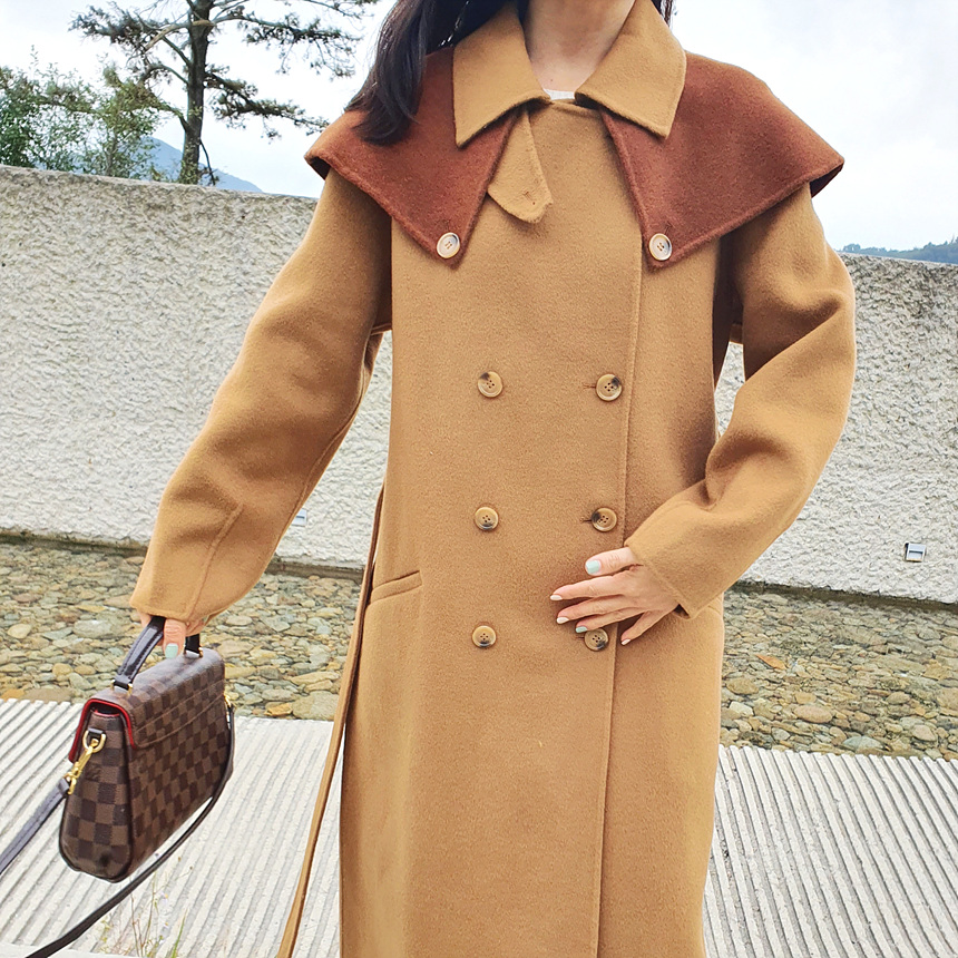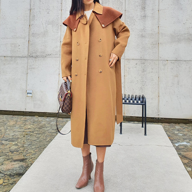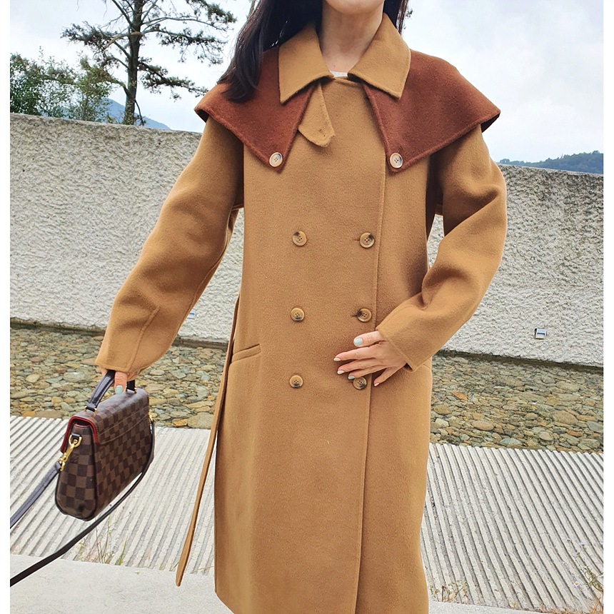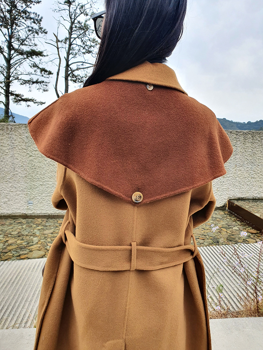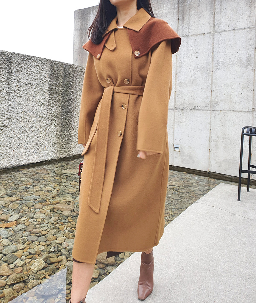 바로발송 배색 케이프 탈부착 울100 핸드메이드 코트