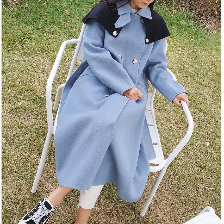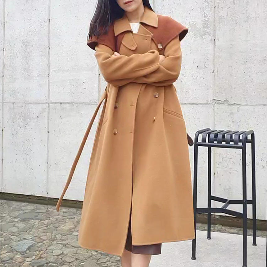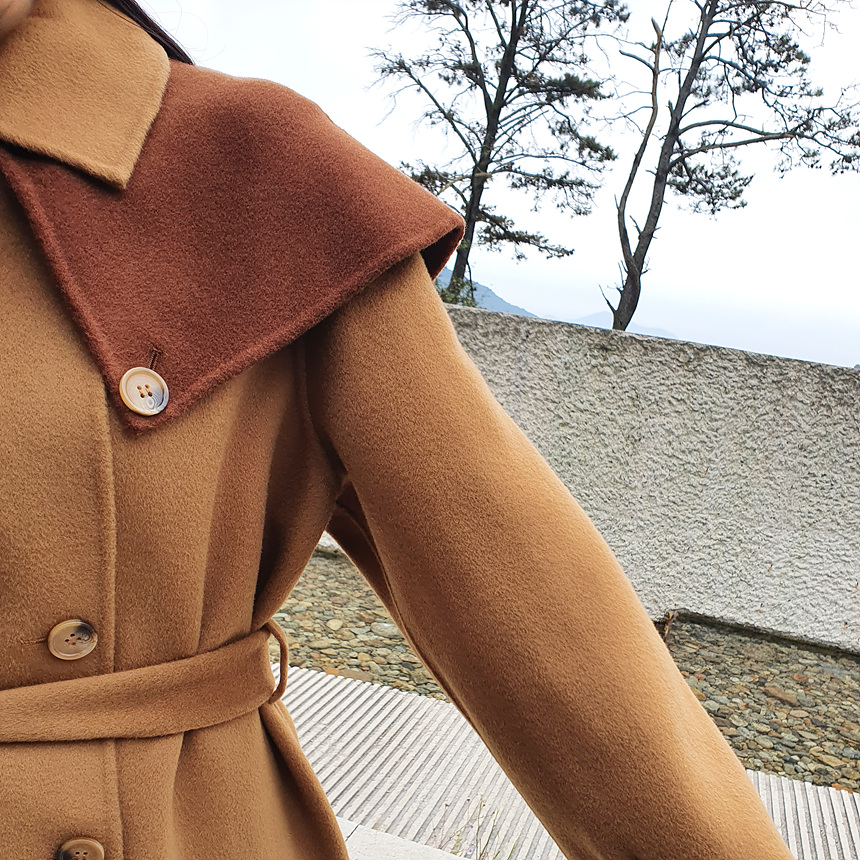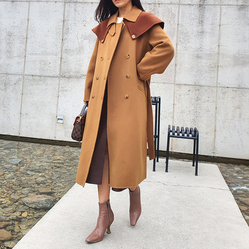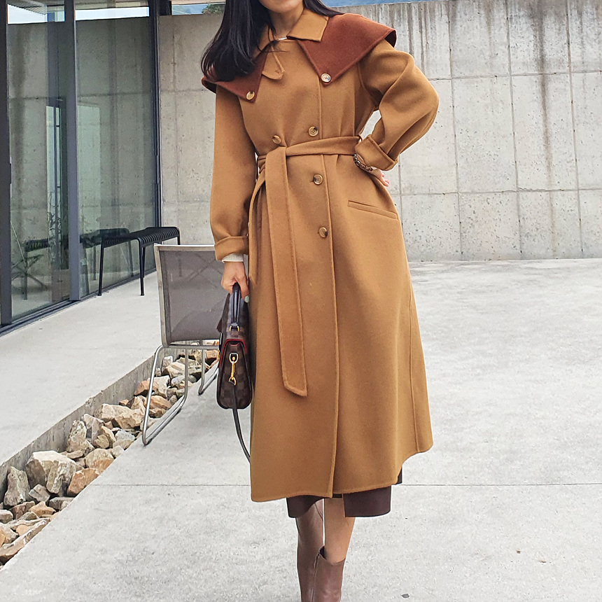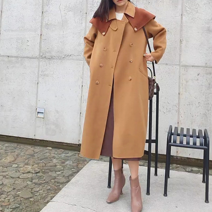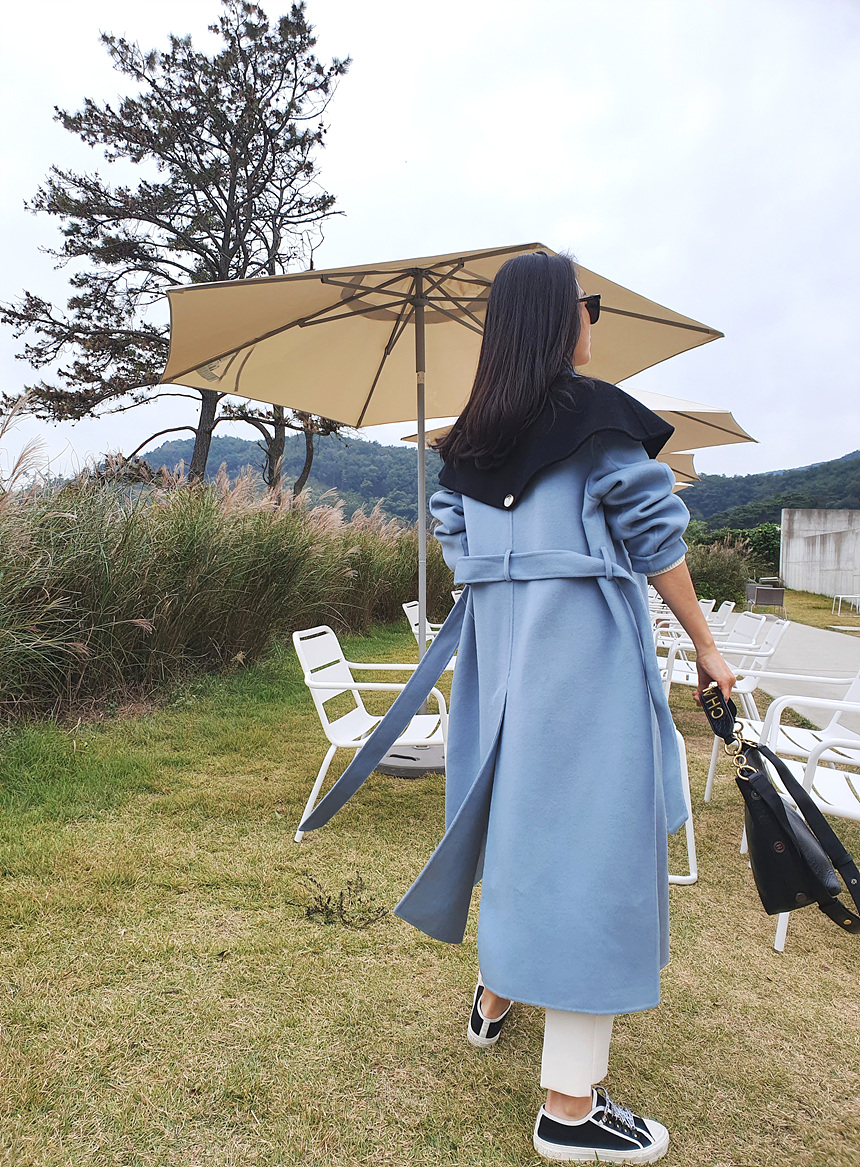 바로발송 배색 케이프 탈부착 울100 핸드메이드 코트
