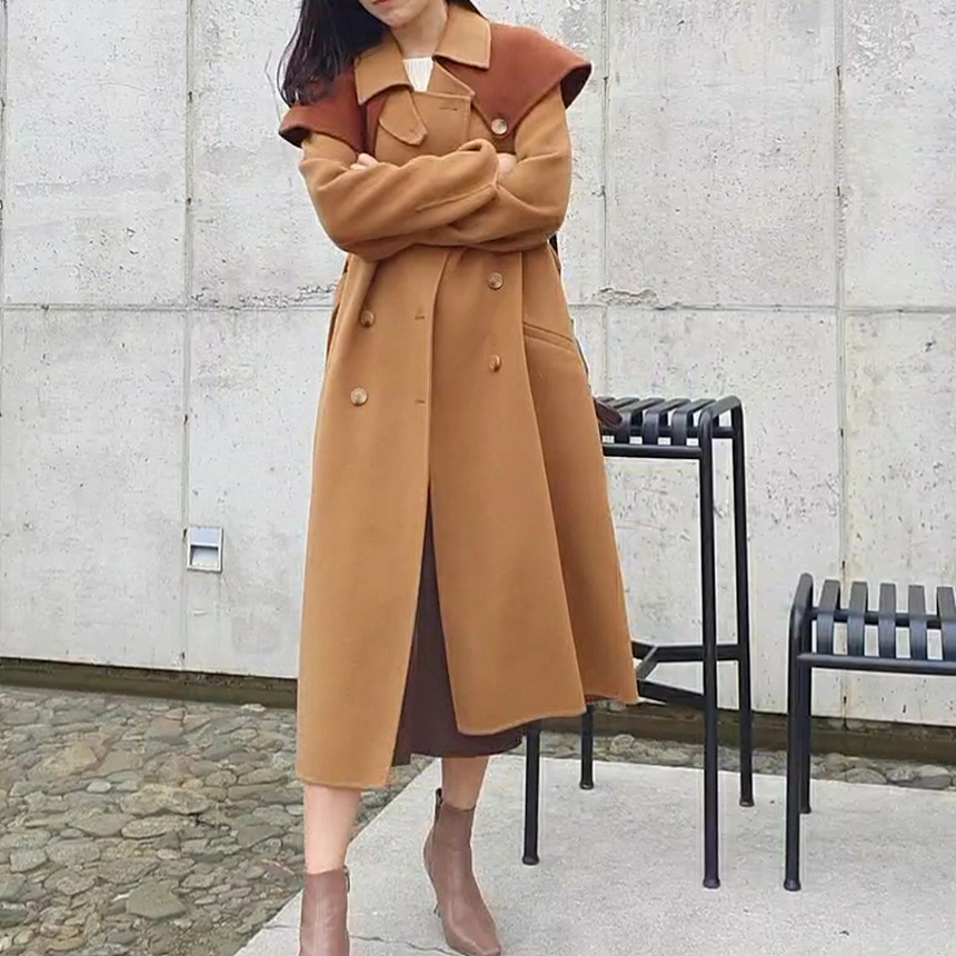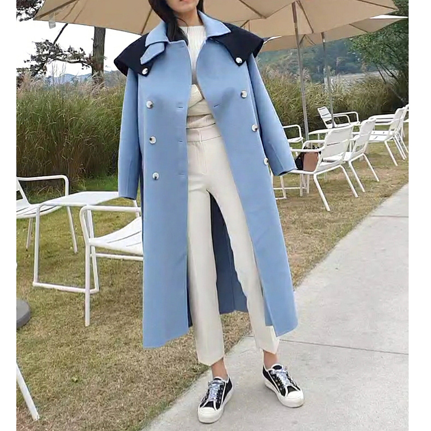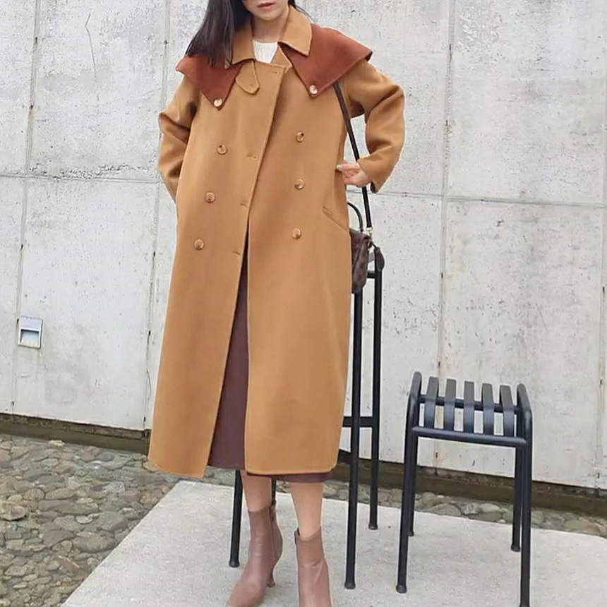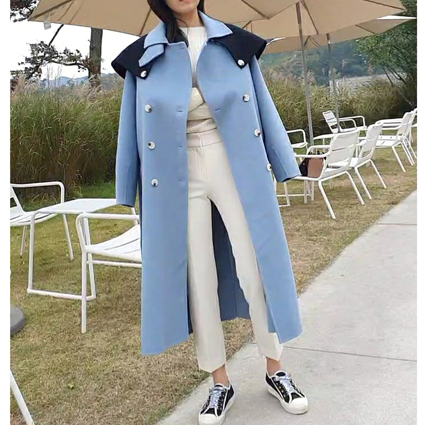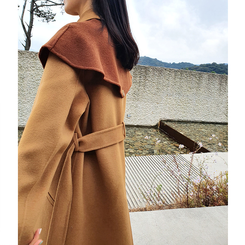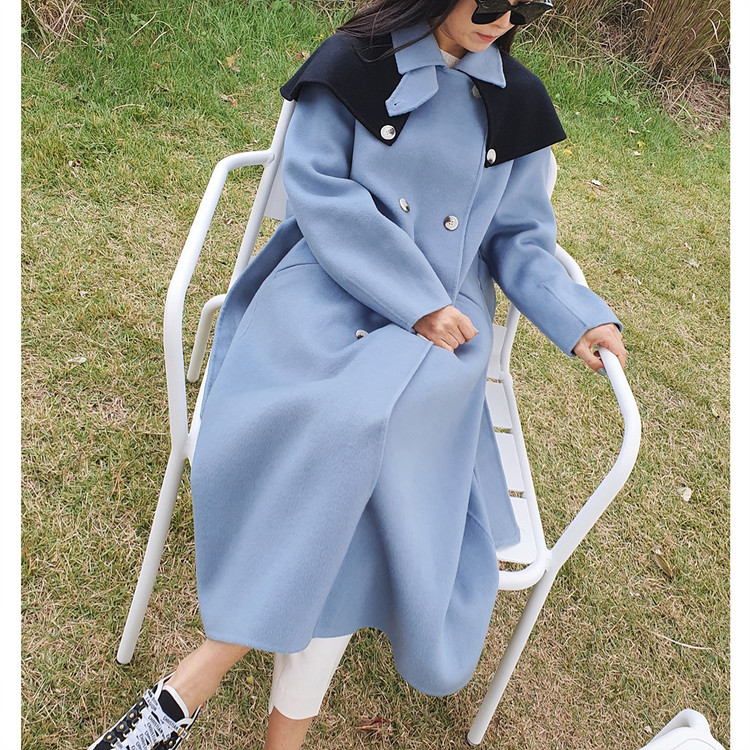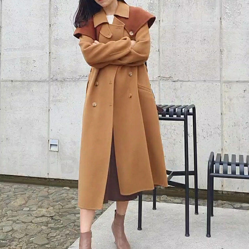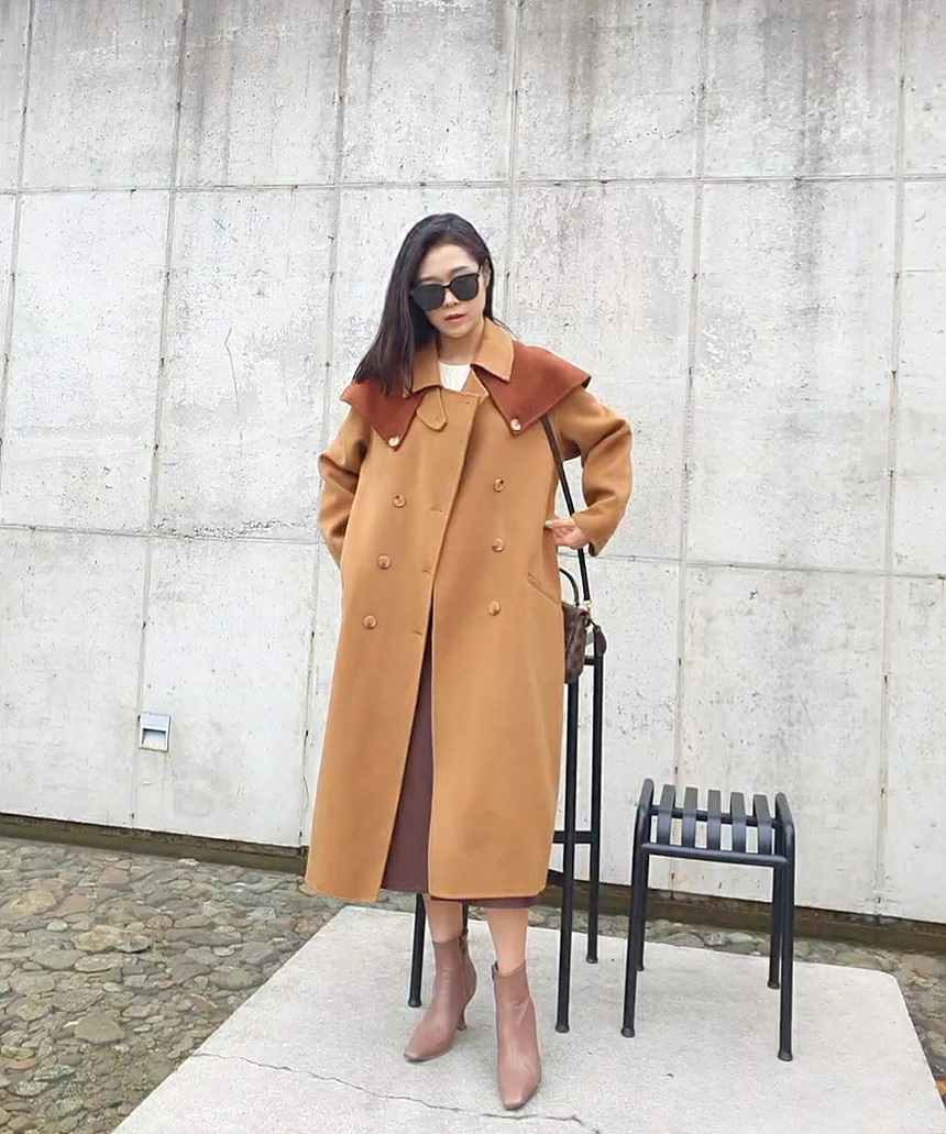 바로발송 배색 케이프 탈부착 울100 핸드메이드 코트