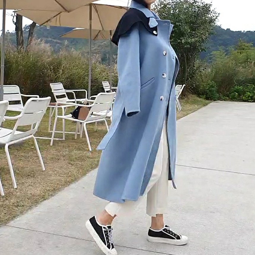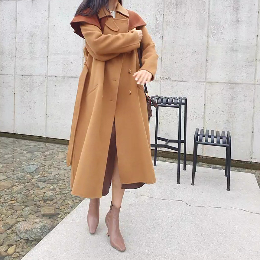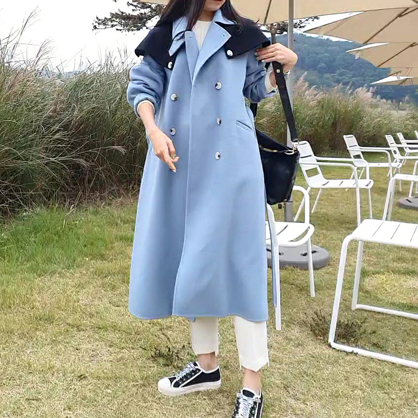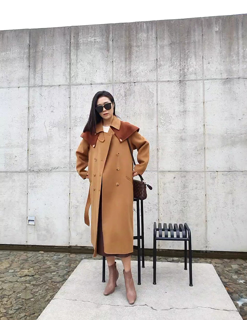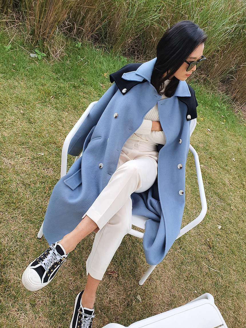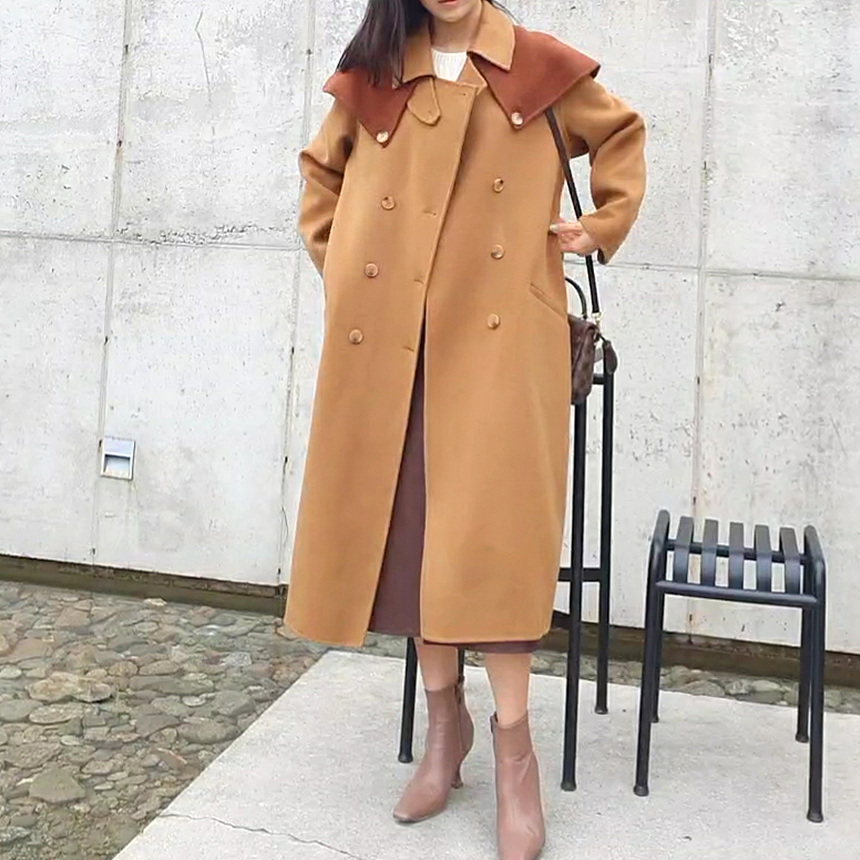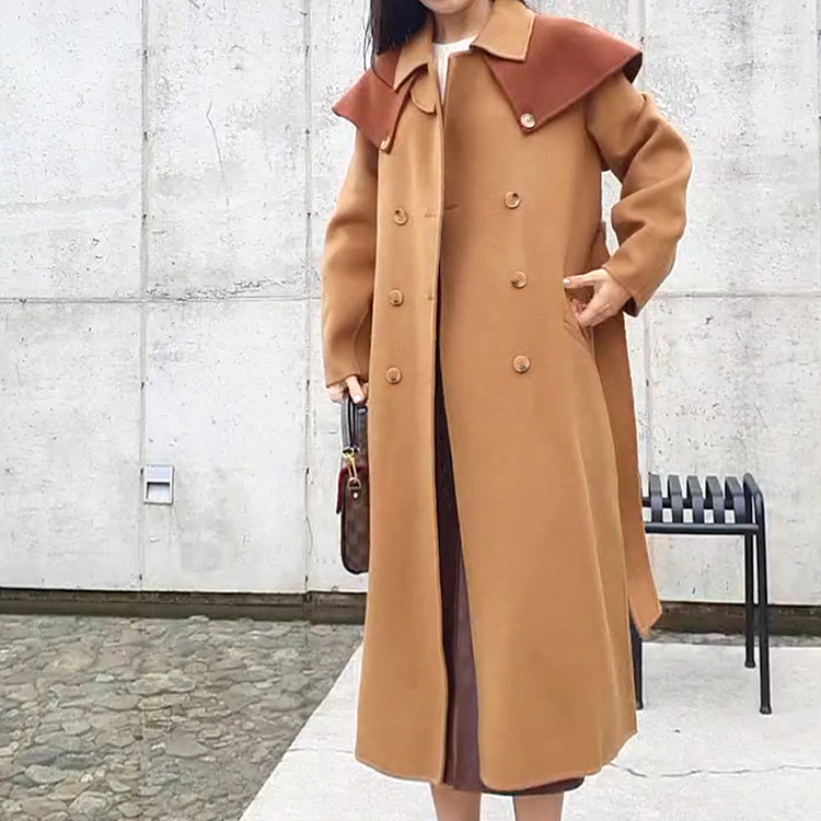 바로발송 배색 케이프 탈부착 울100 핸드메이드 코트