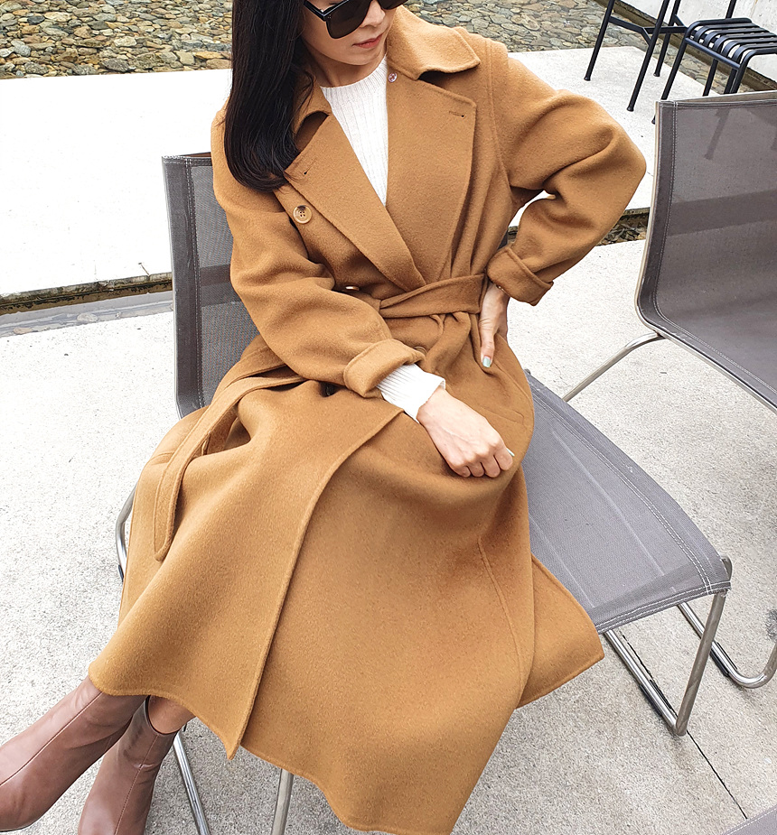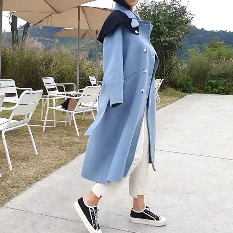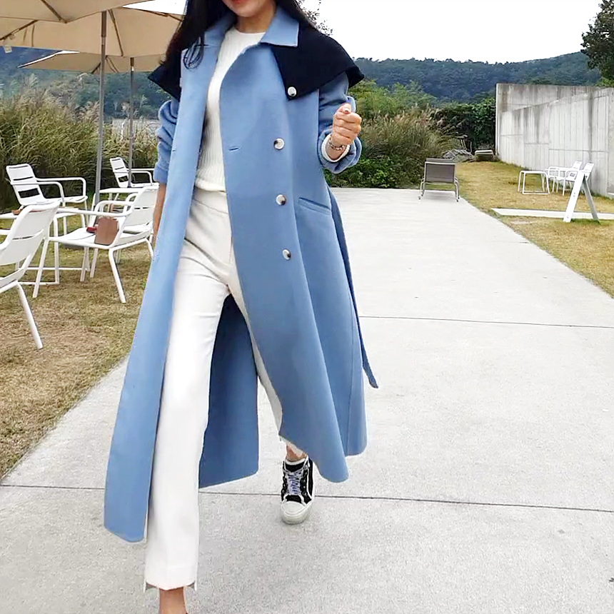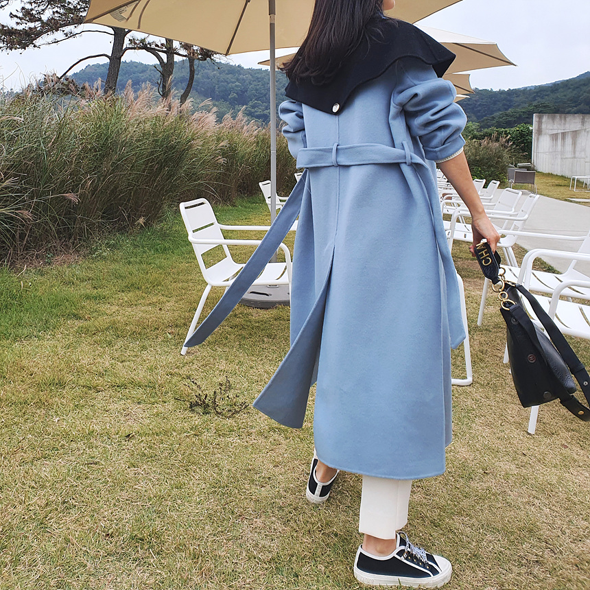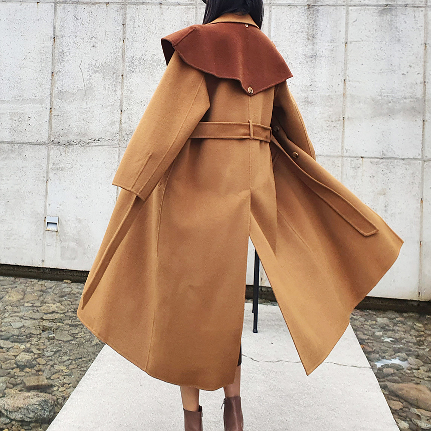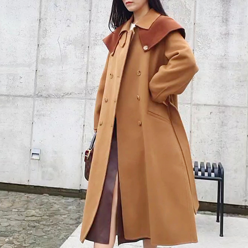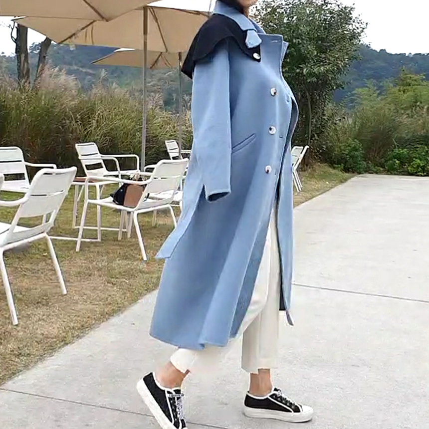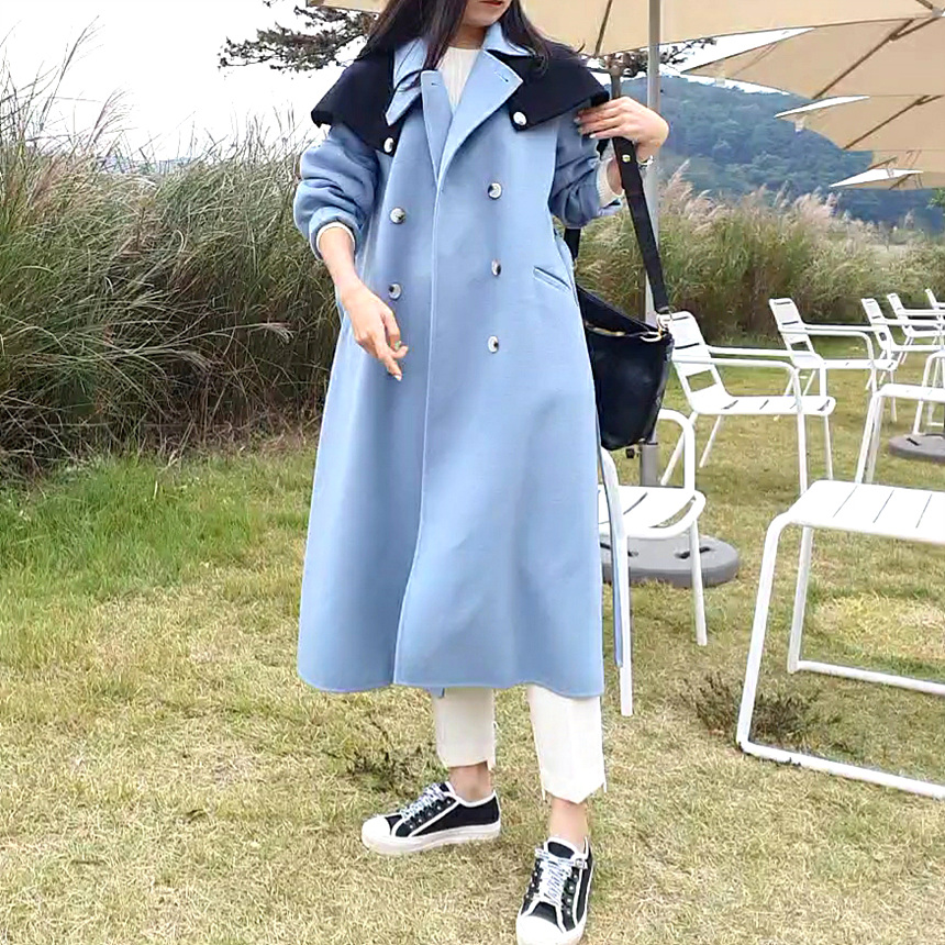 바로발송 배색 케이프 탈부착 울100 핸드메이드 코트