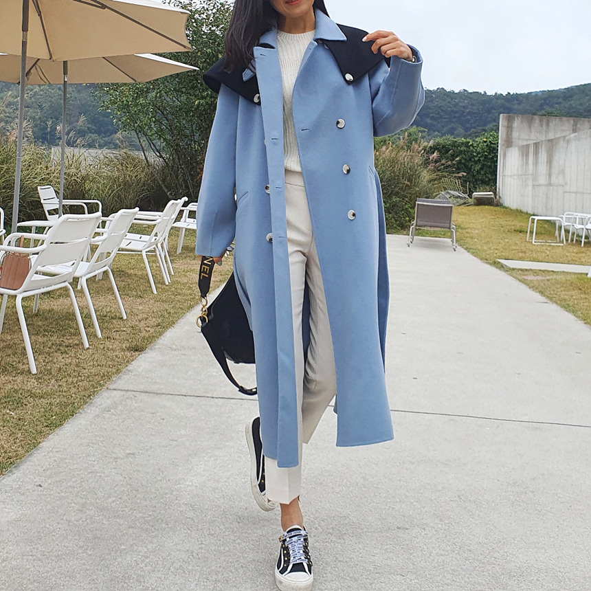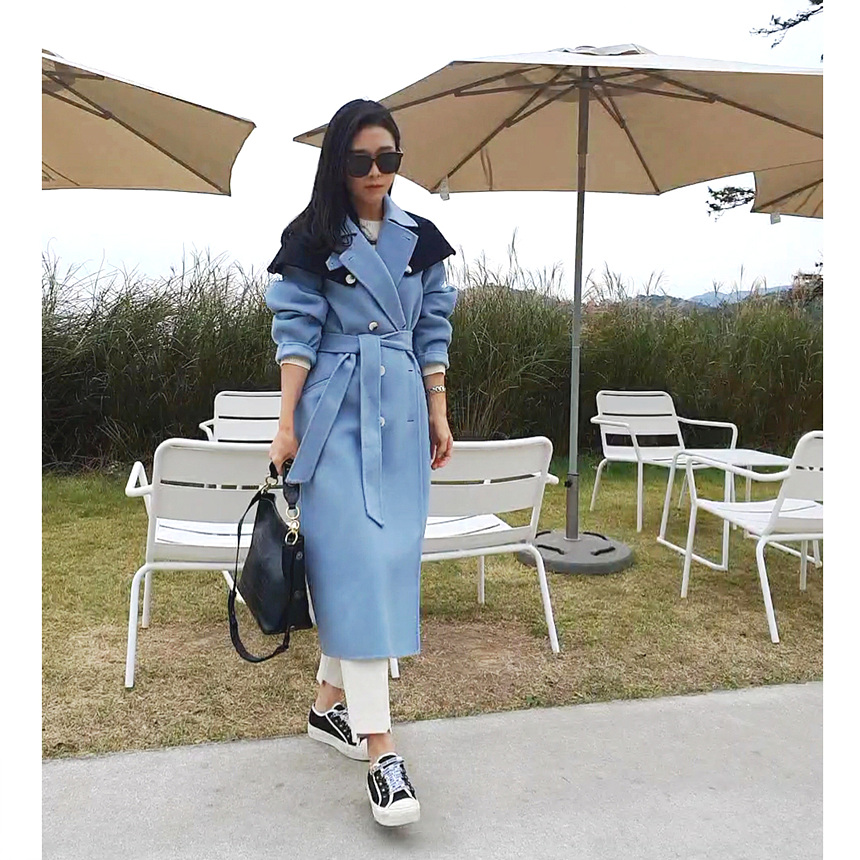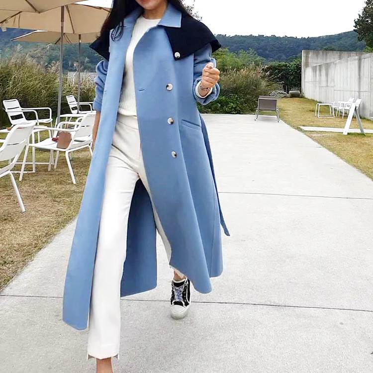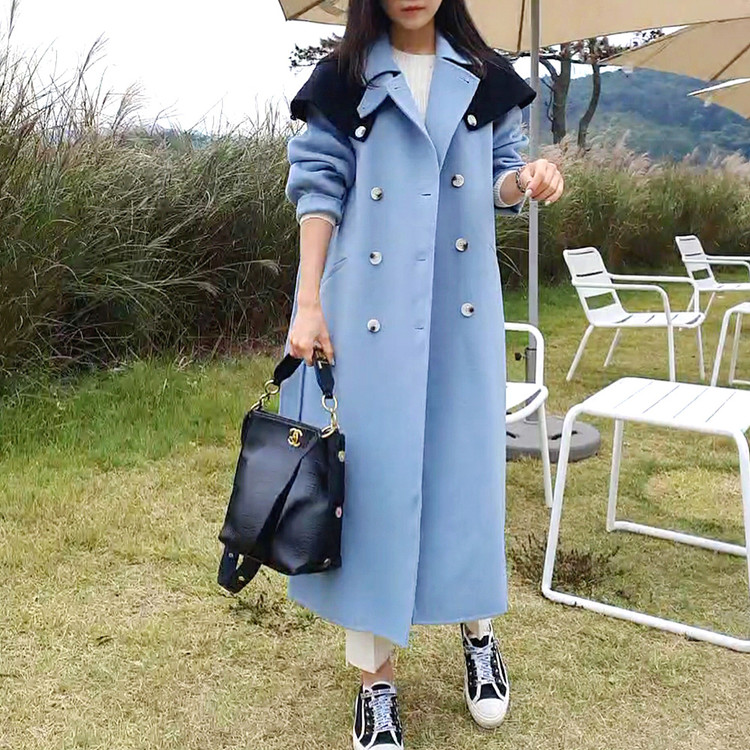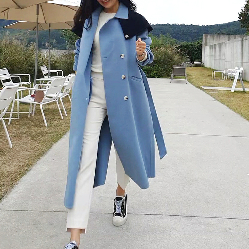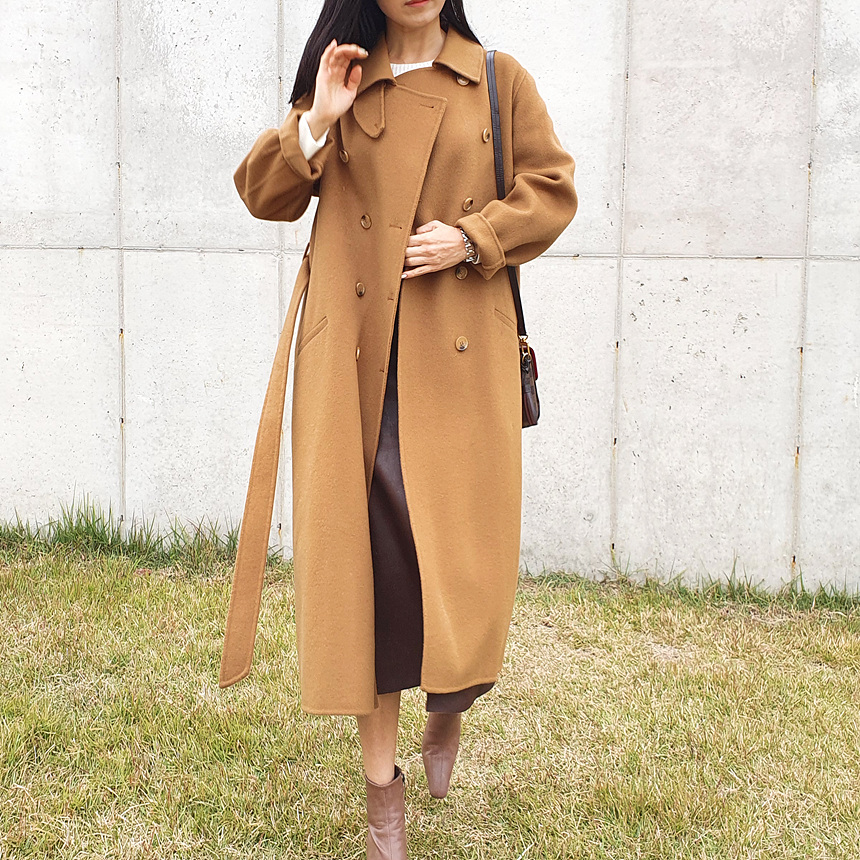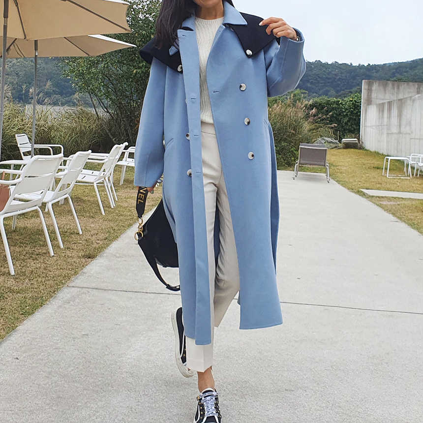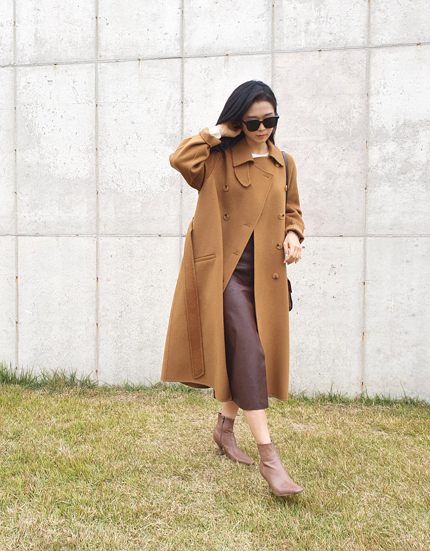 바로발송 배색 케이프 탈부착 울100 핸드메이드 코트