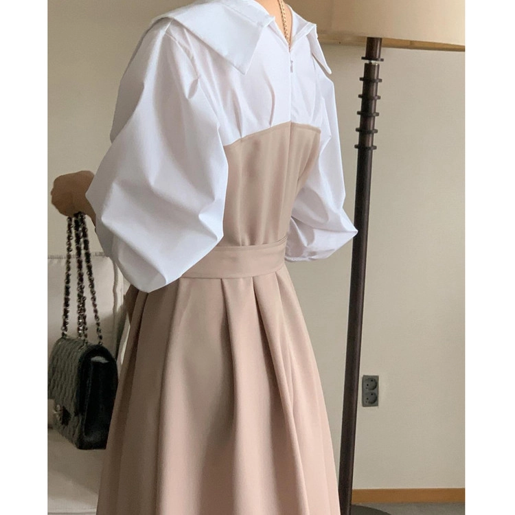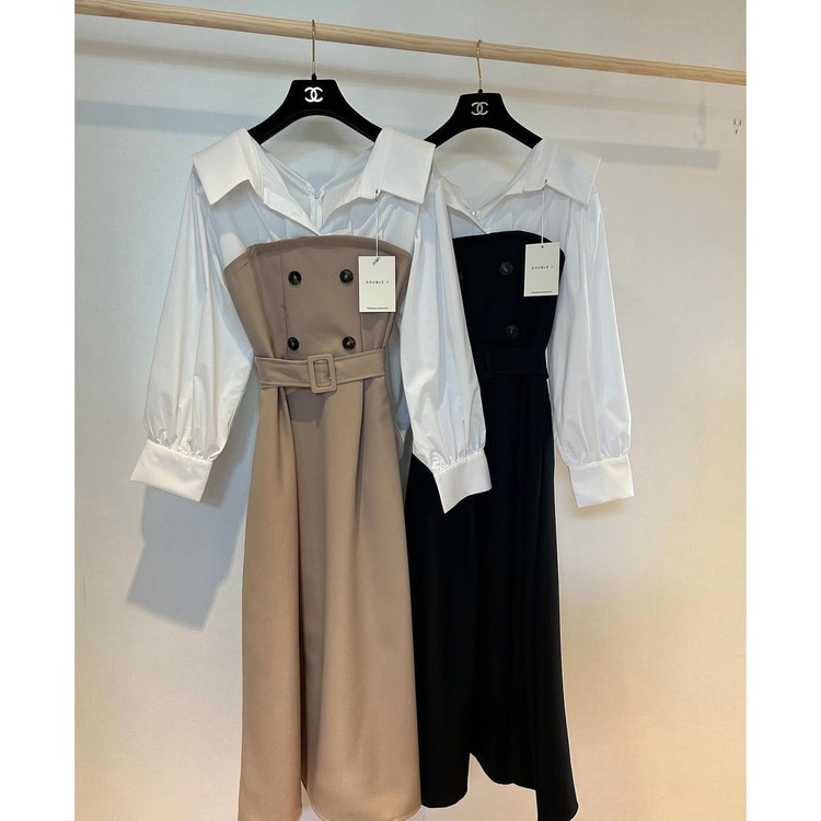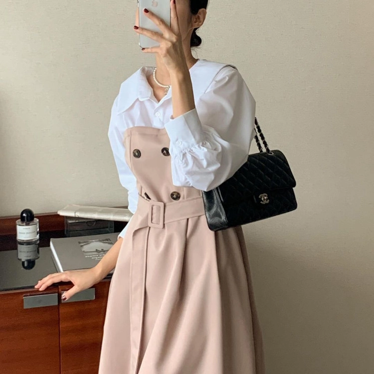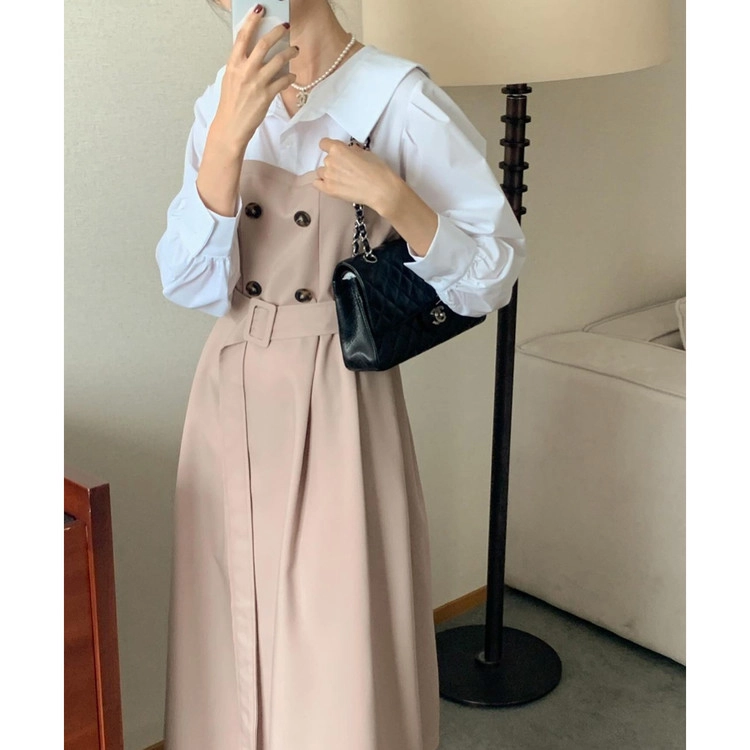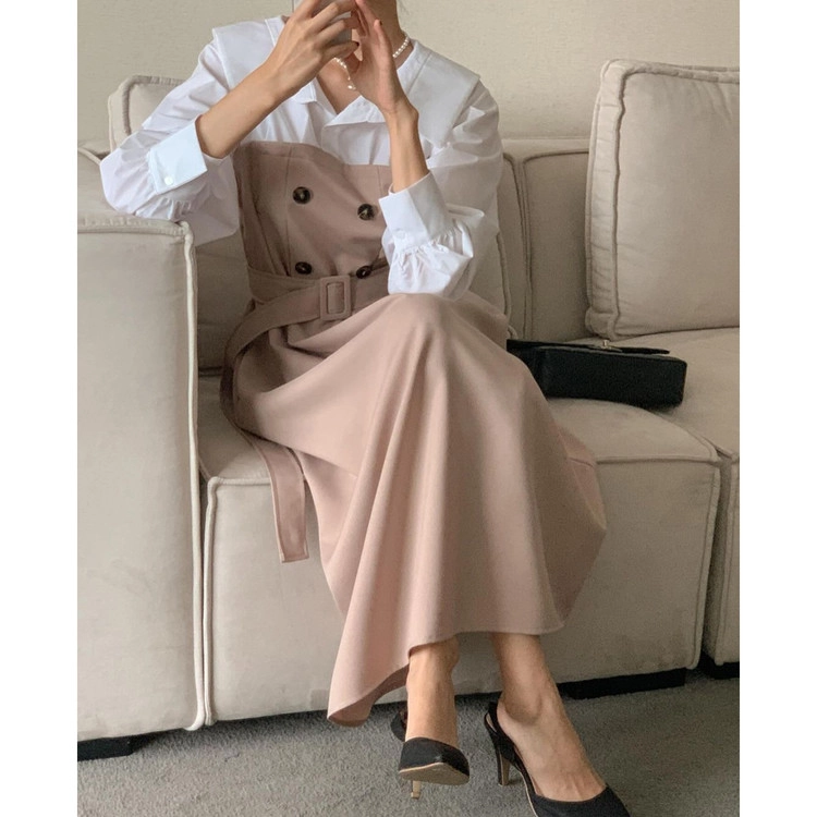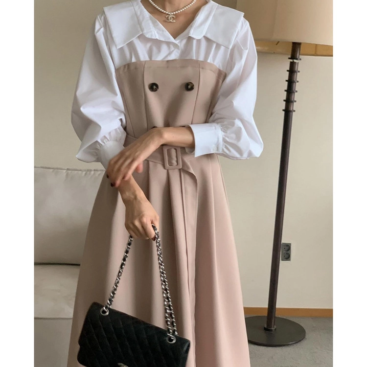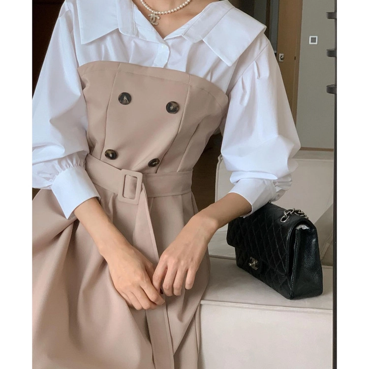 카페 더블 버튼 에이 라인 플레어 바바리 원피스