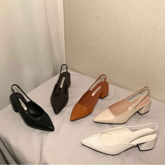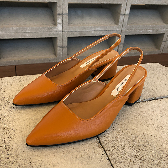 국내제작 수제화 5센티 미들굽 슬링백 펌프스
