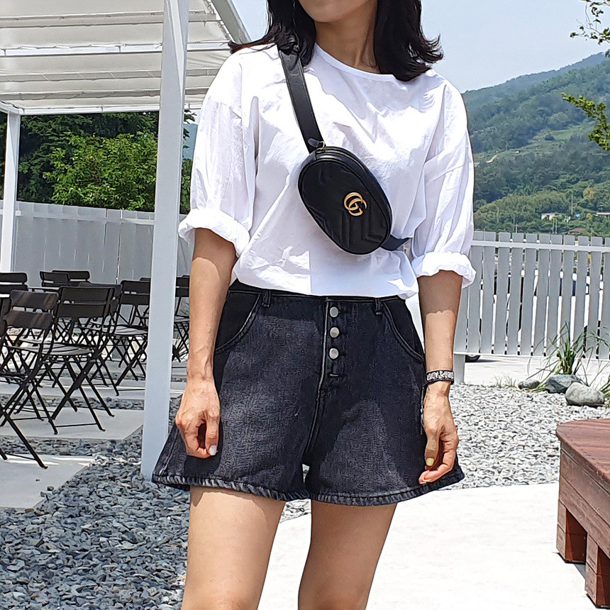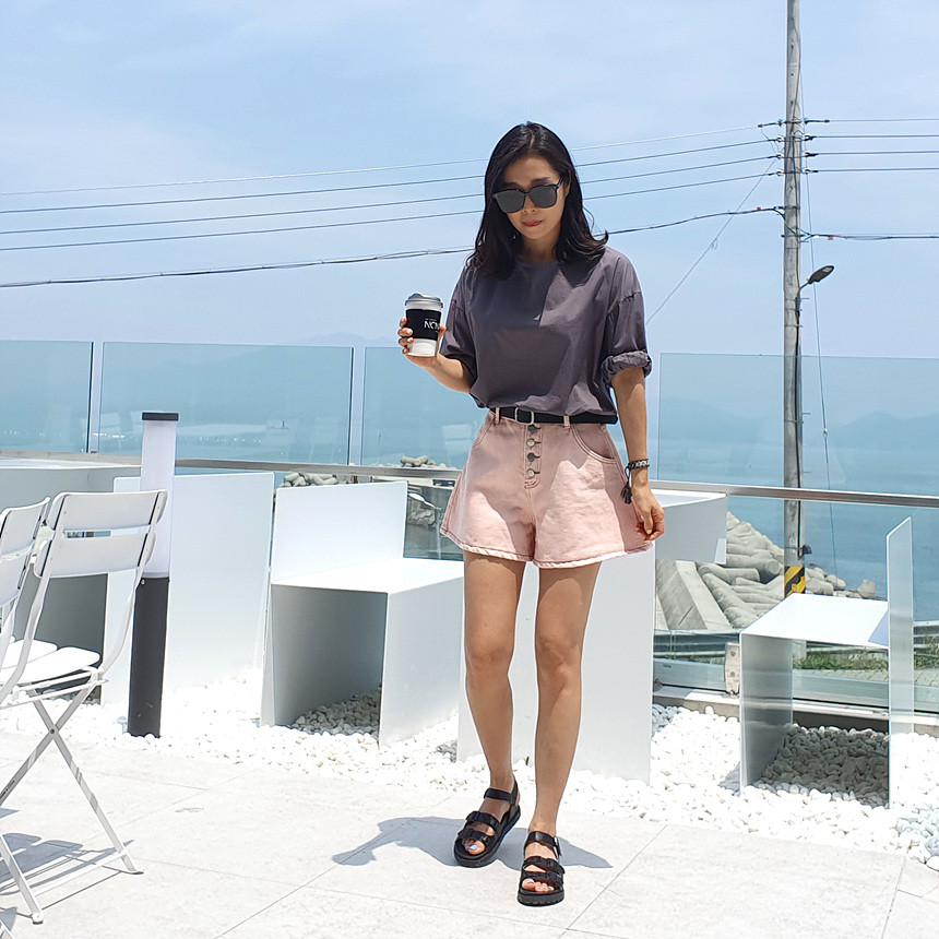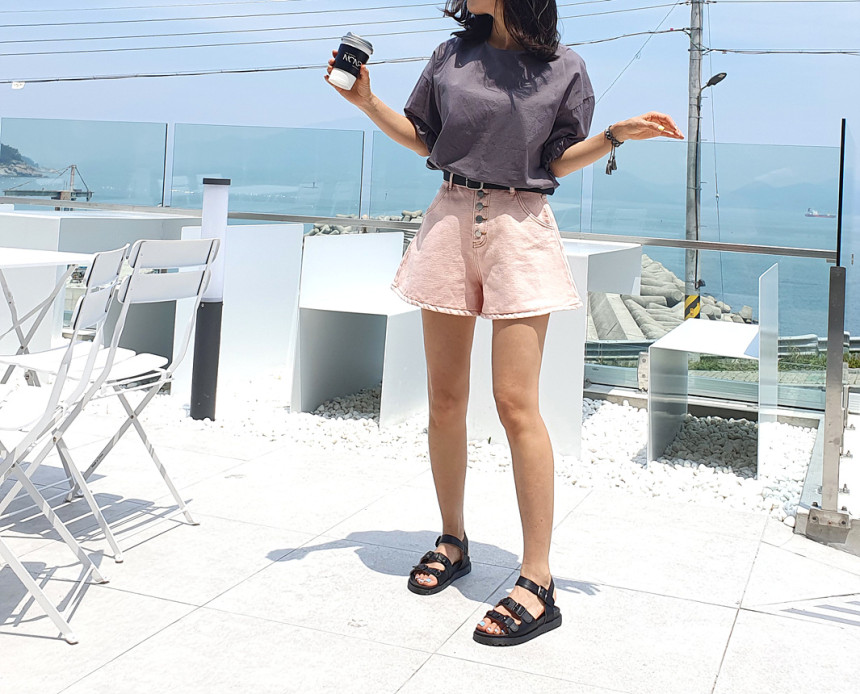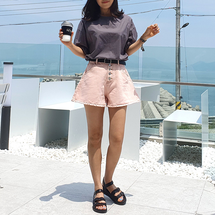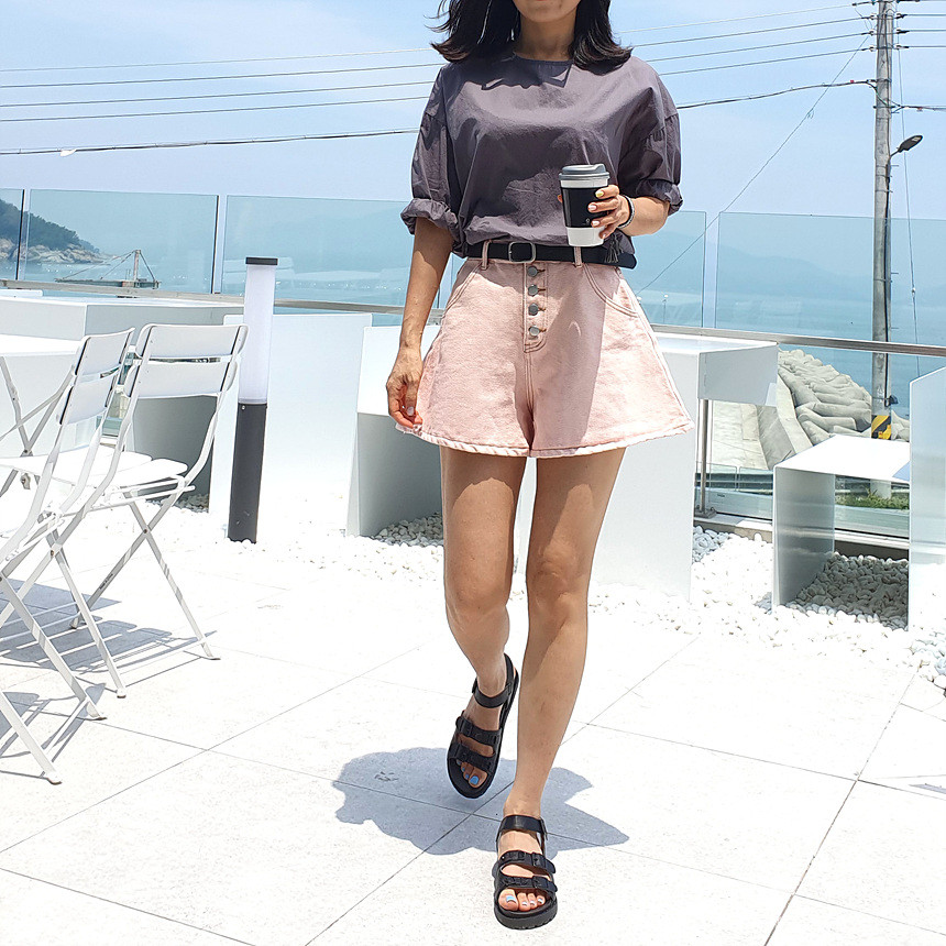 벨트세트 하이웨이스트 버튼 에이라인 플레어 반바지