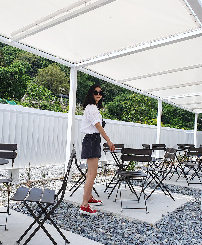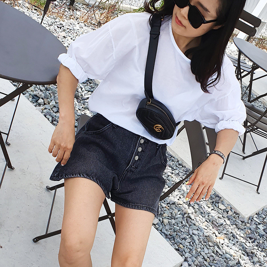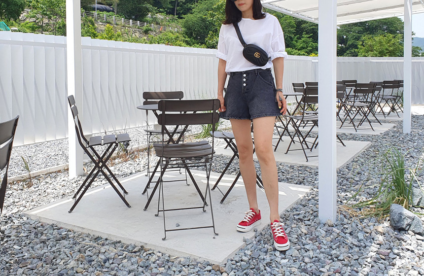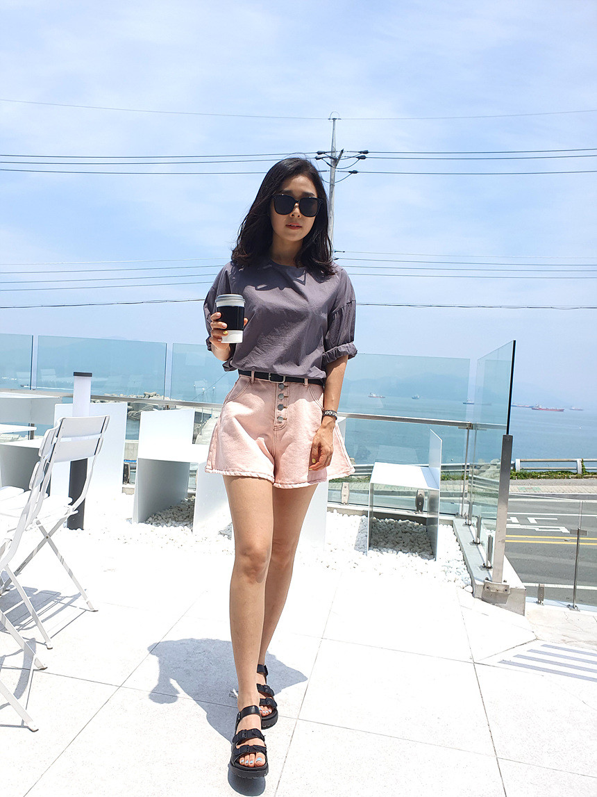 벨트세트 하이웨이스트 버튼 에이라인 플레어 반바지