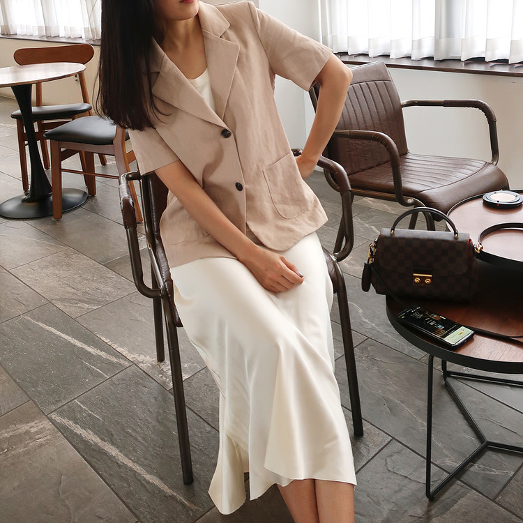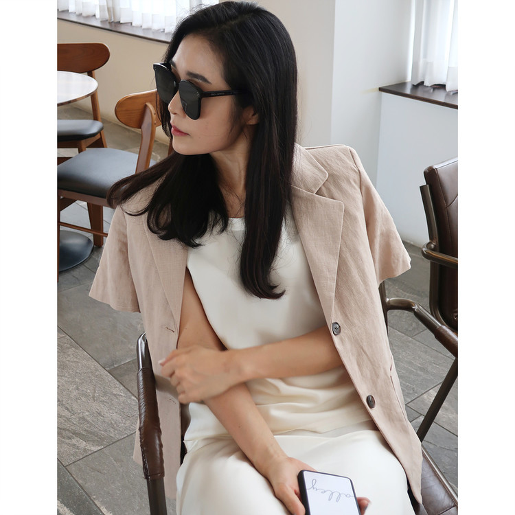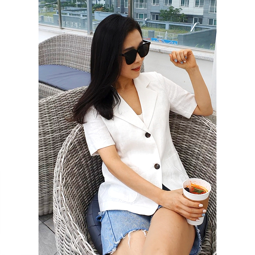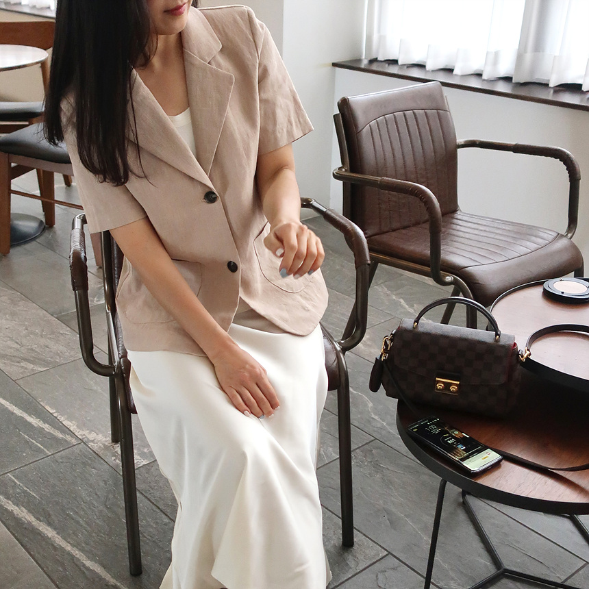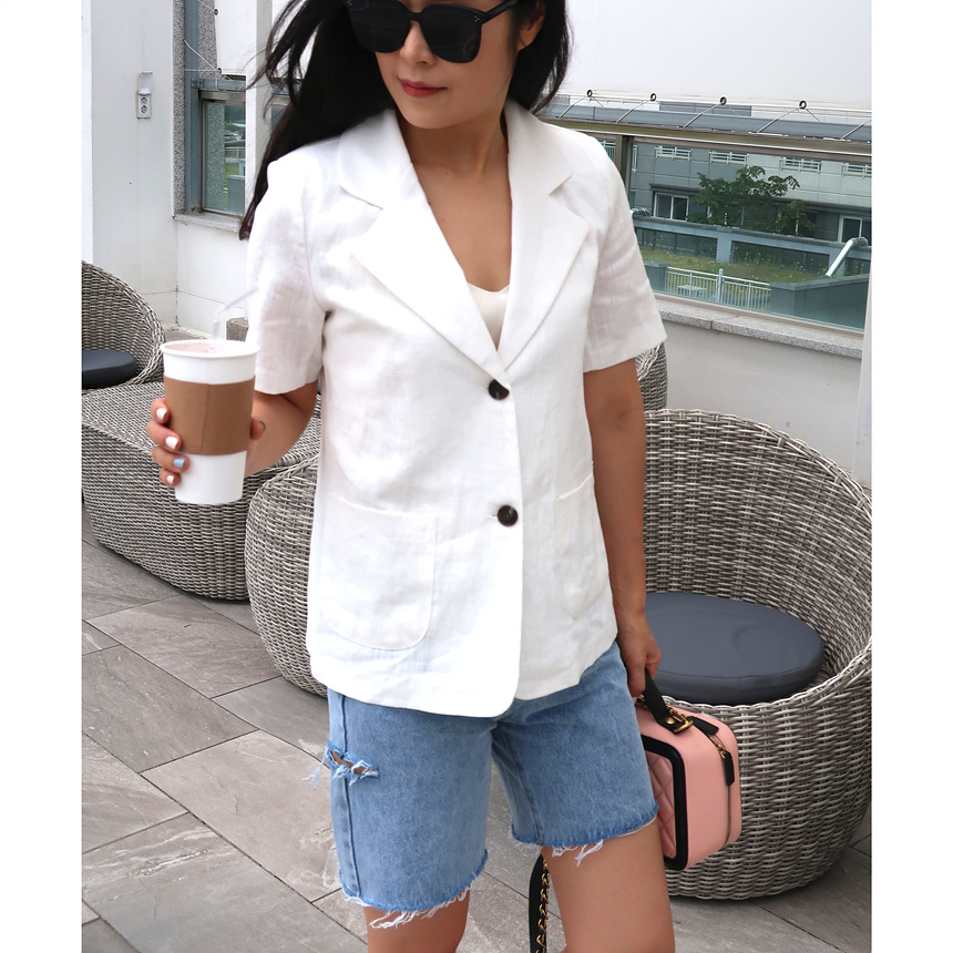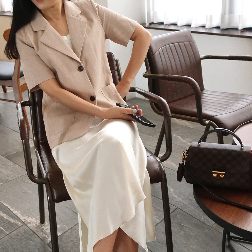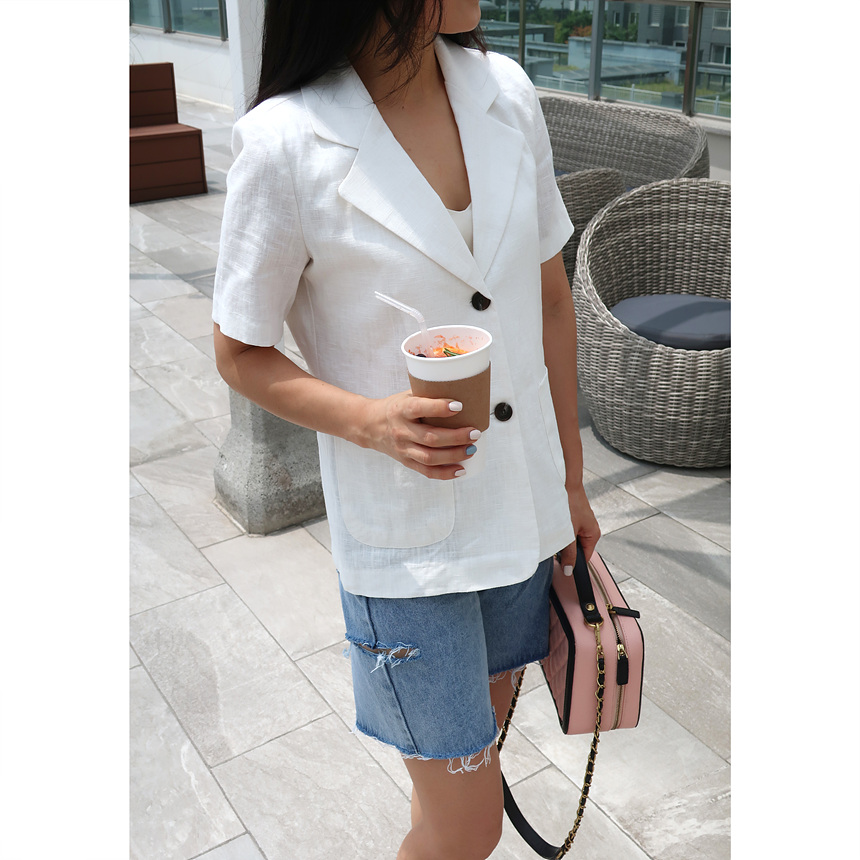반팔 린넨 마 자켓
