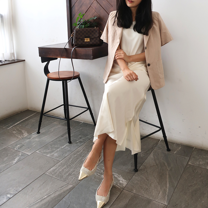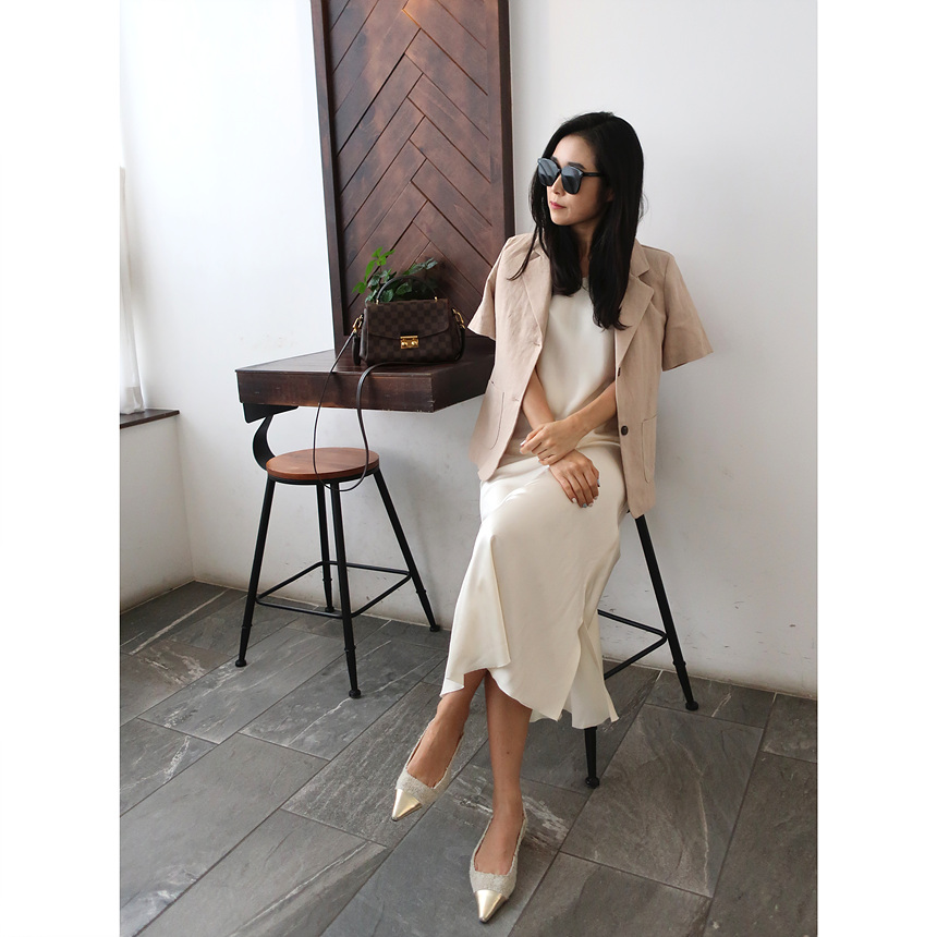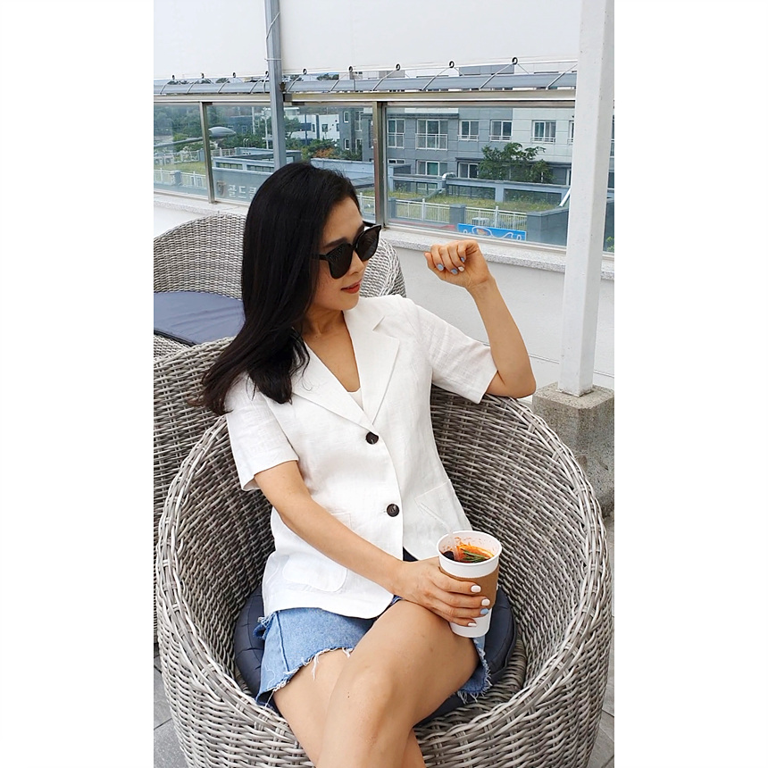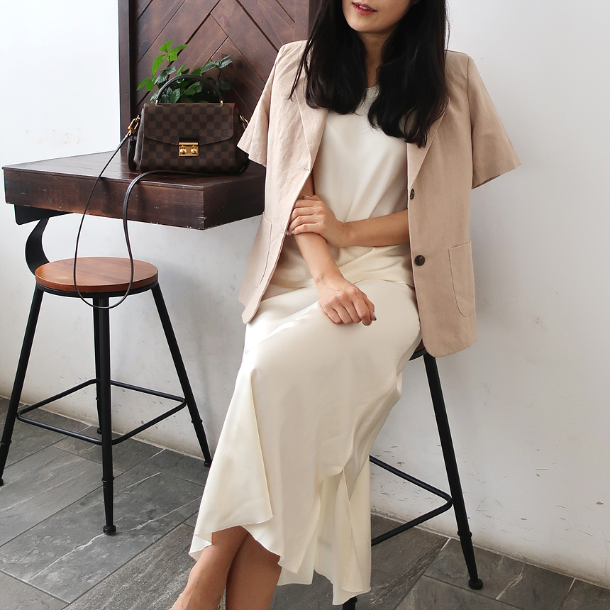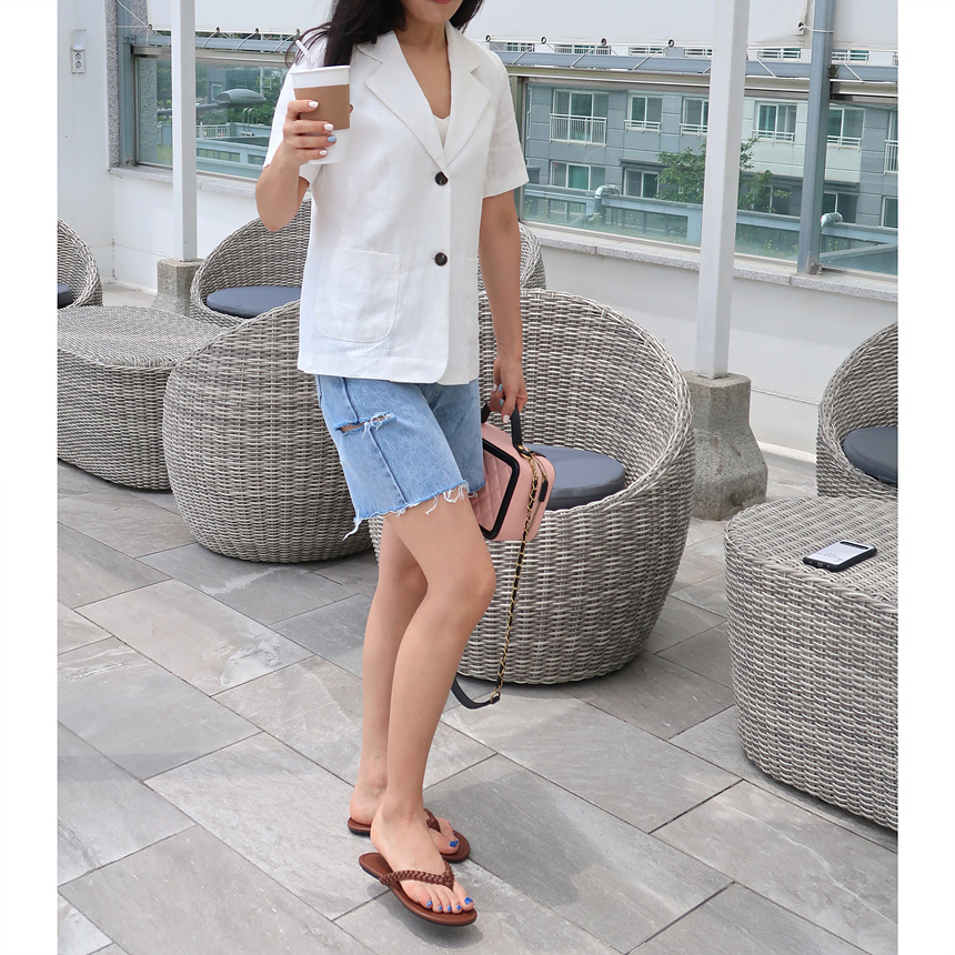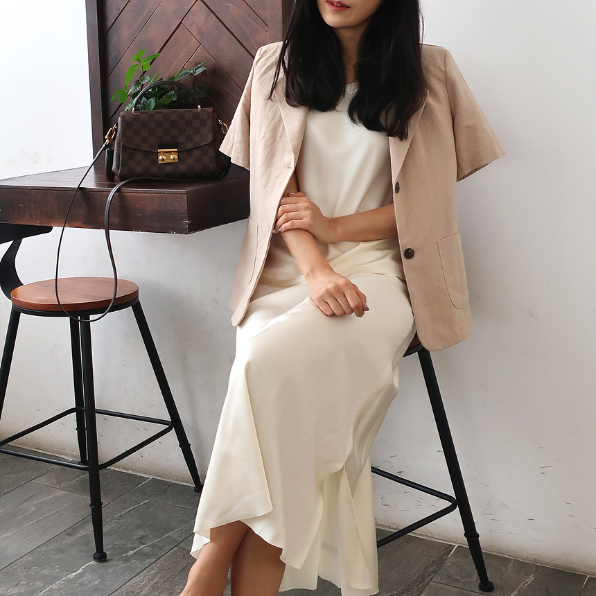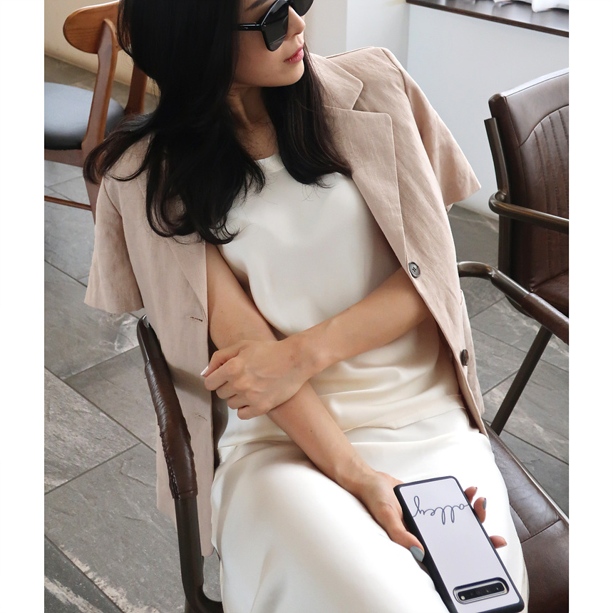 반팔 린넨 마 자켓