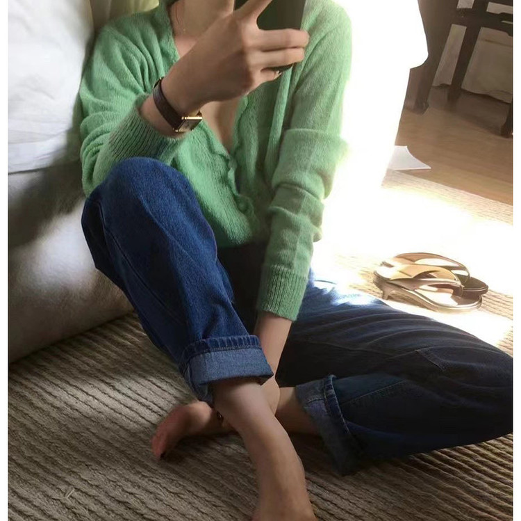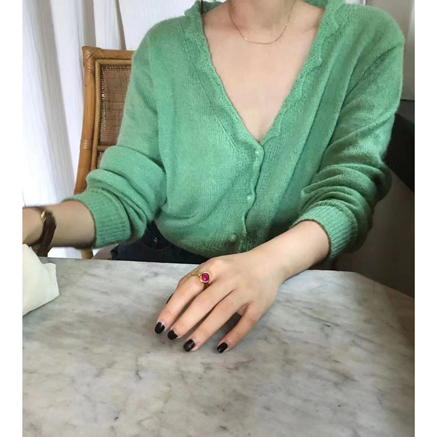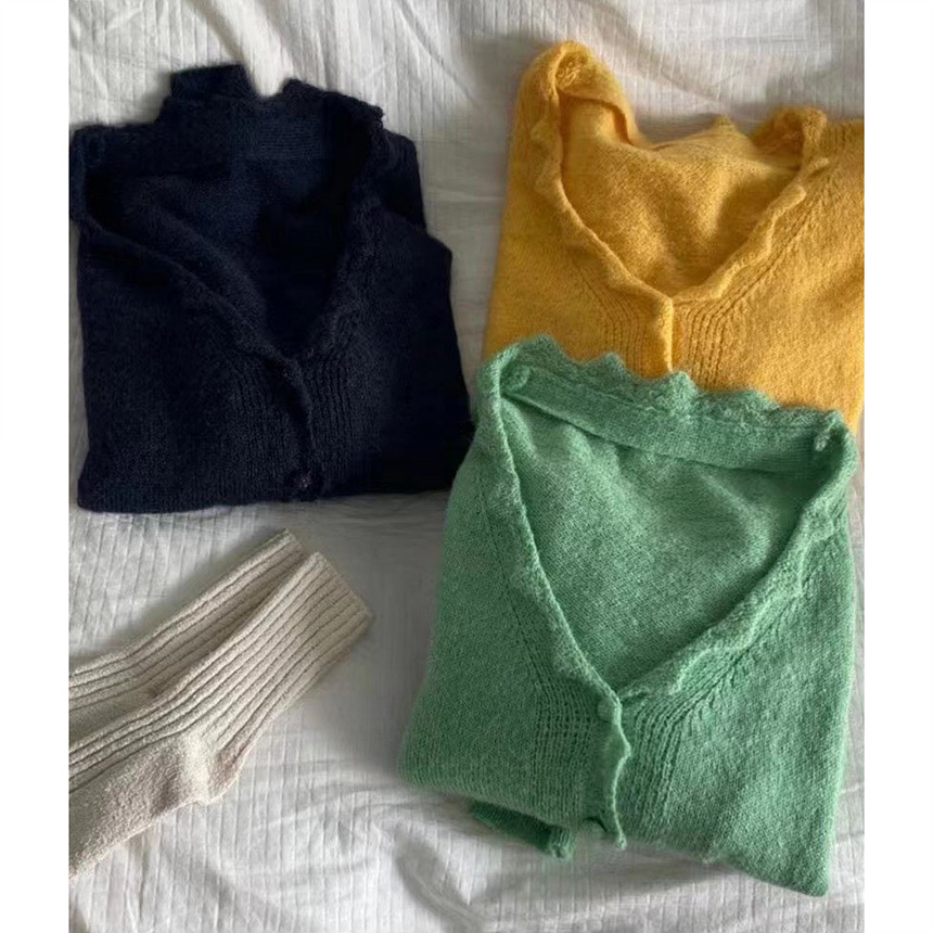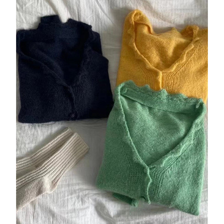 바로발송 레이브 브이넥 프릴 가디건 니트