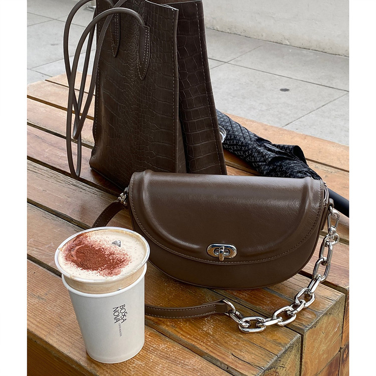 전체 소가죽으로 제작된 반달 쉐입 백인데요