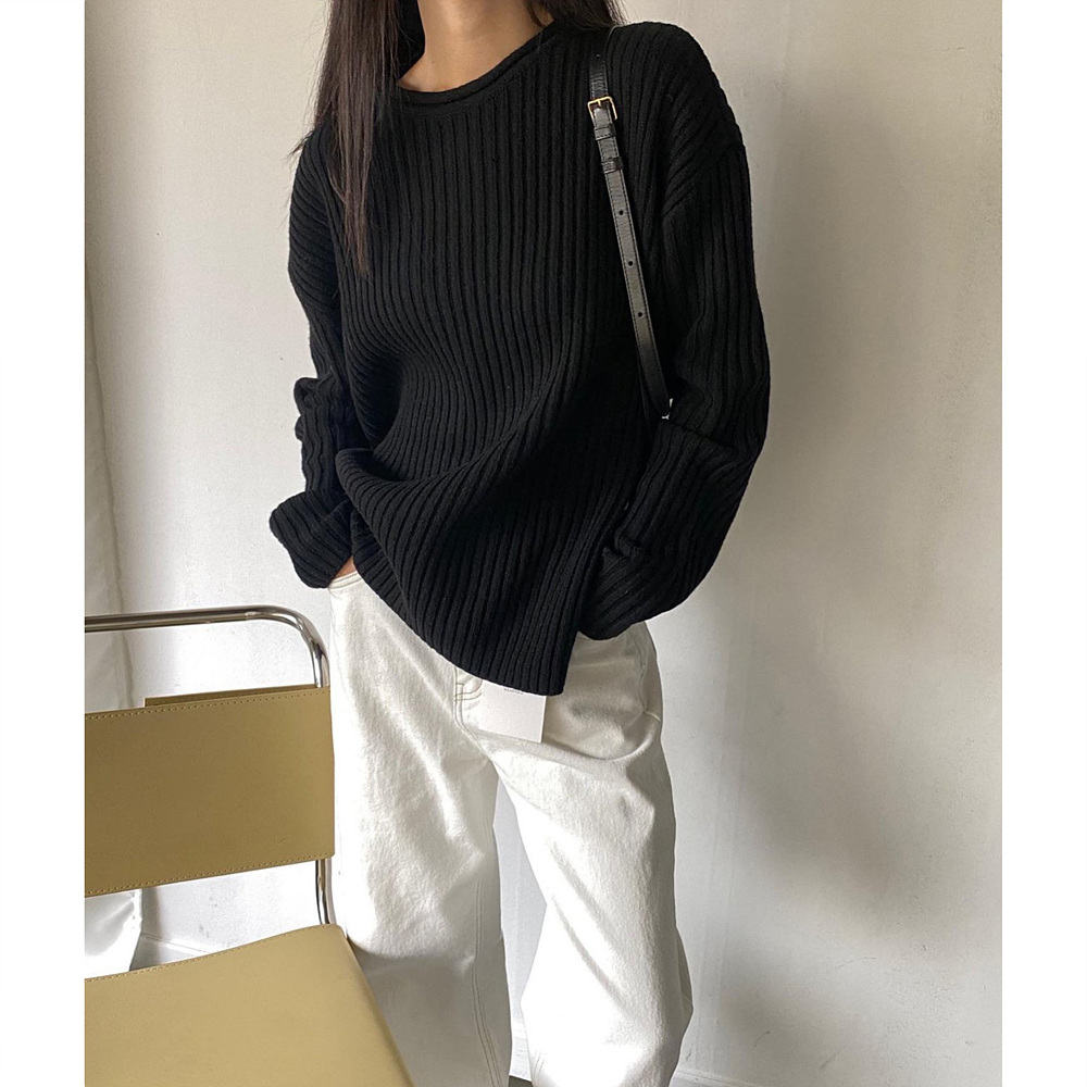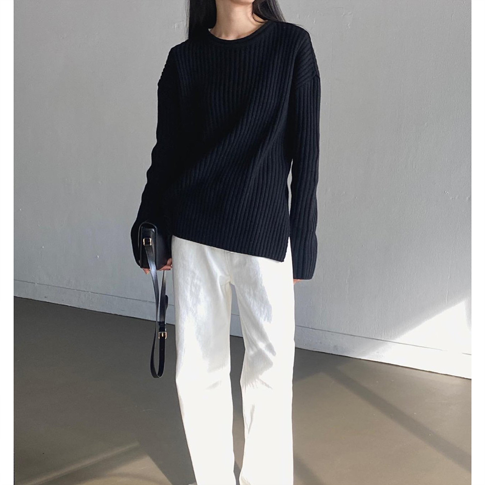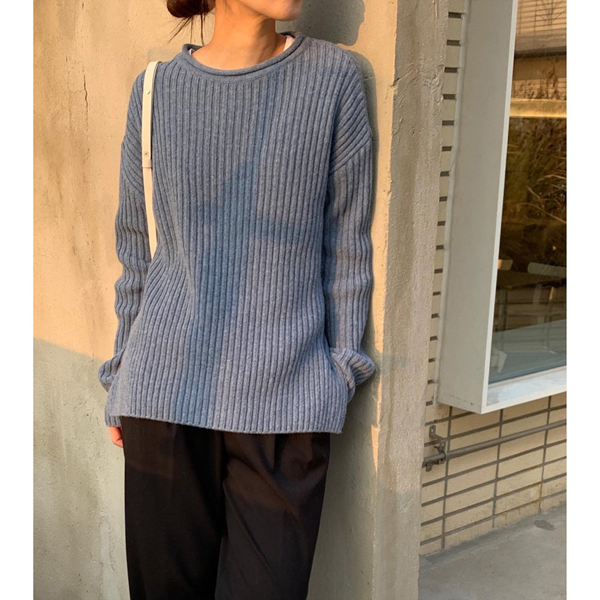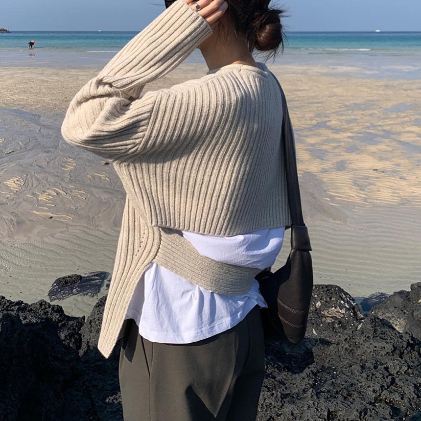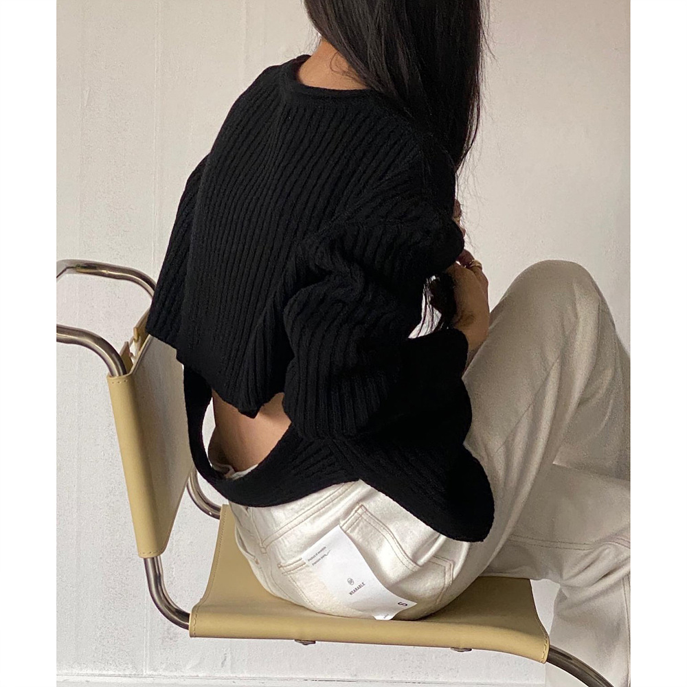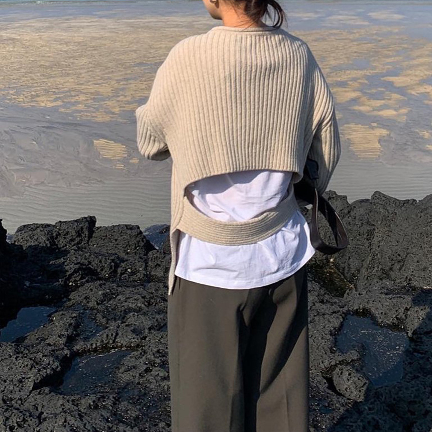 바로발송 피오니 백 포인트 트임 골지 니트 도톰해요