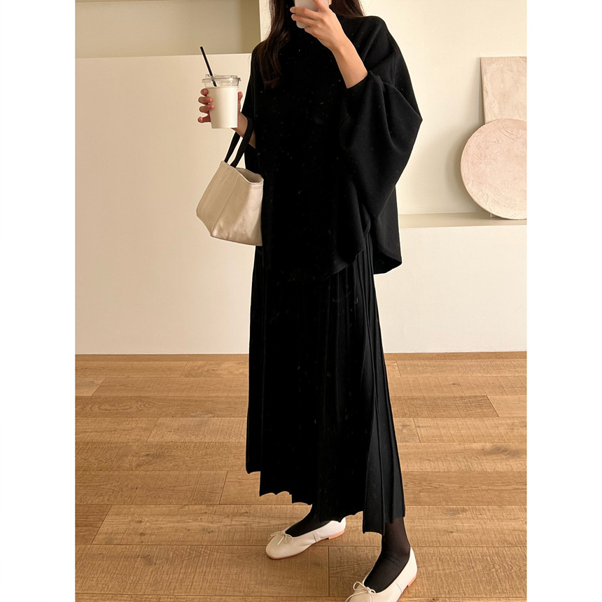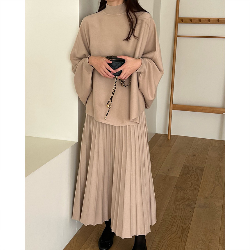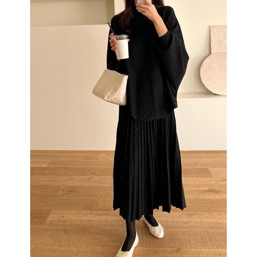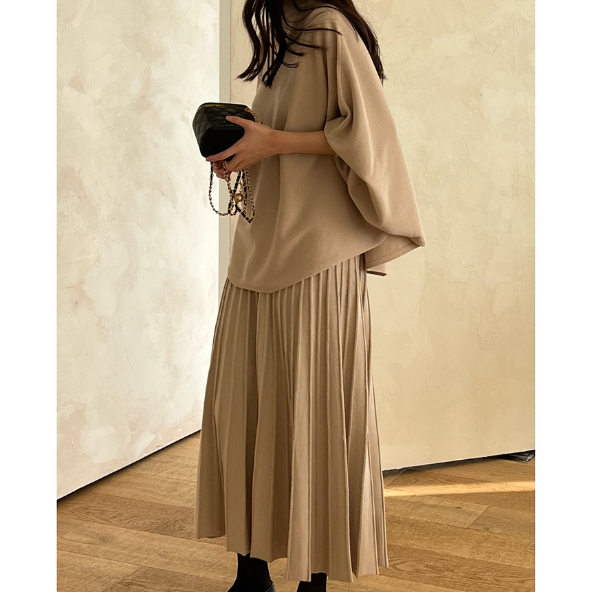 매기 루즈핏 플리츠 니트 투피스