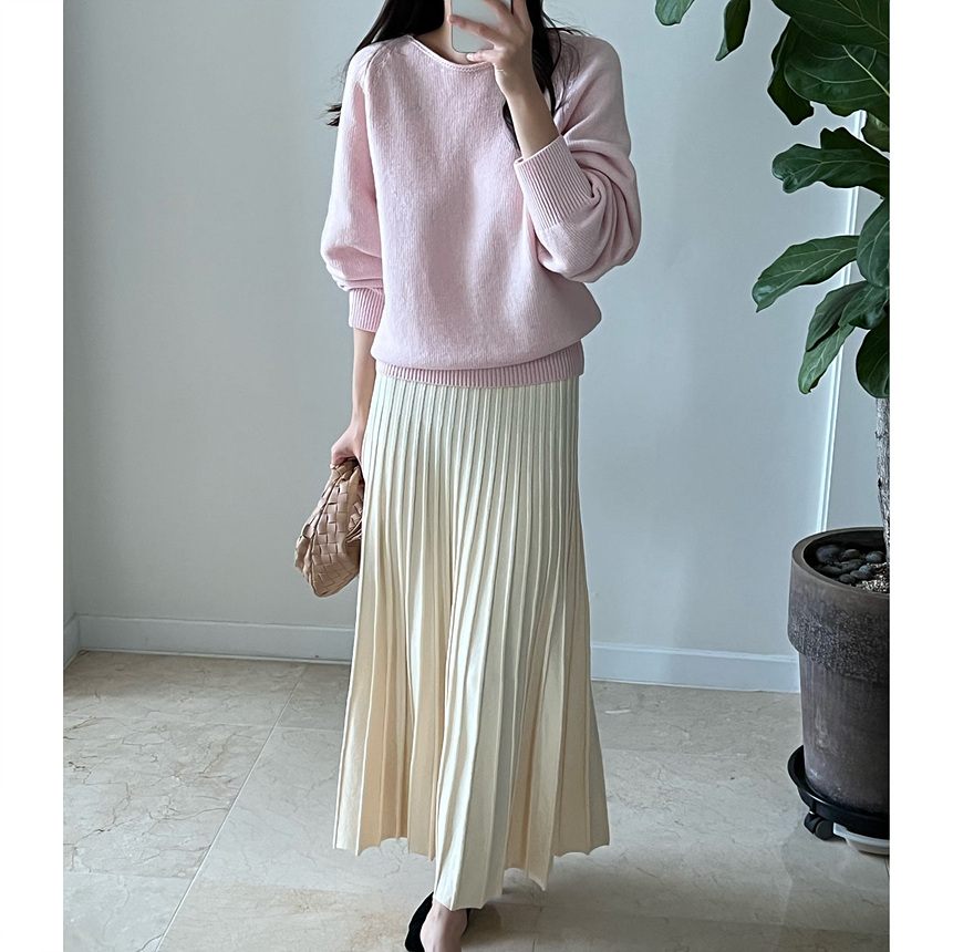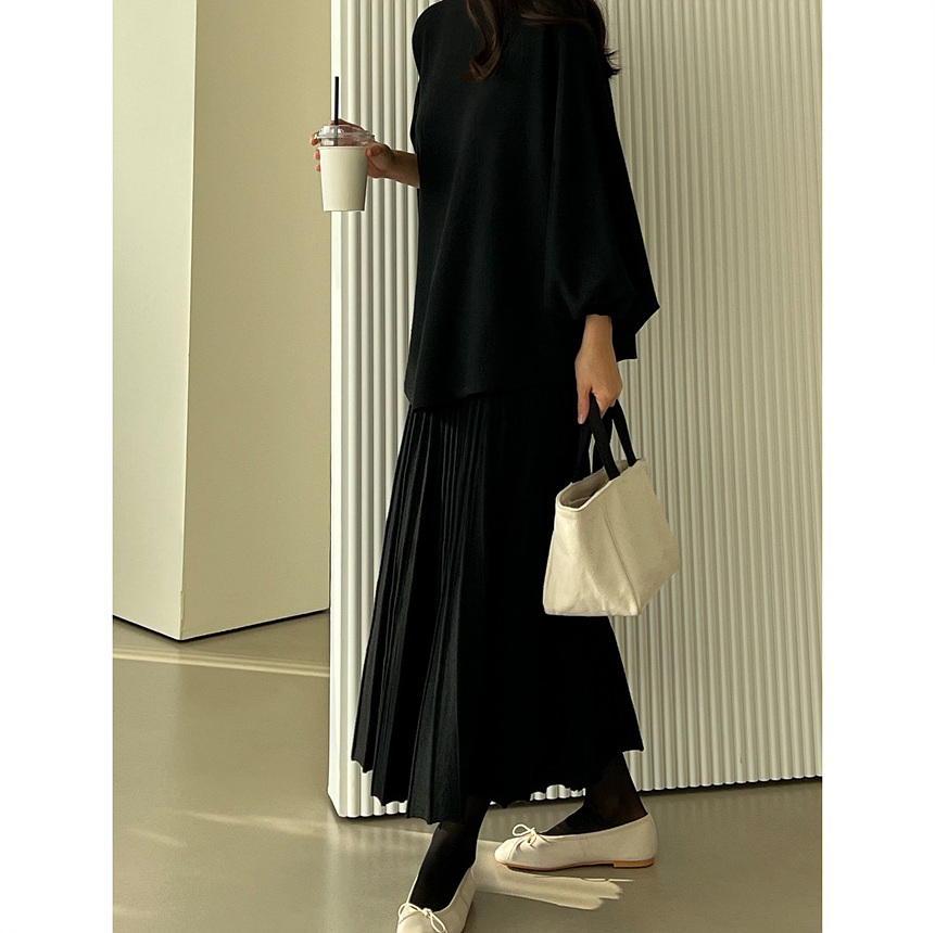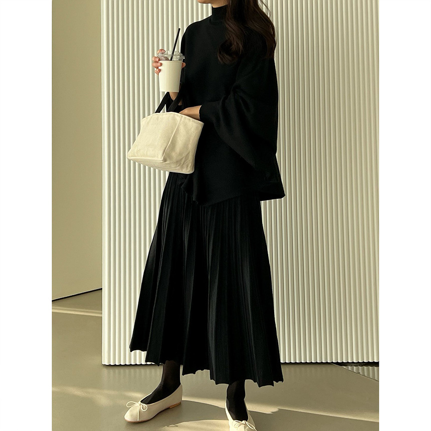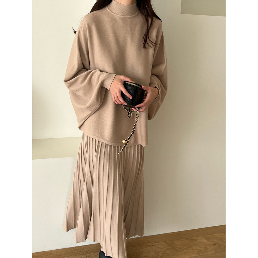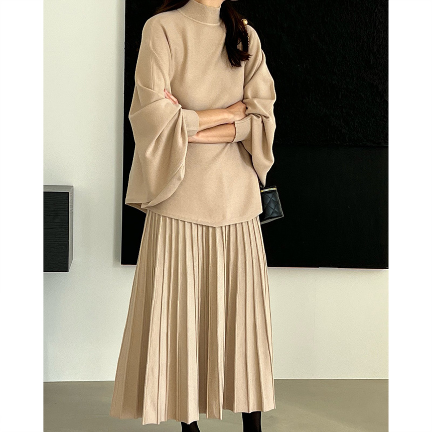 매기 루즈핏 플리츠 니트 투피스