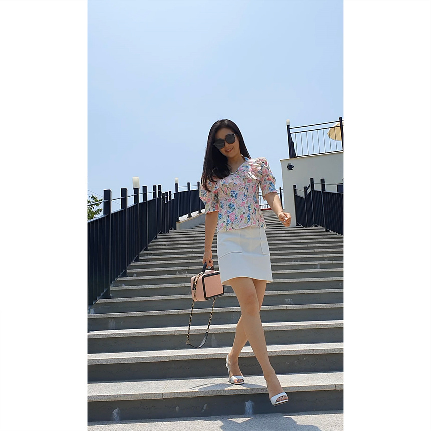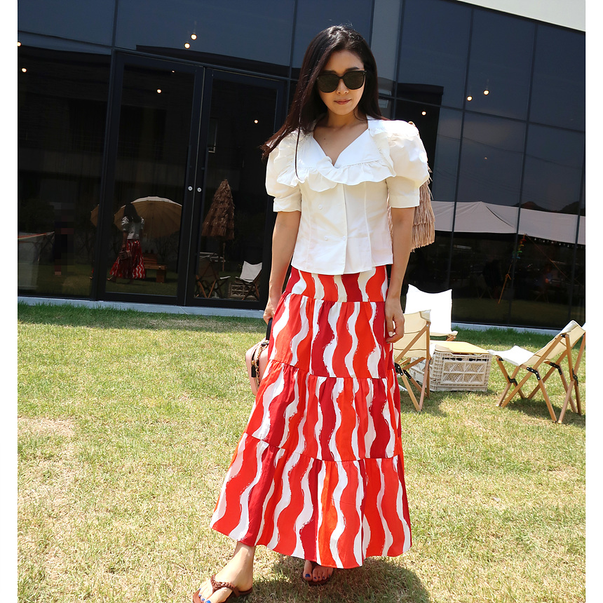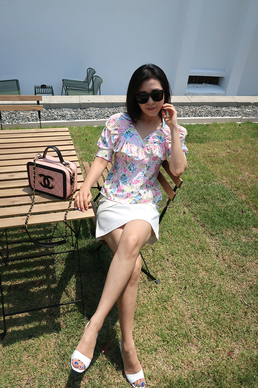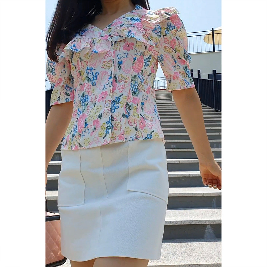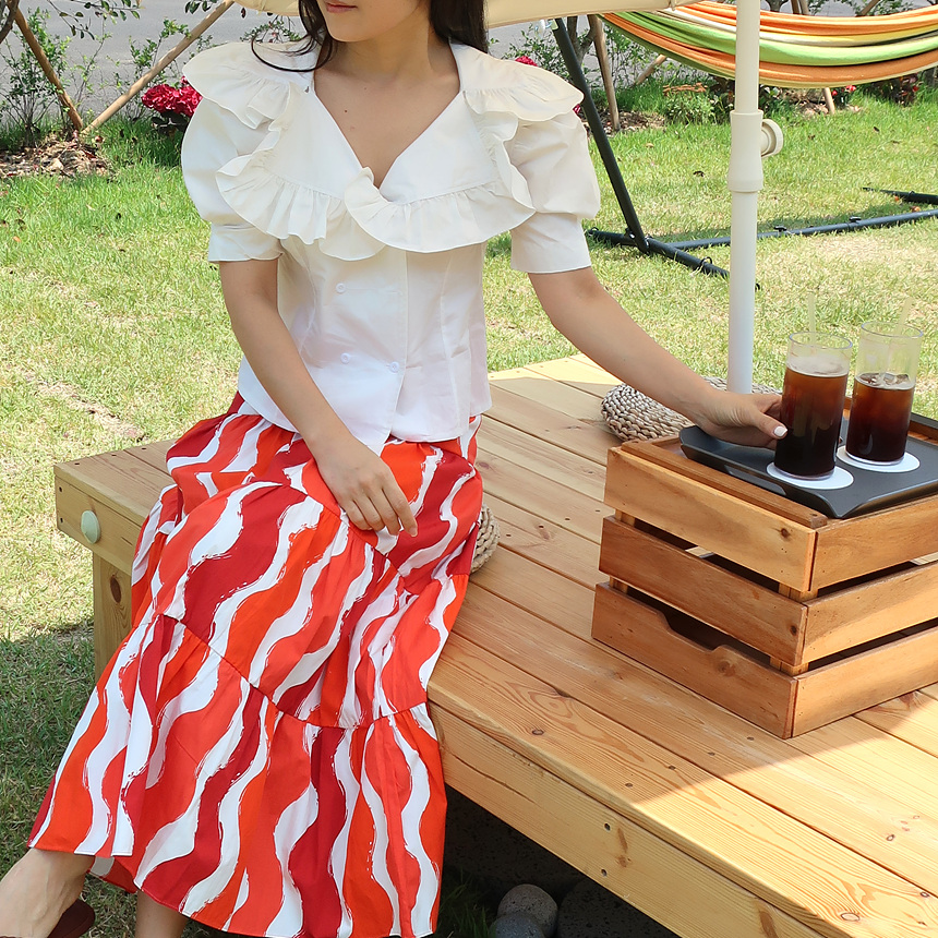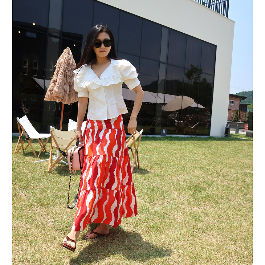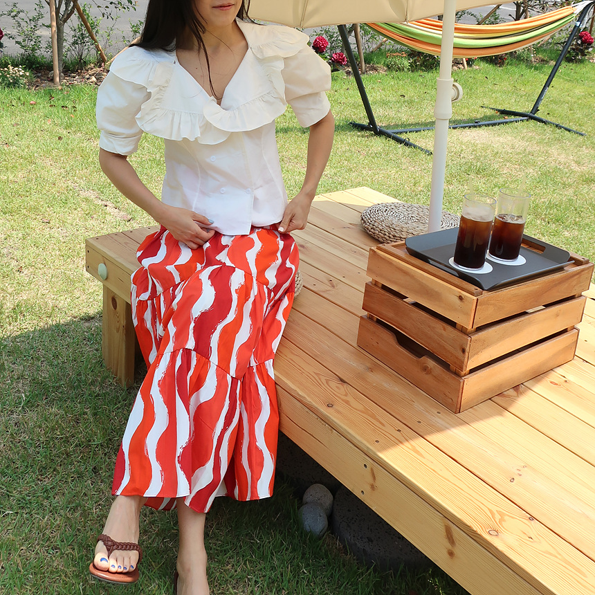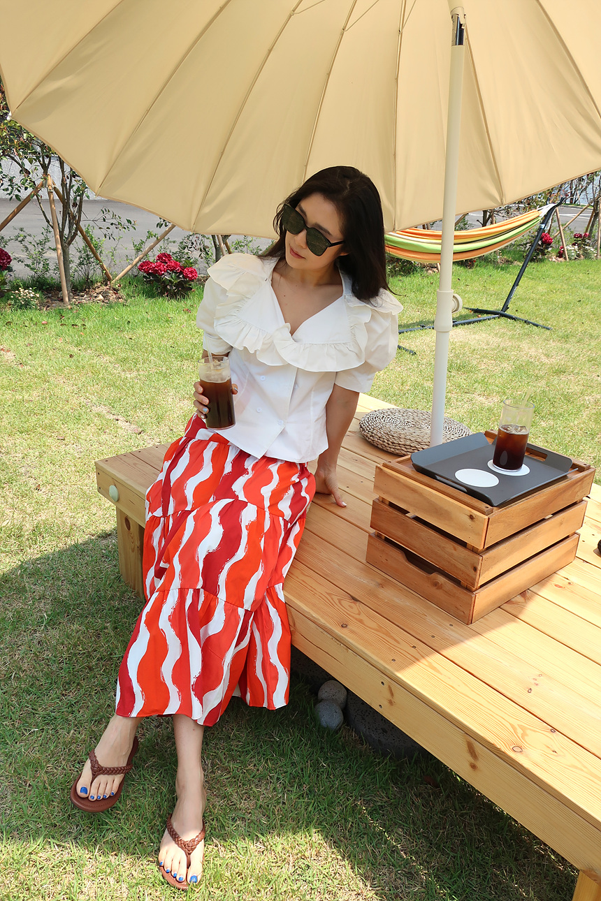 바로발송 브이넥 볼륨 프릴 반팔 크롭 블라우스