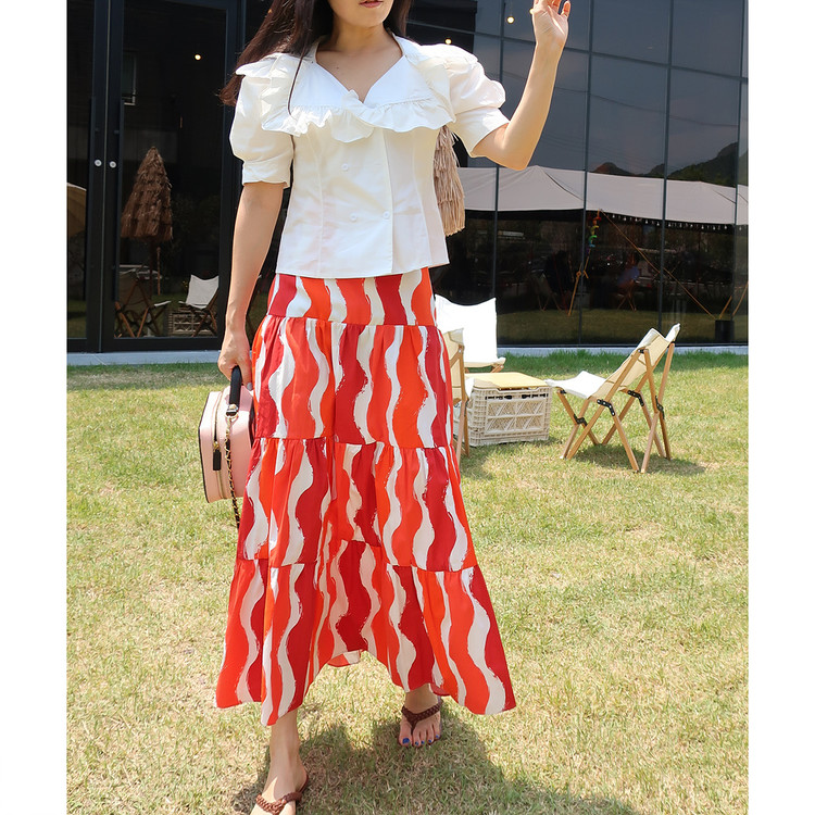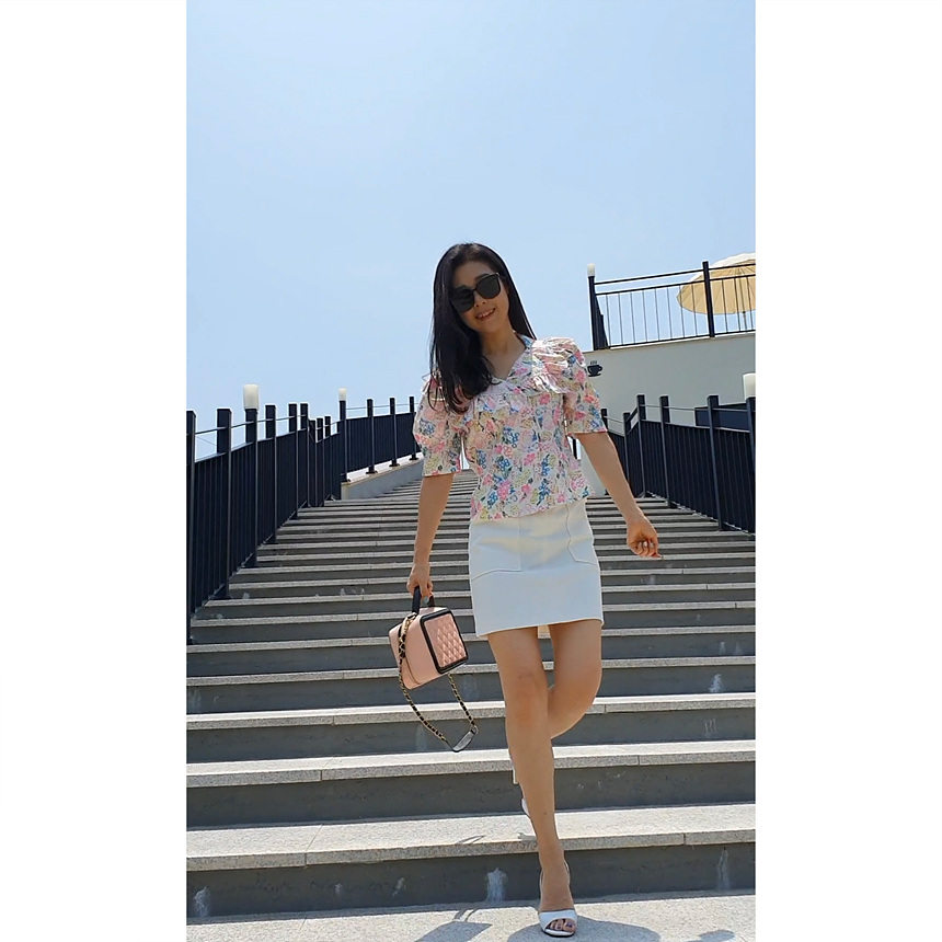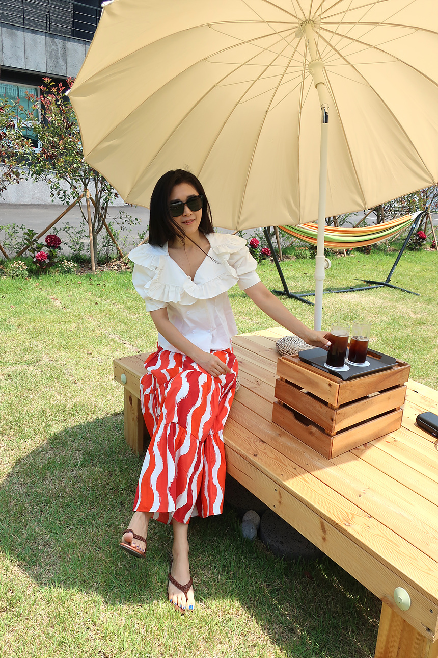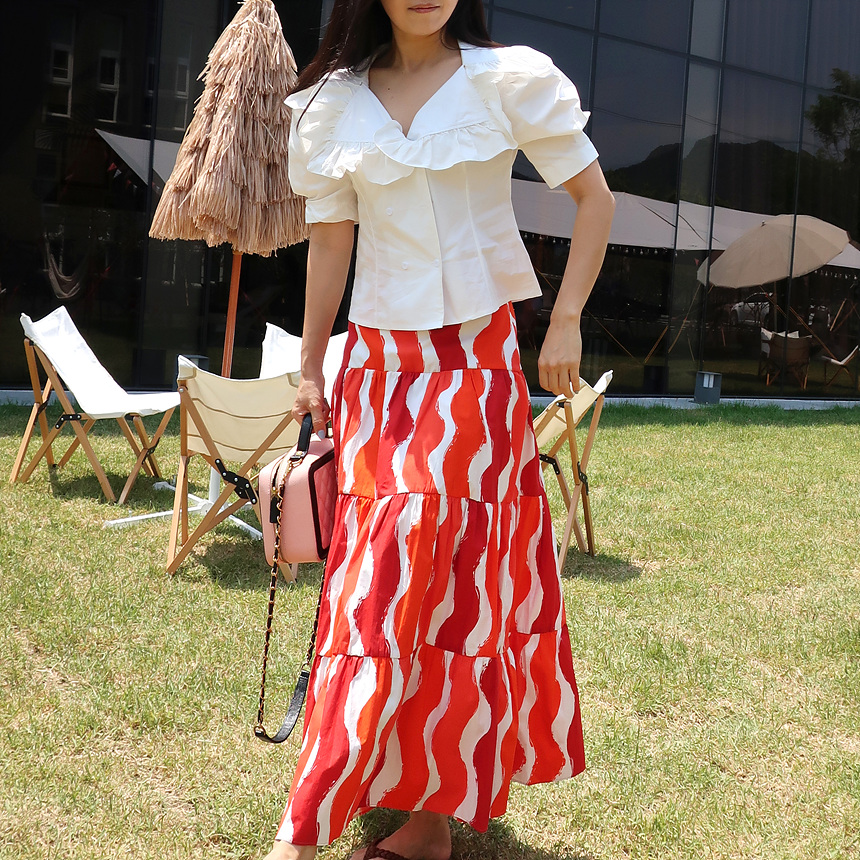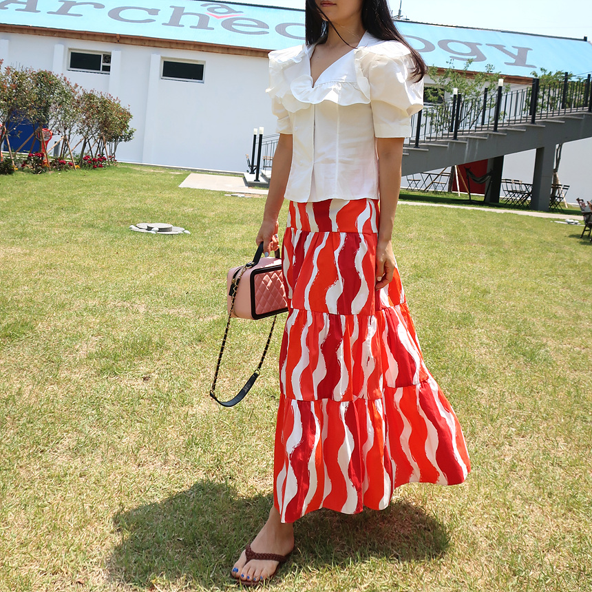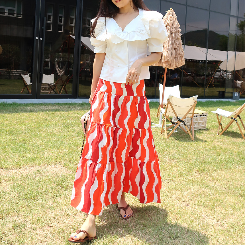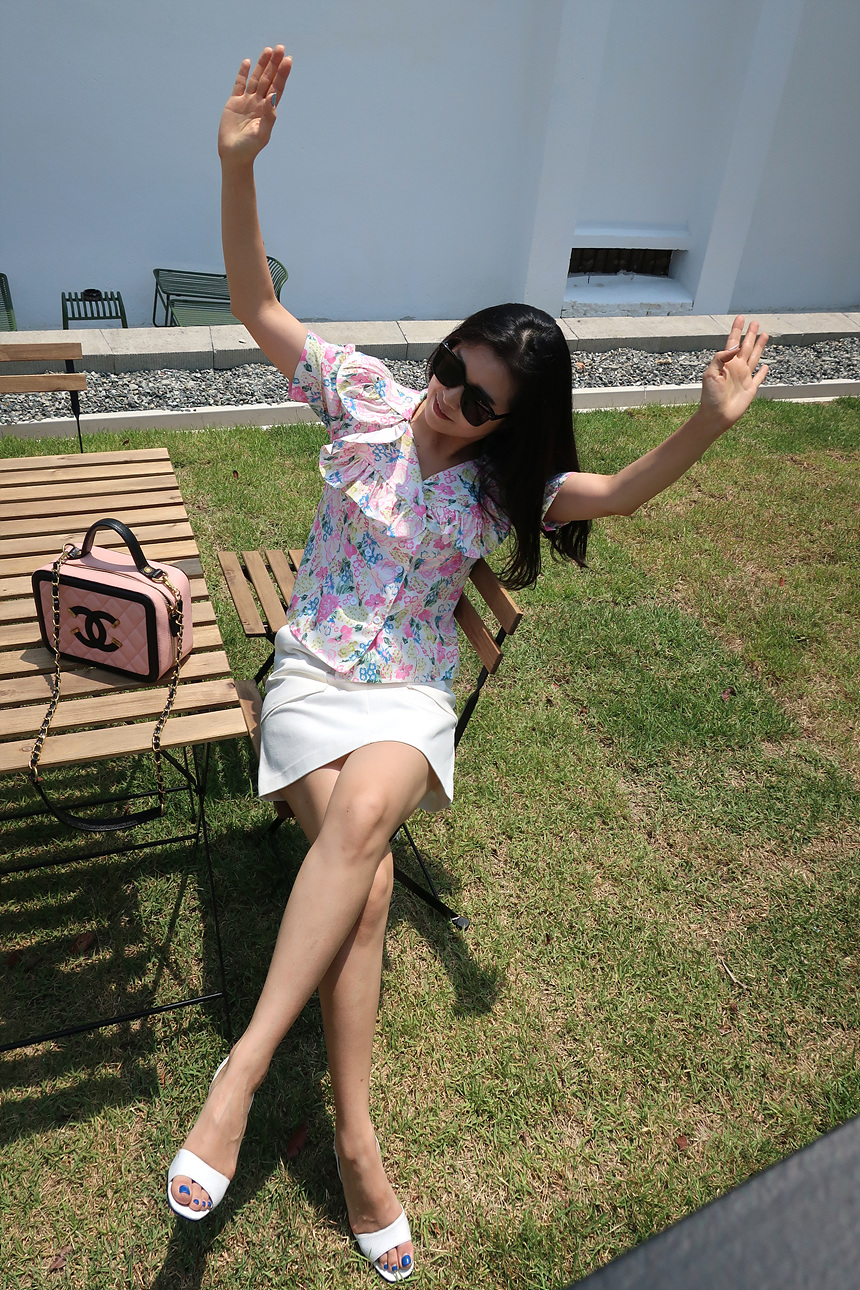바로발송 브이넥 볼륨 프릴 반팔 크롭 블라우스