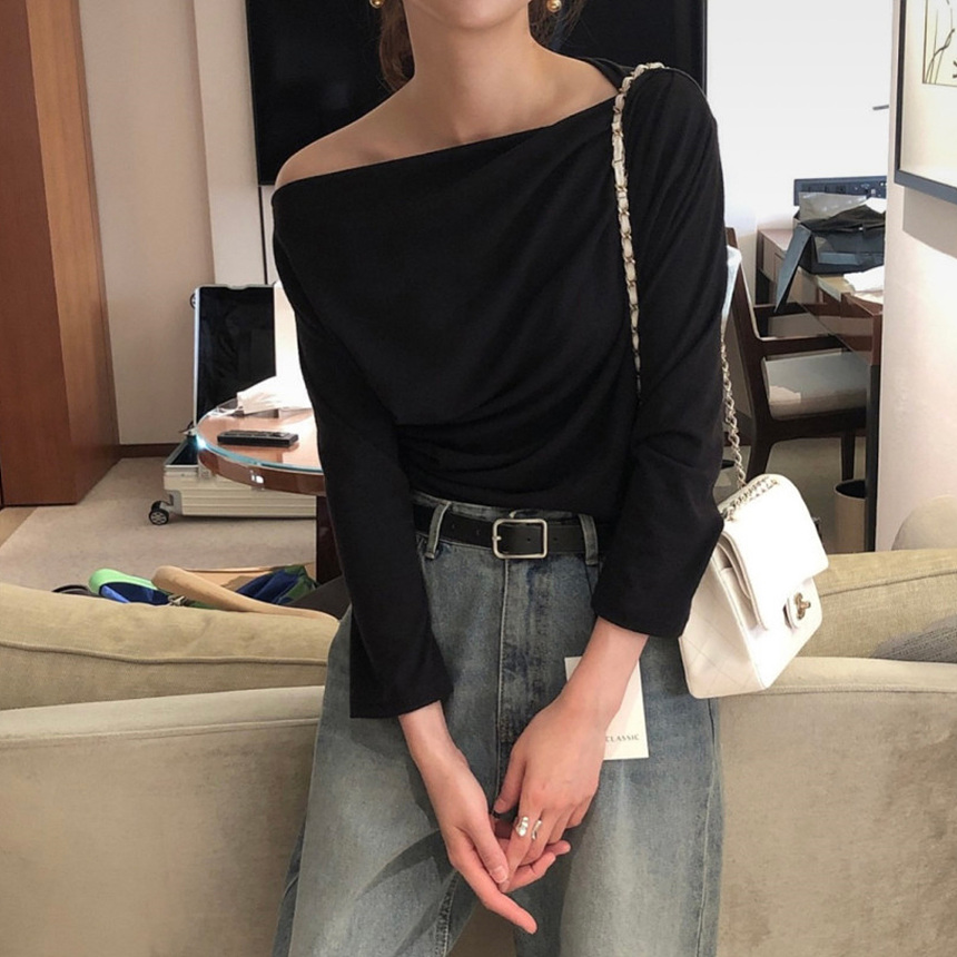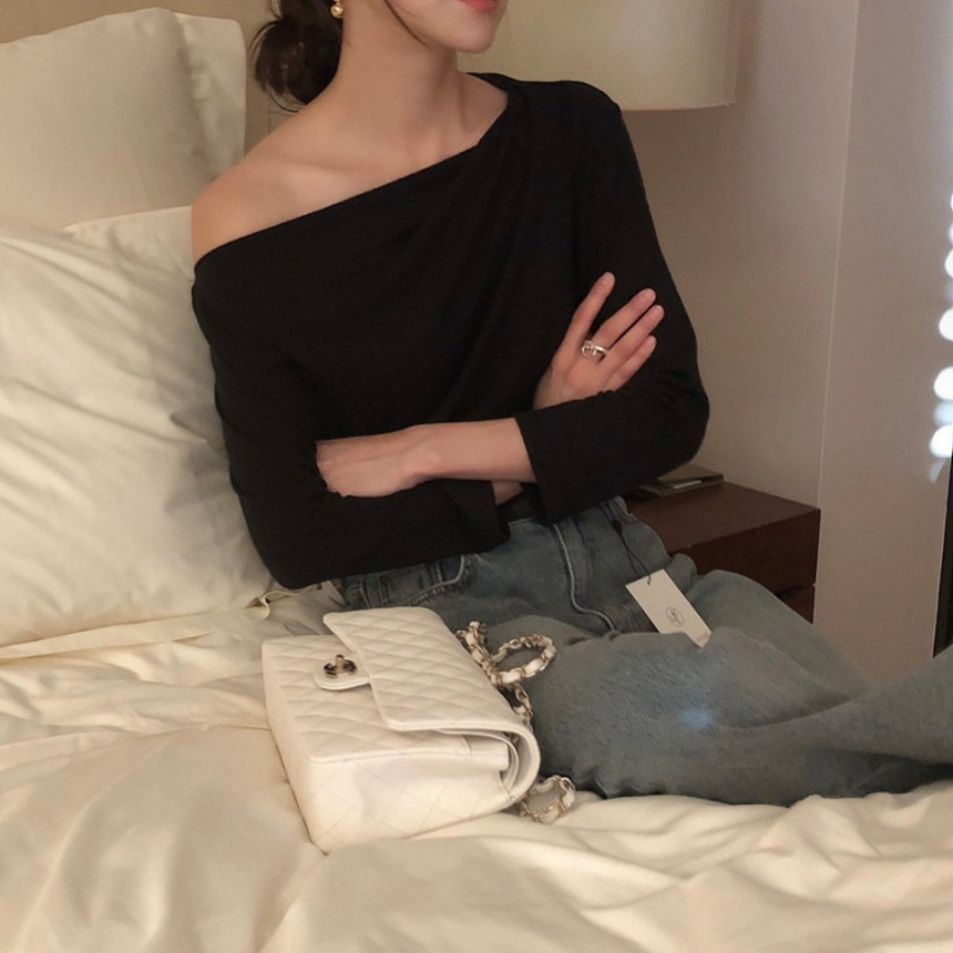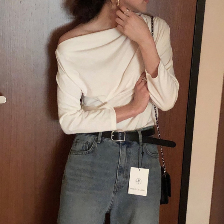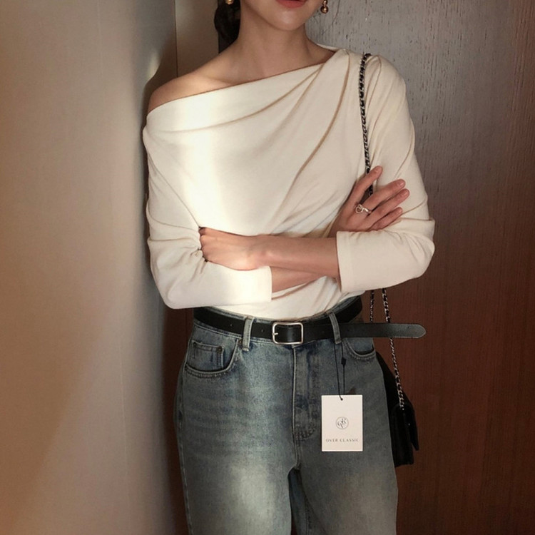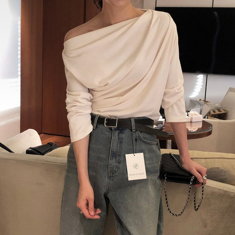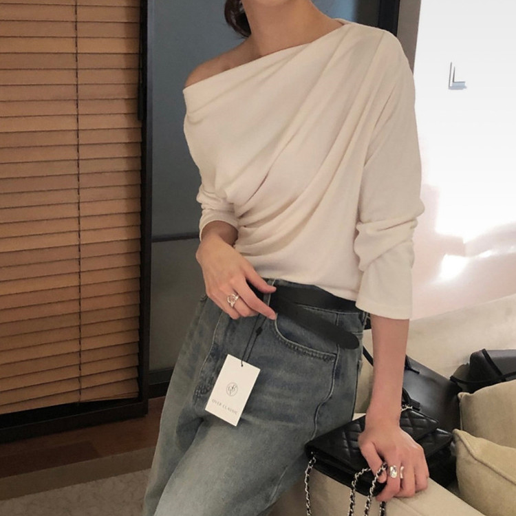 바로발송 클라 언발 드레이프 오프 숄더 티셔츠