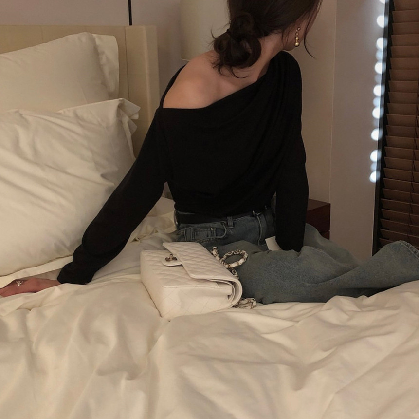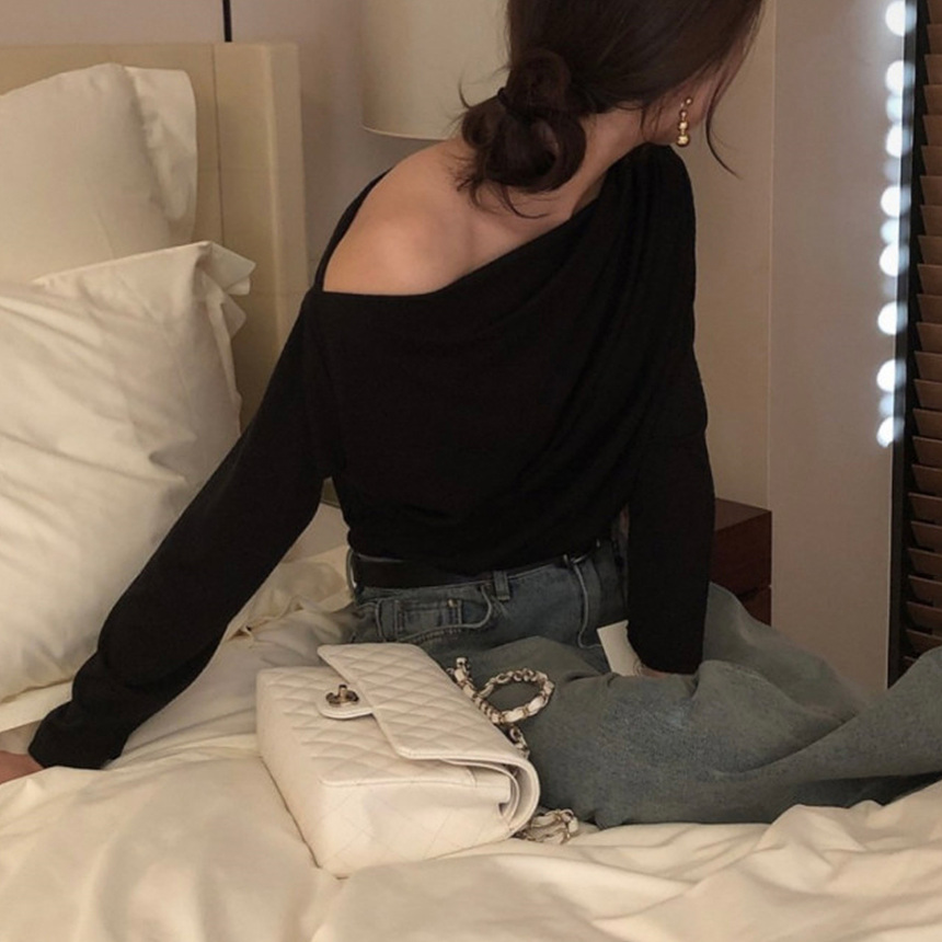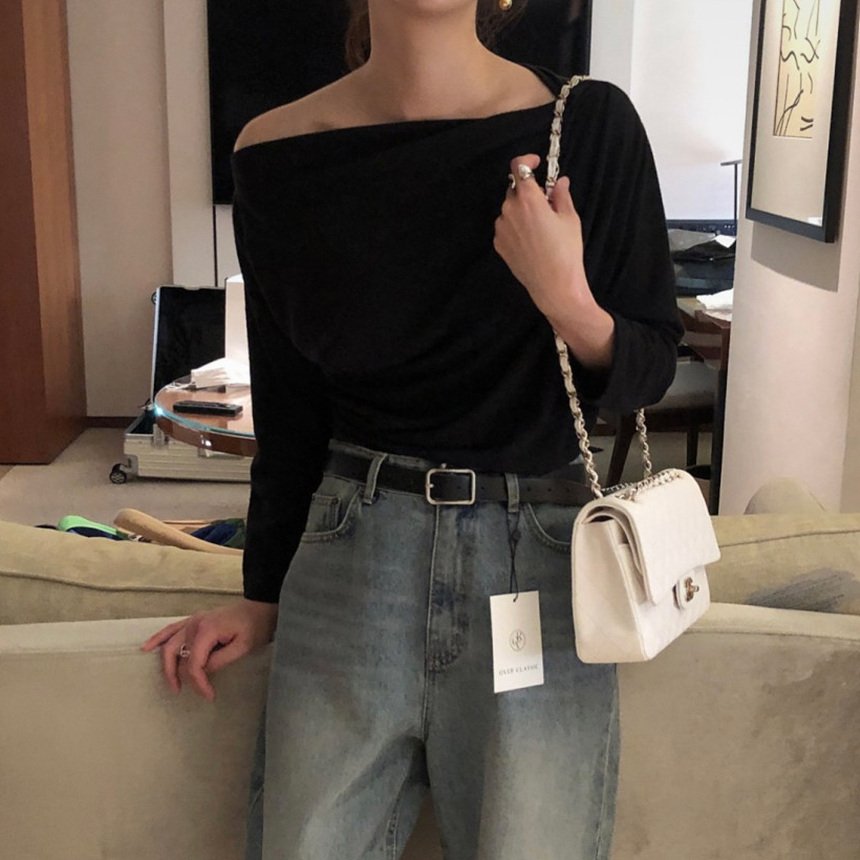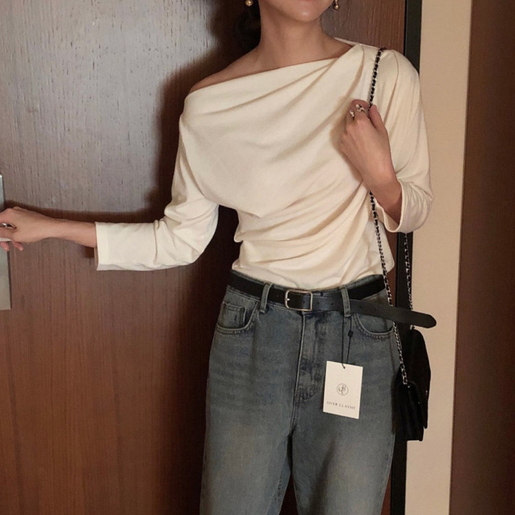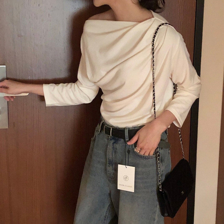 바로발송 클라 언발 드레이프 오프 숄더 티셔츠