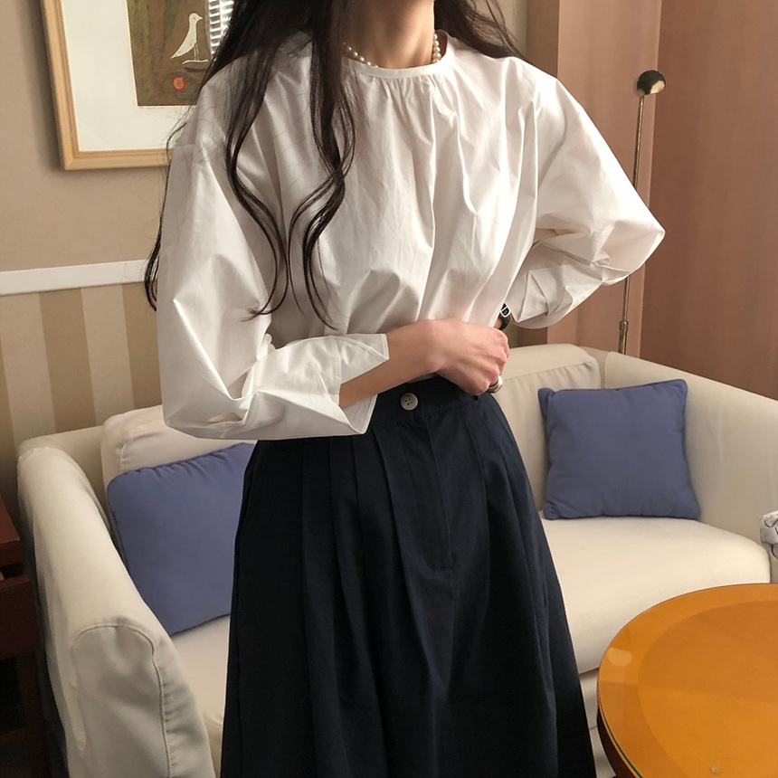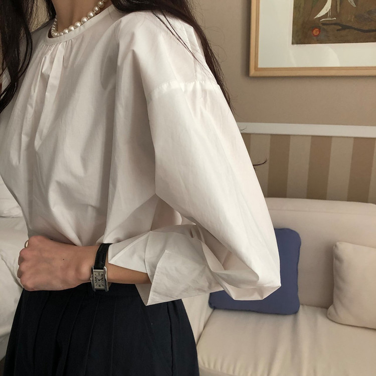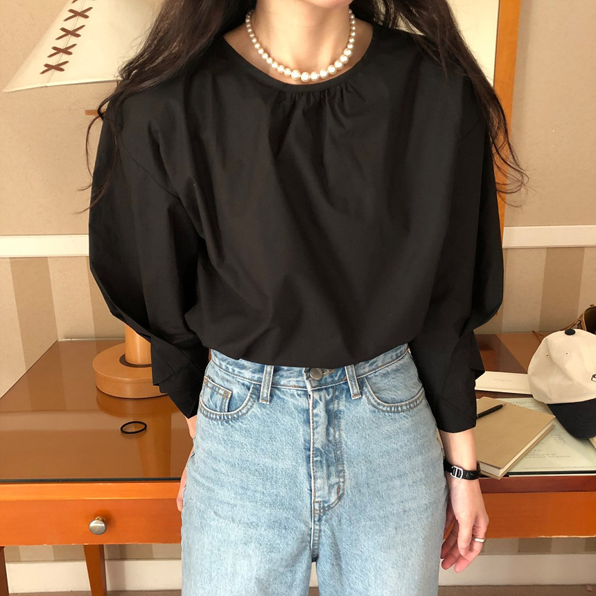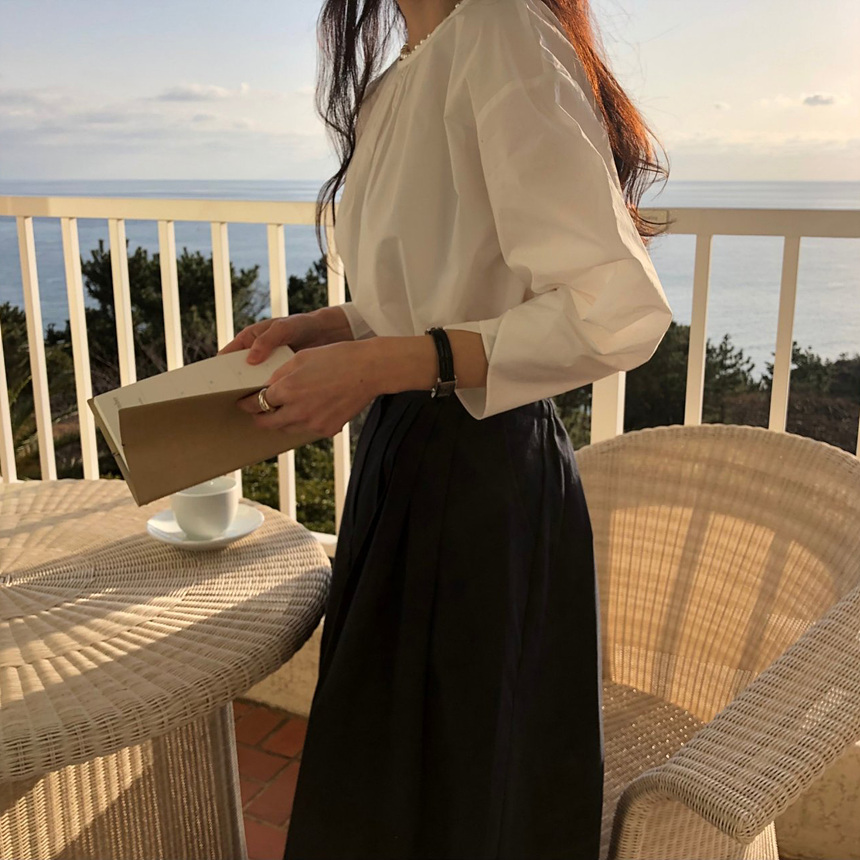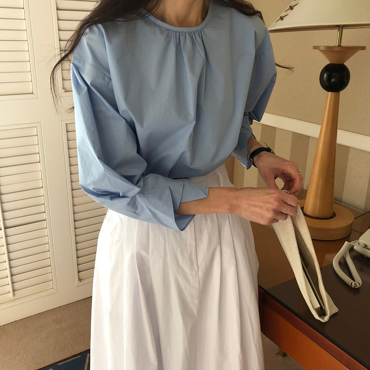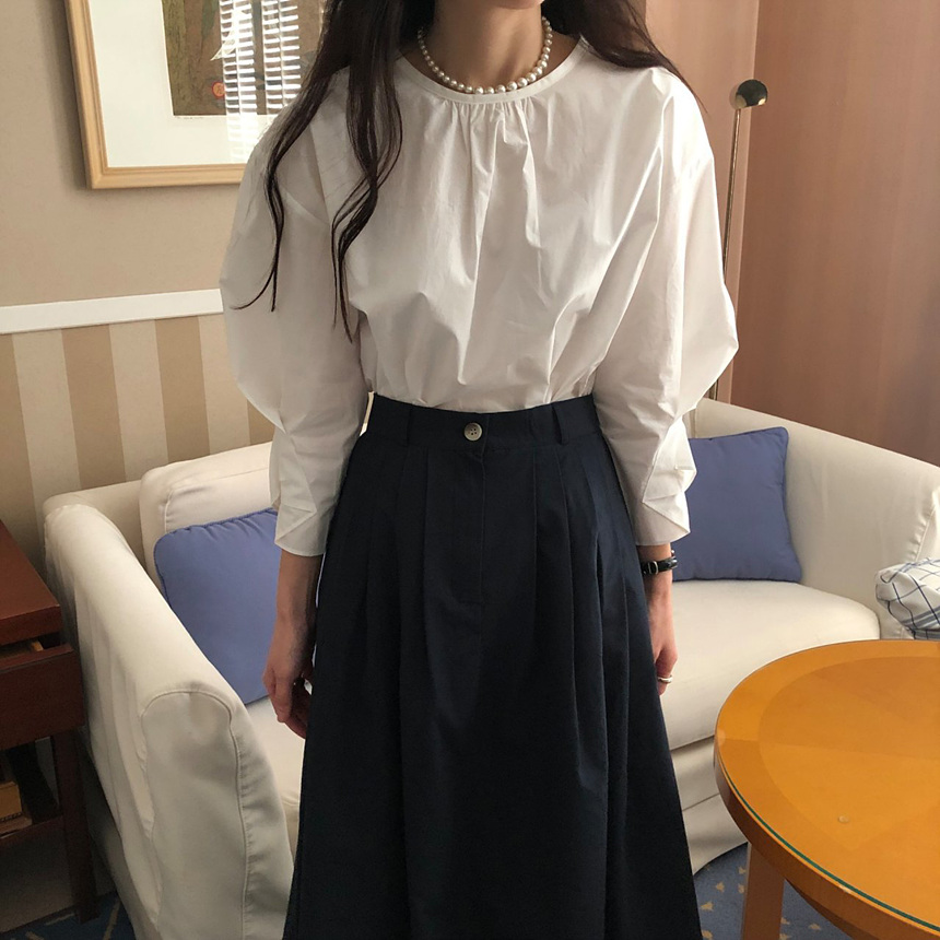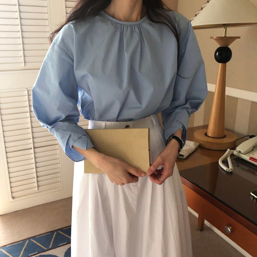 매니 라운드 셔링 코튼 블라우스