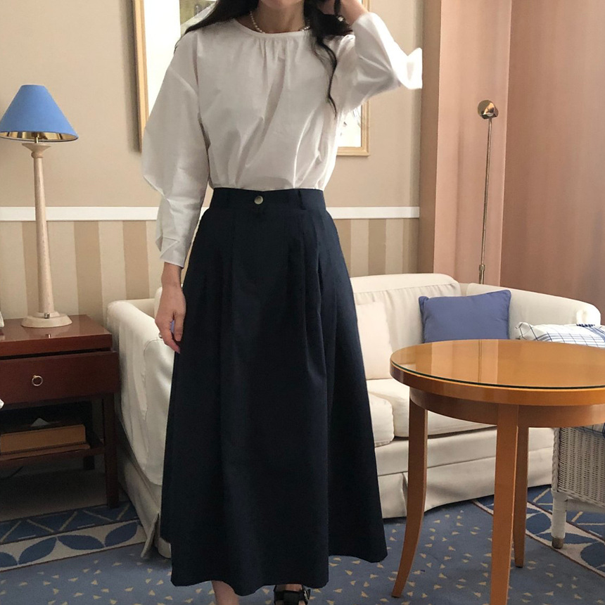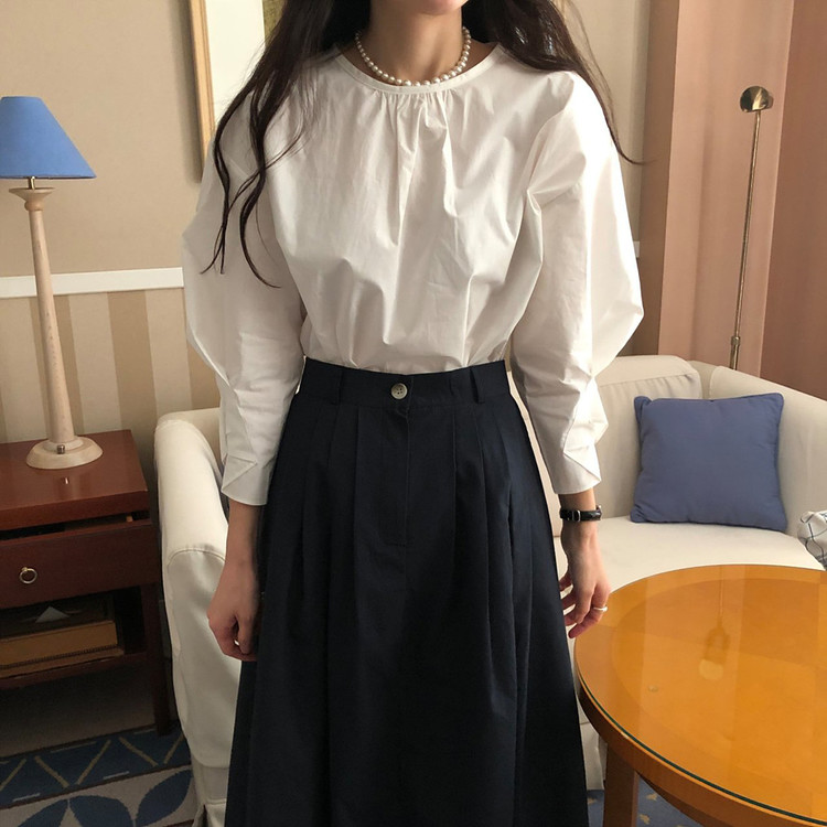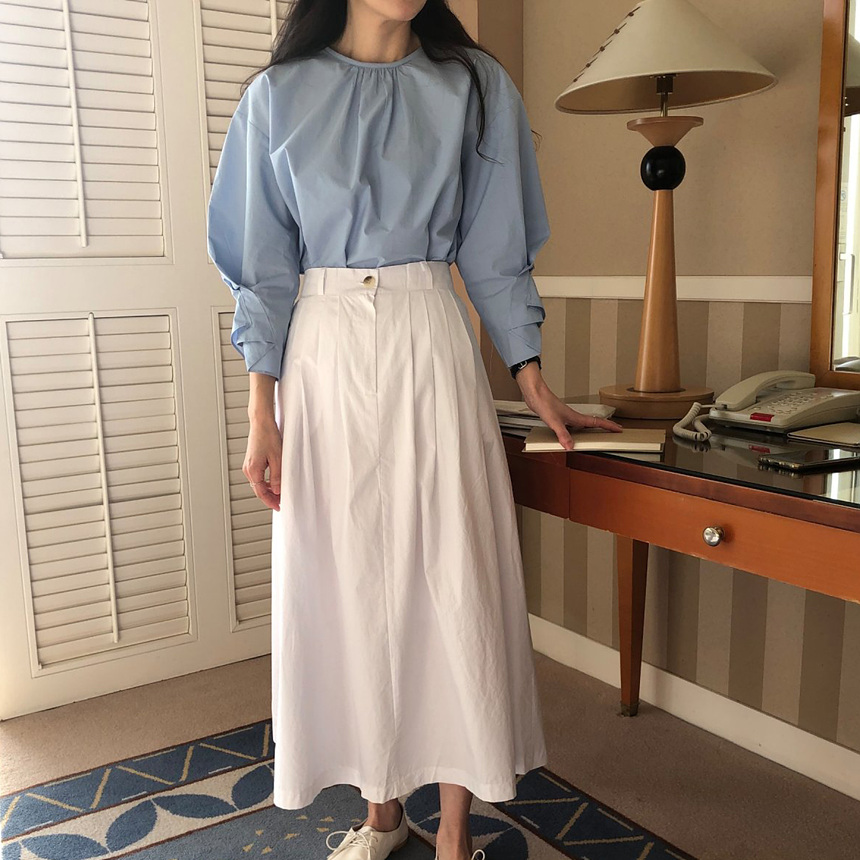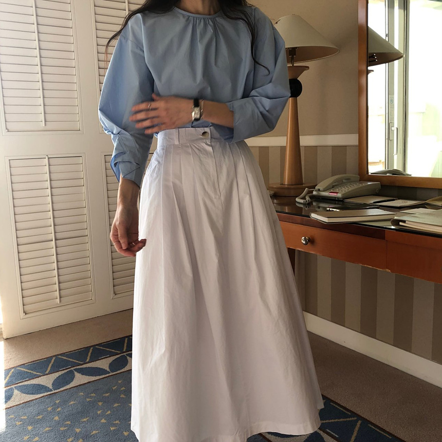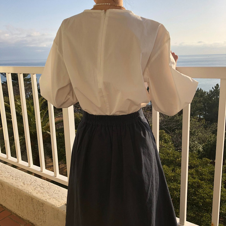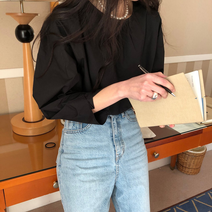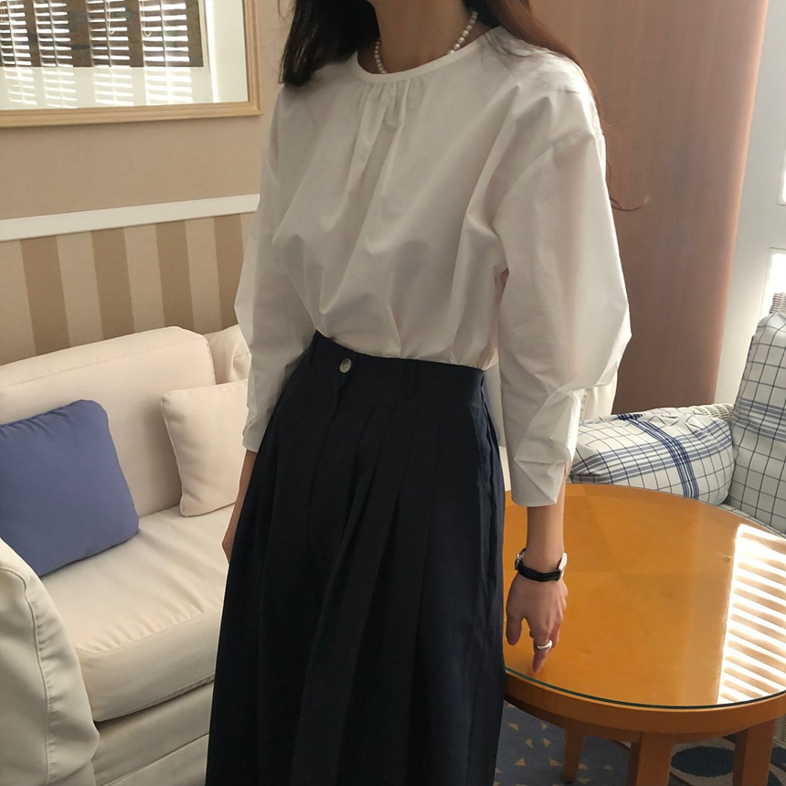 매니 라운드 셔링 코튼 블라우스