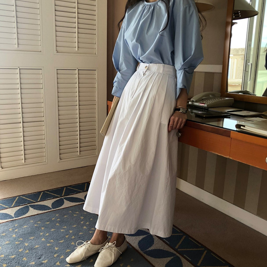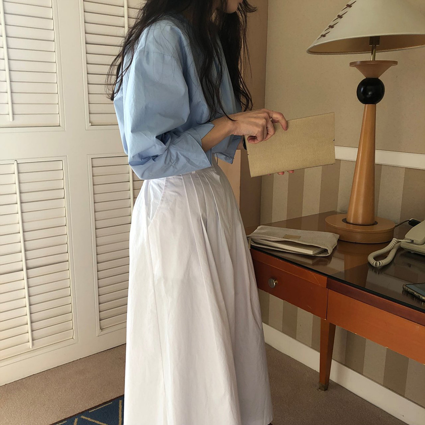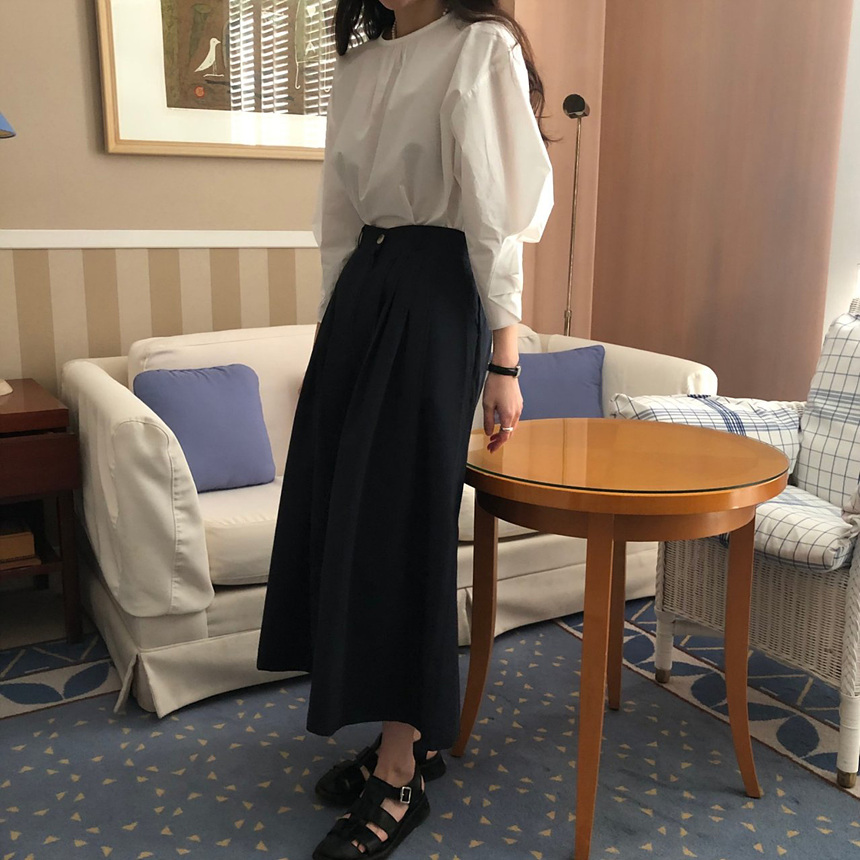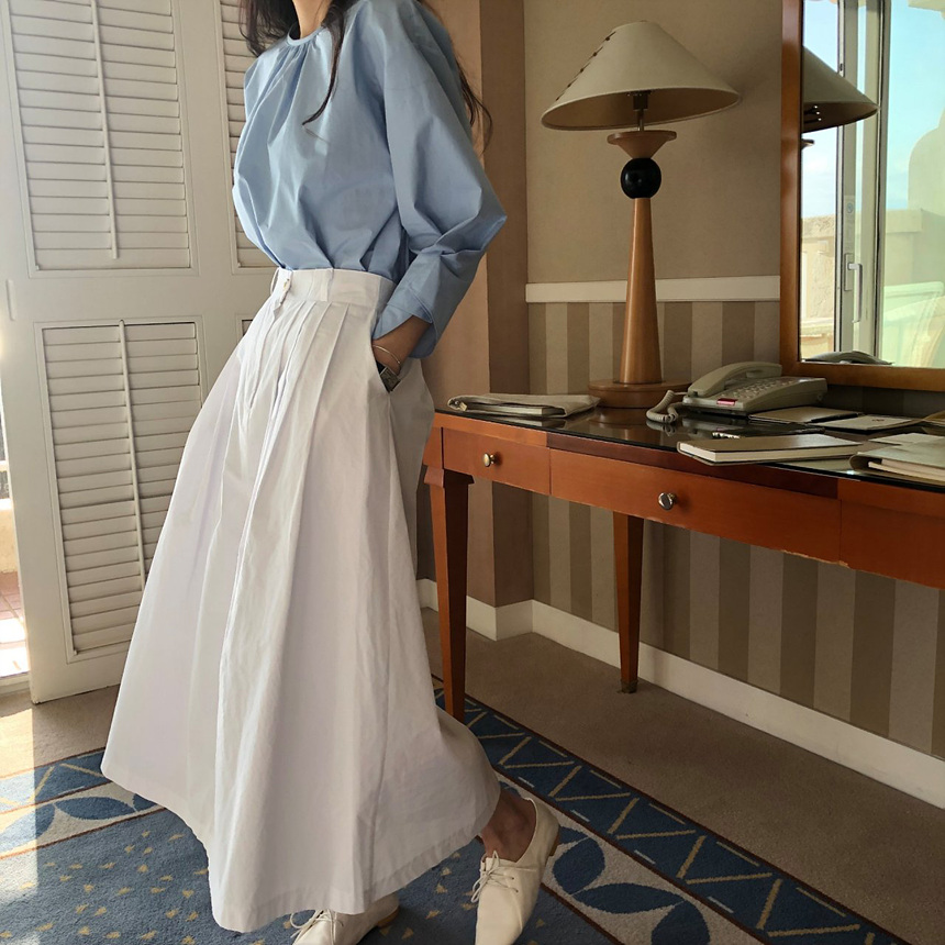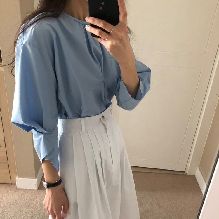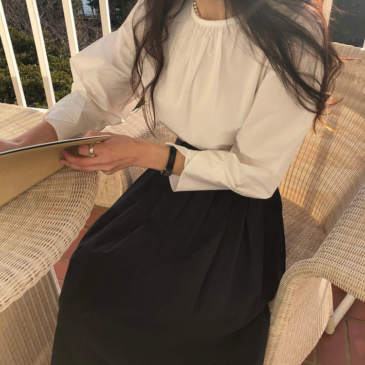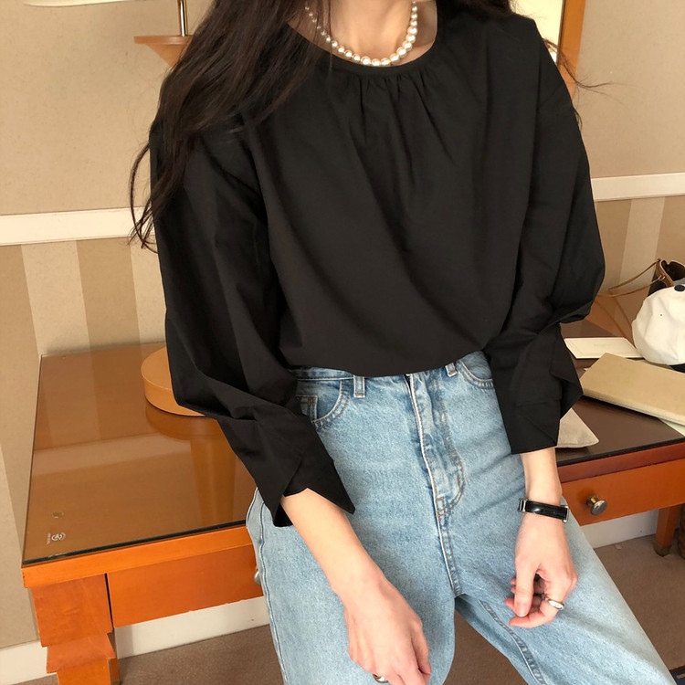 매니 라운드 셔링 코튼 블라우스