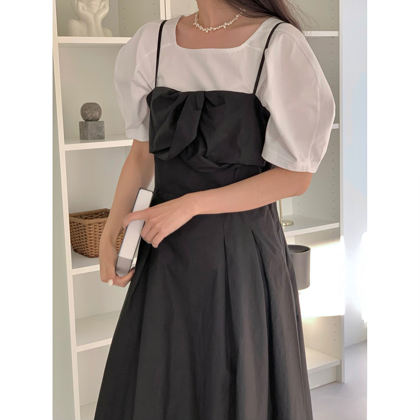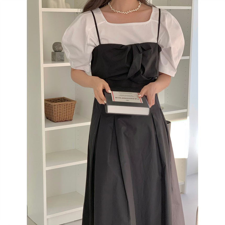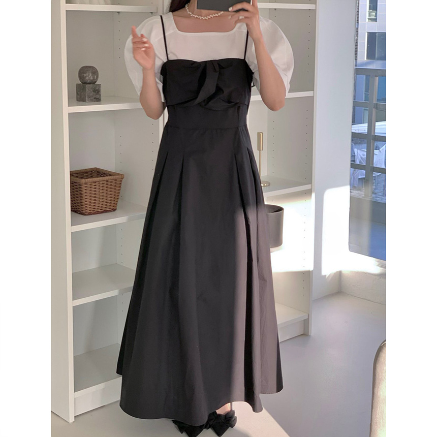 바로발송 에이 볼륨 셔링 뷔스티에 롱 원피스