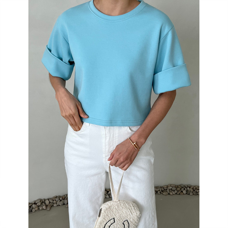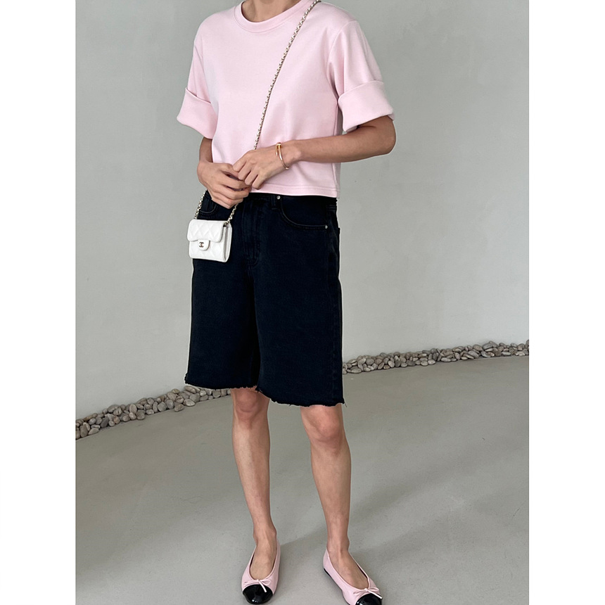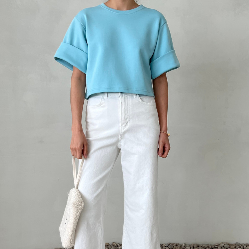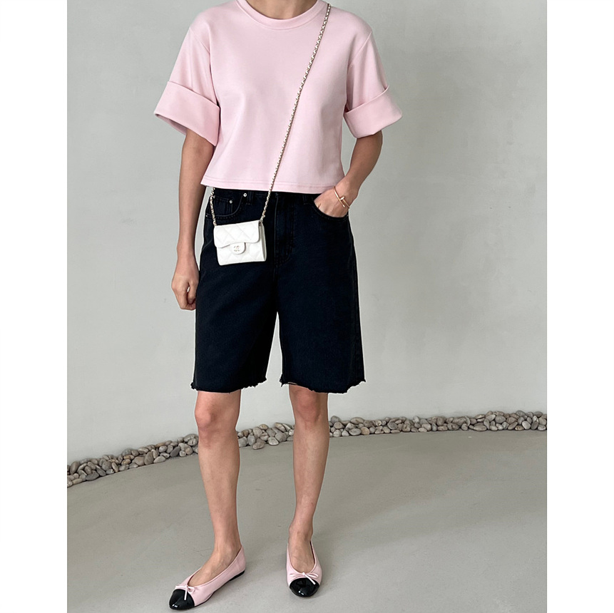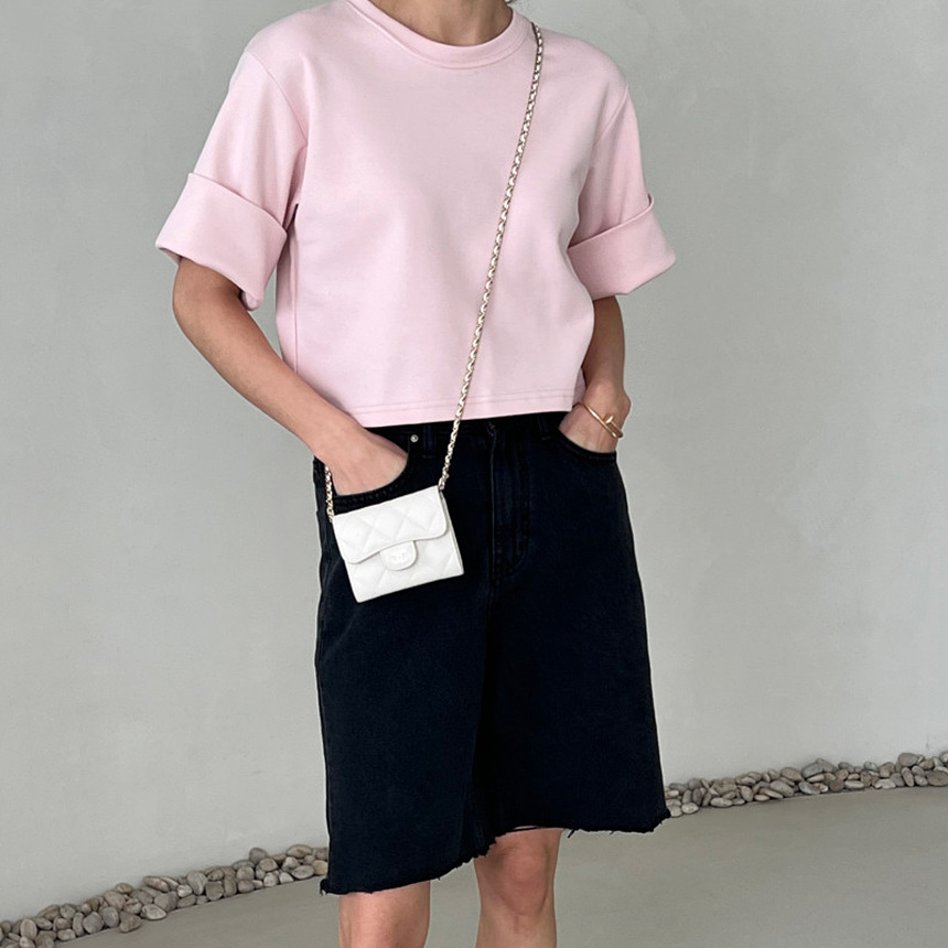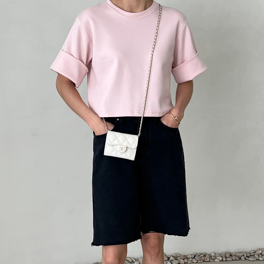 바로발송 폰즈 롤업 루즈핏 크롭 티셔츠
