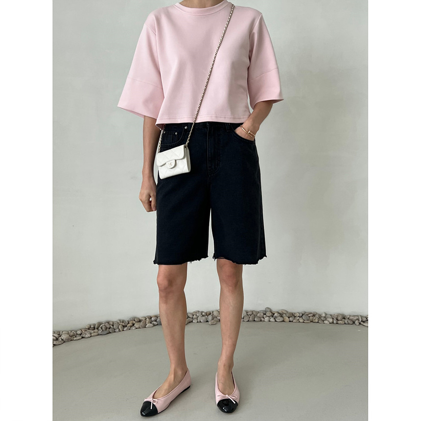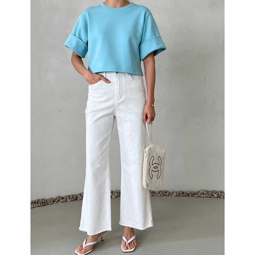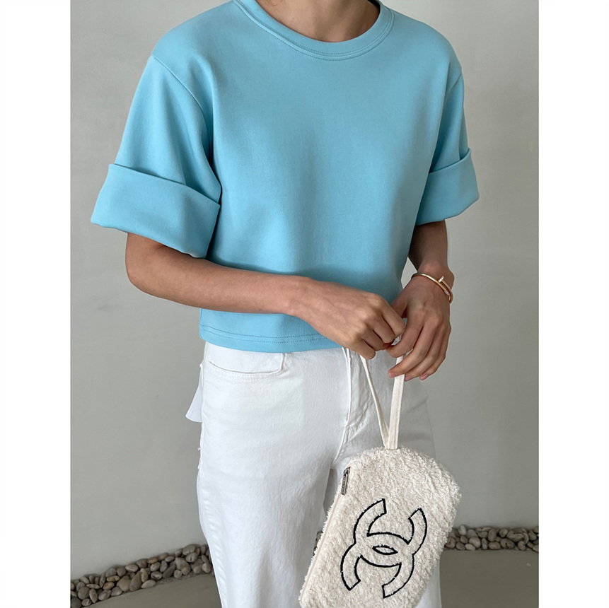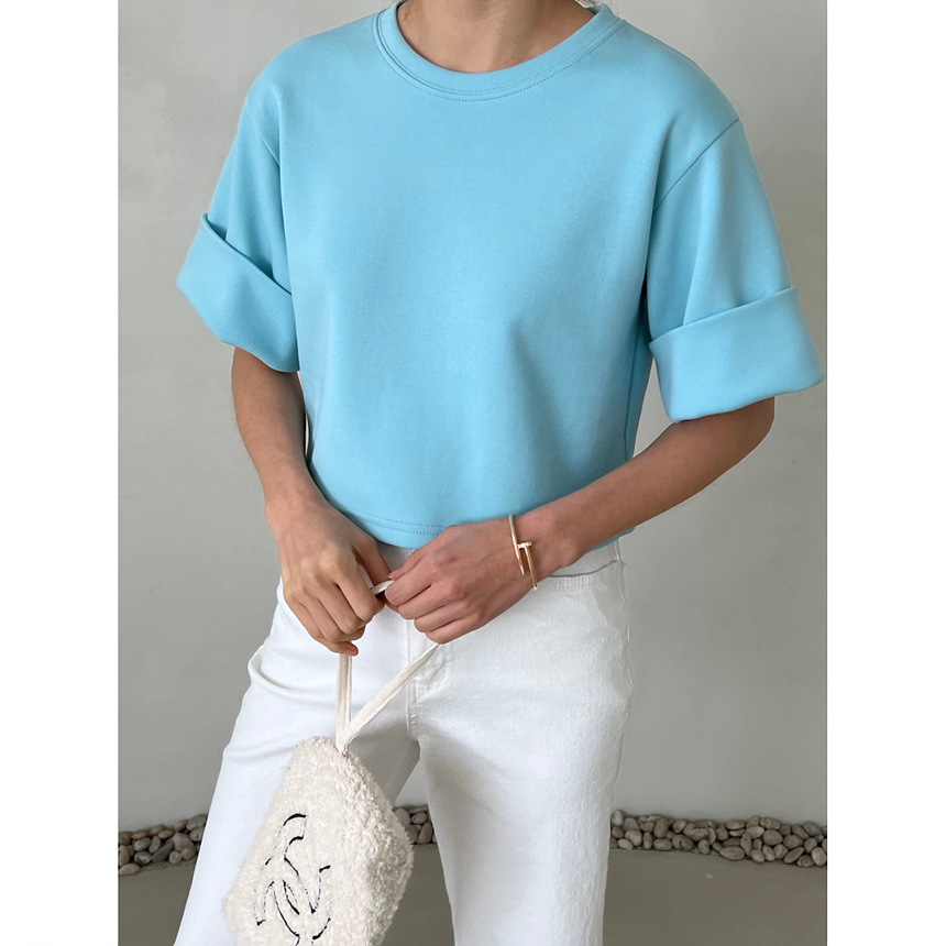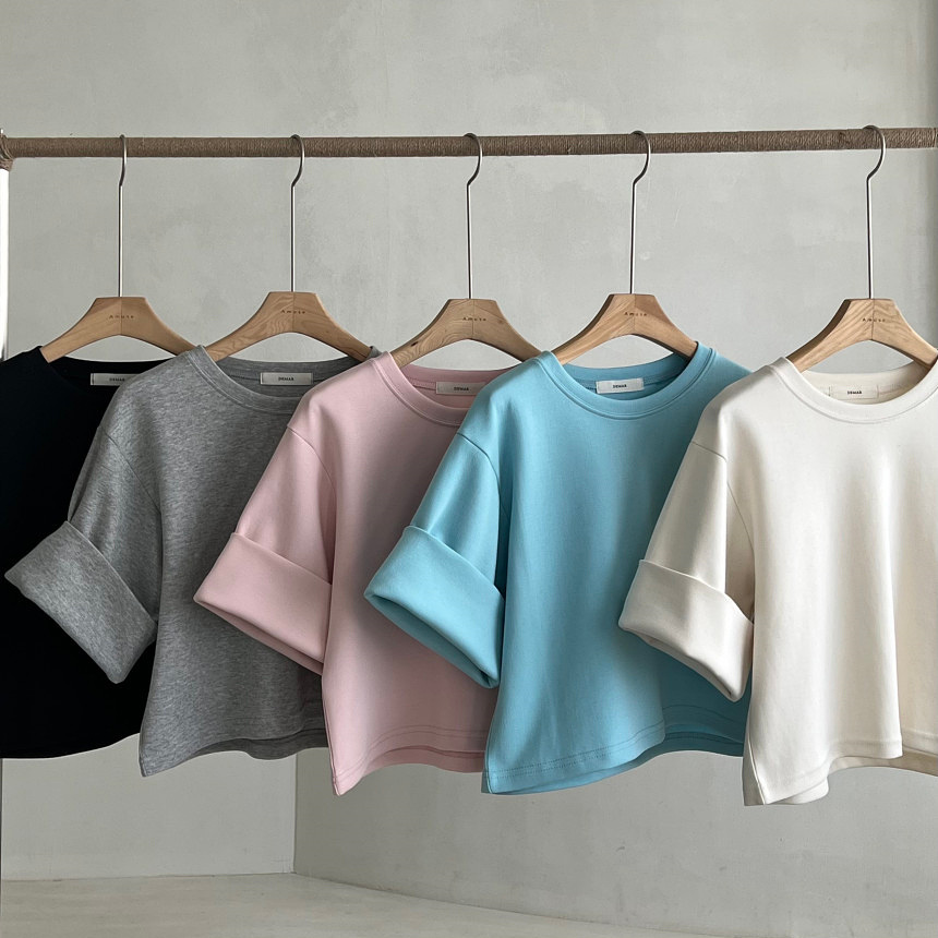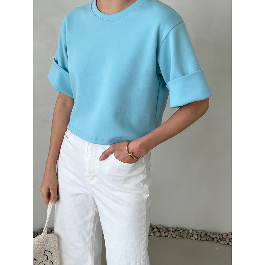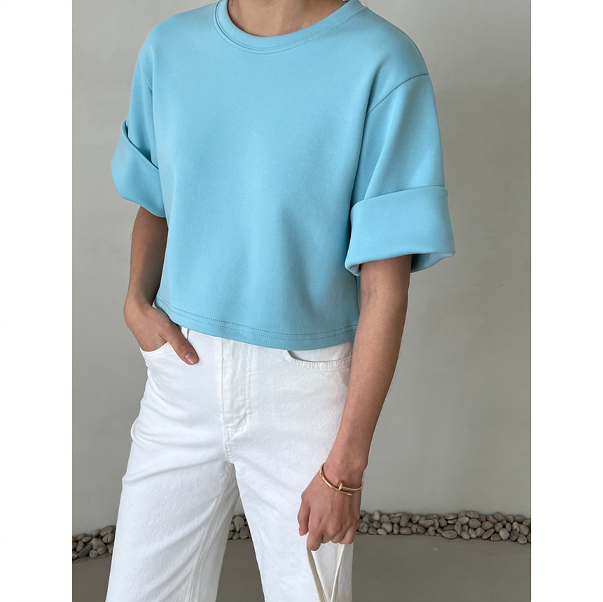 바로발송 폰즈 롤업 루즈핏 크롭 티셔츠