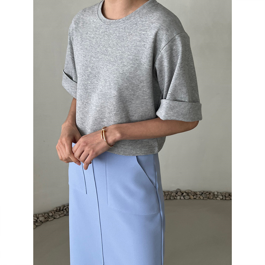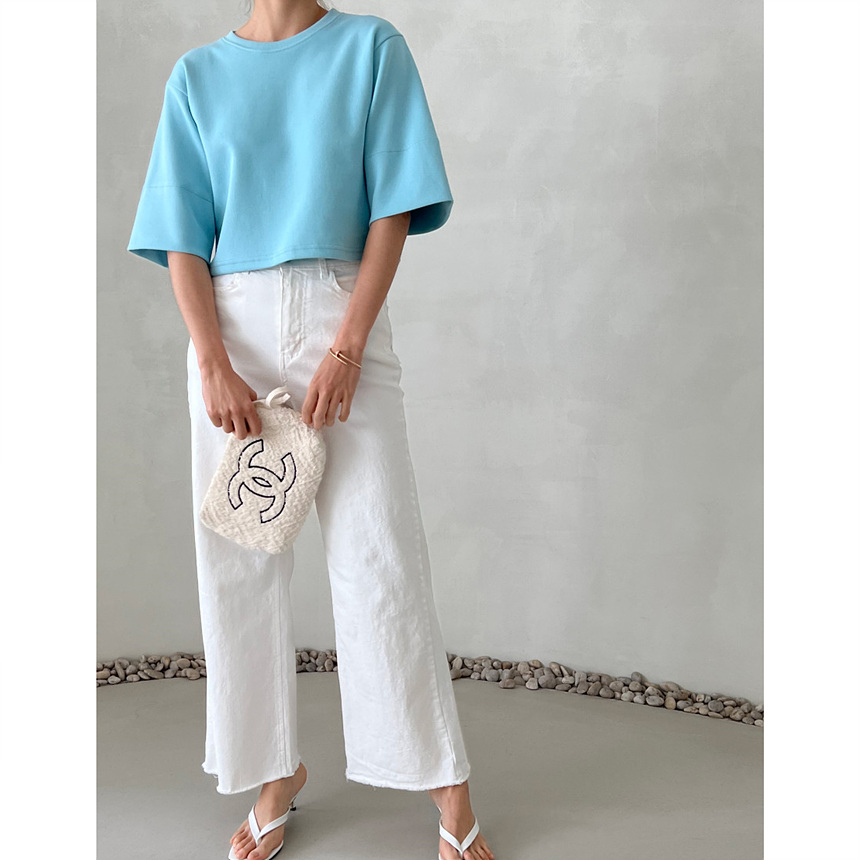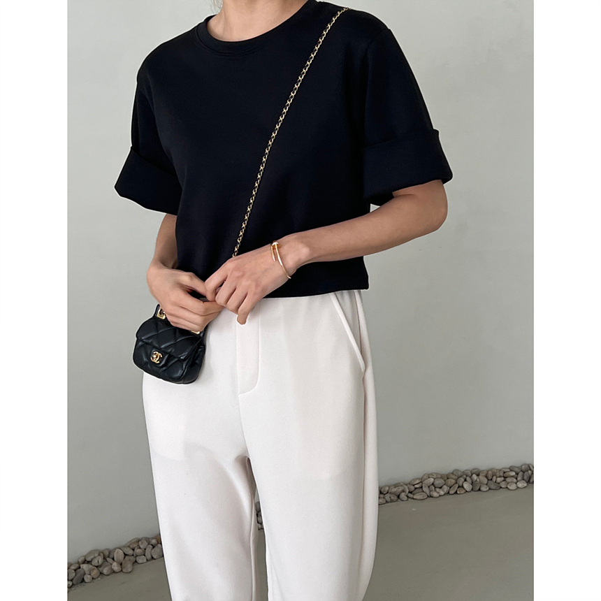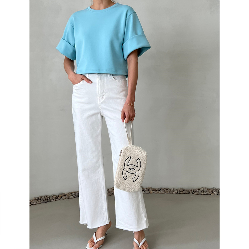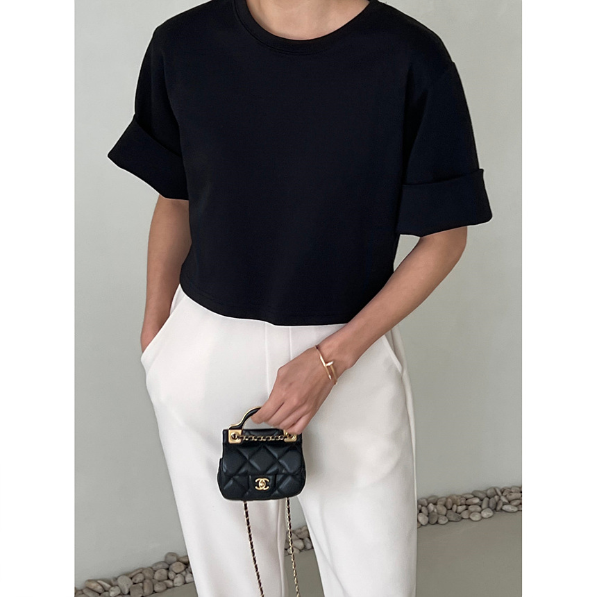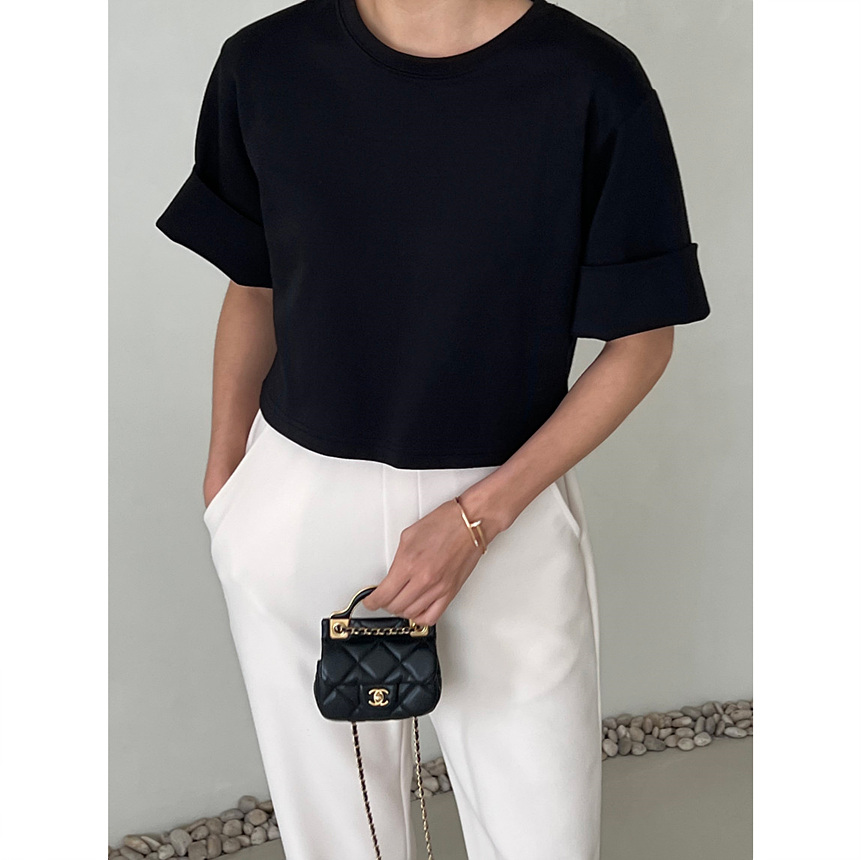 바로발송 폰즈 롤업 루즈핏 크롭 티셔츠