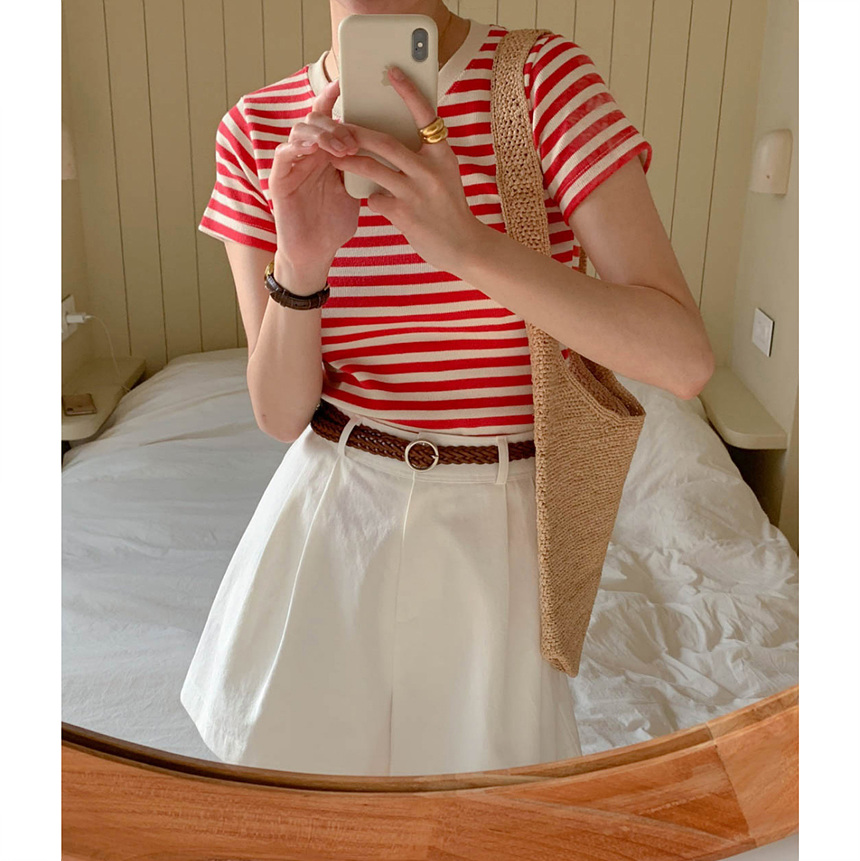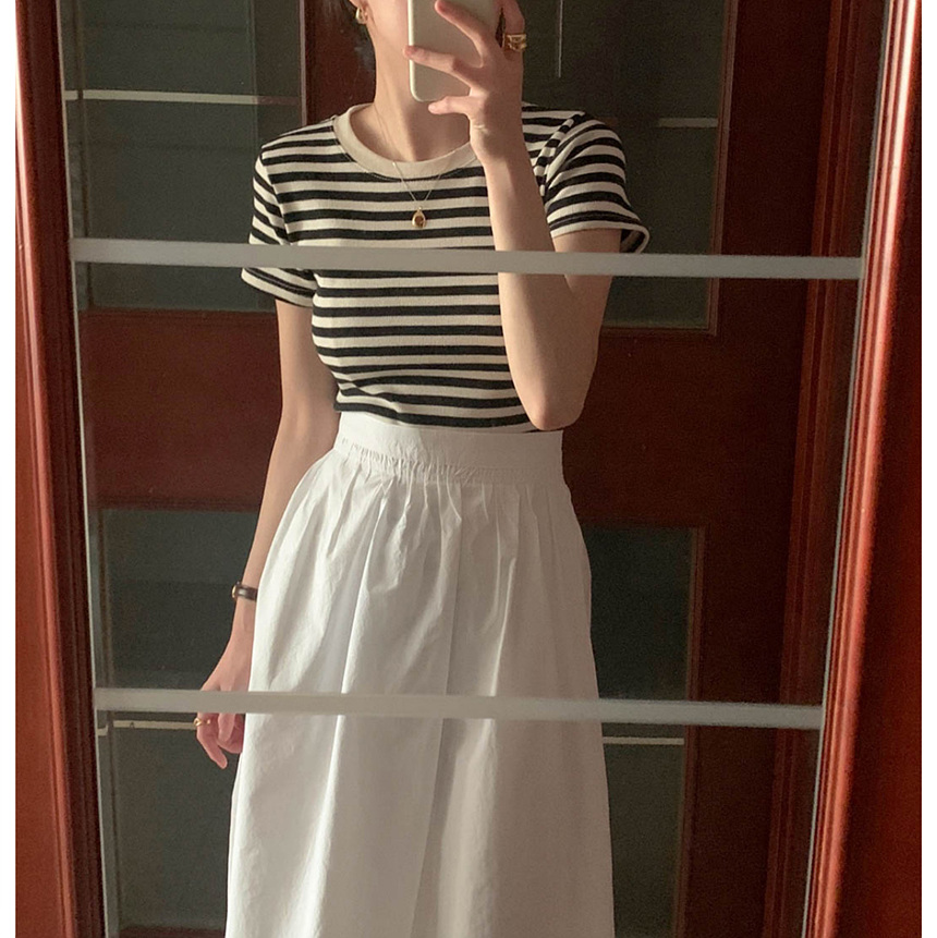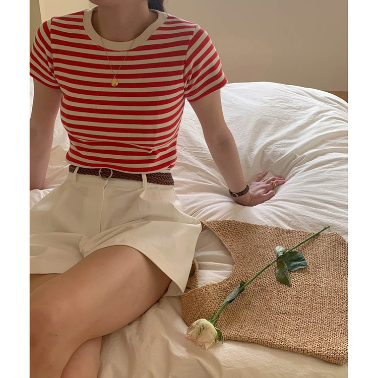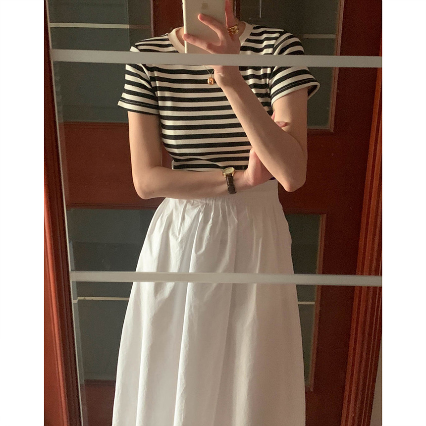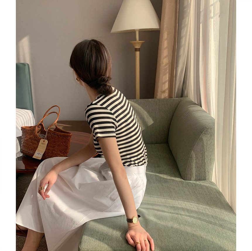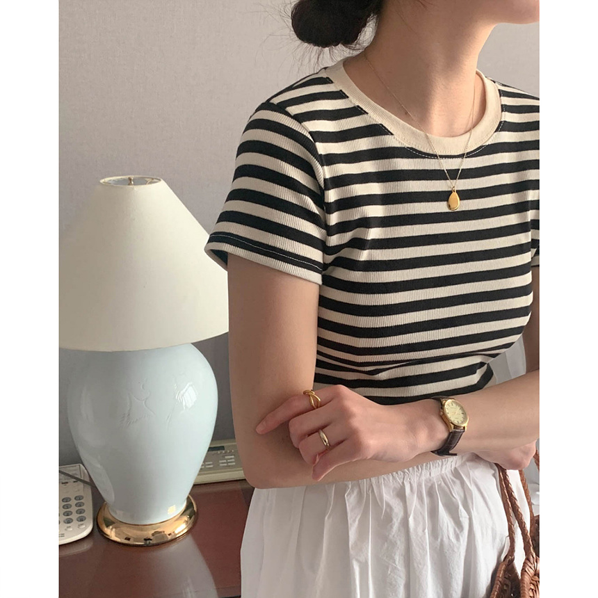 바로발송 마를린 슬림 스트라이프 라운드 반팔 티셔츠
