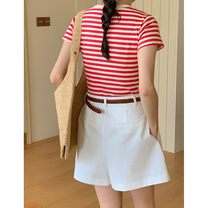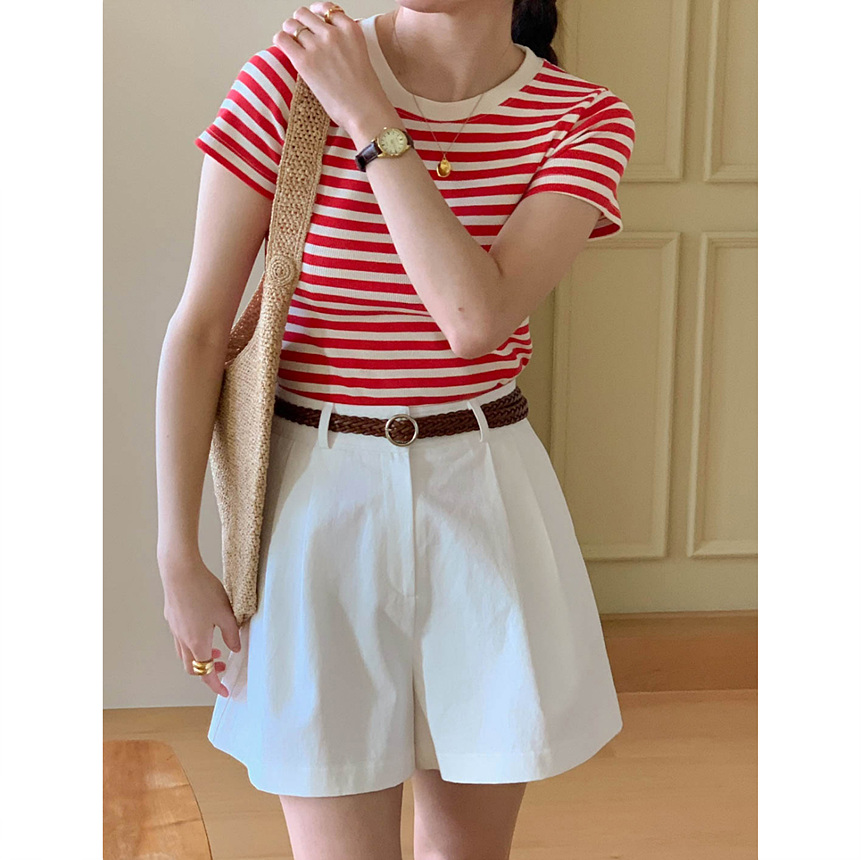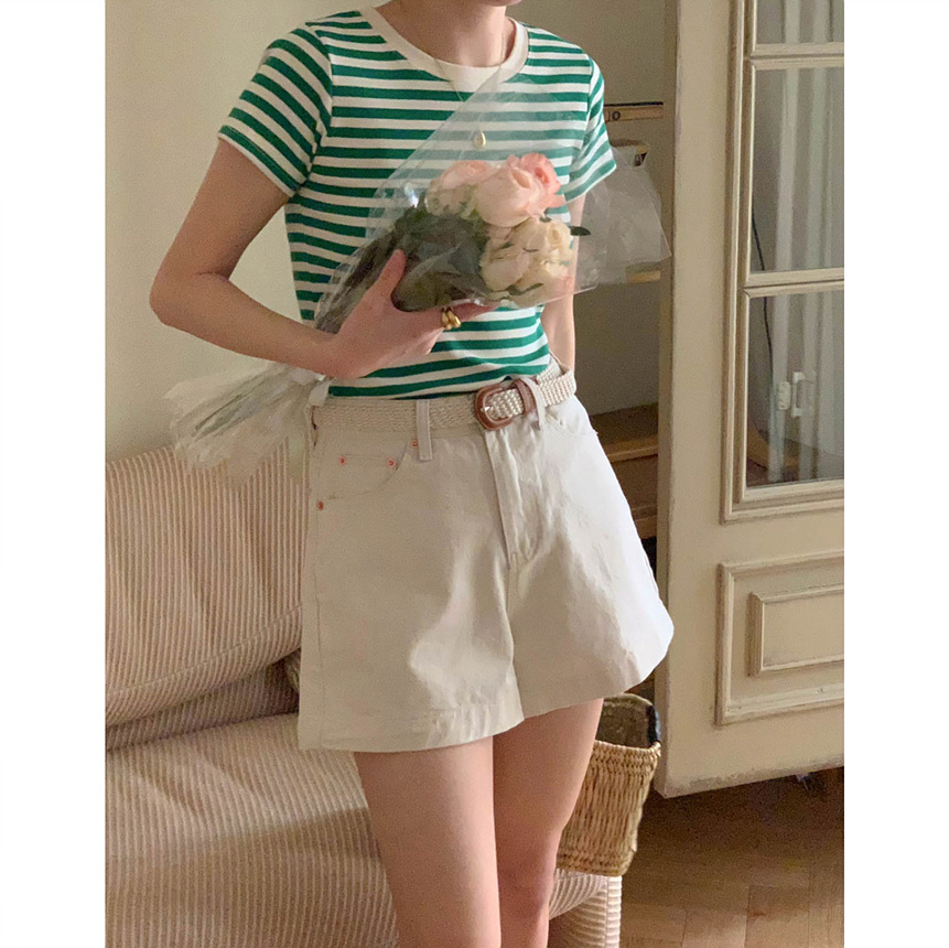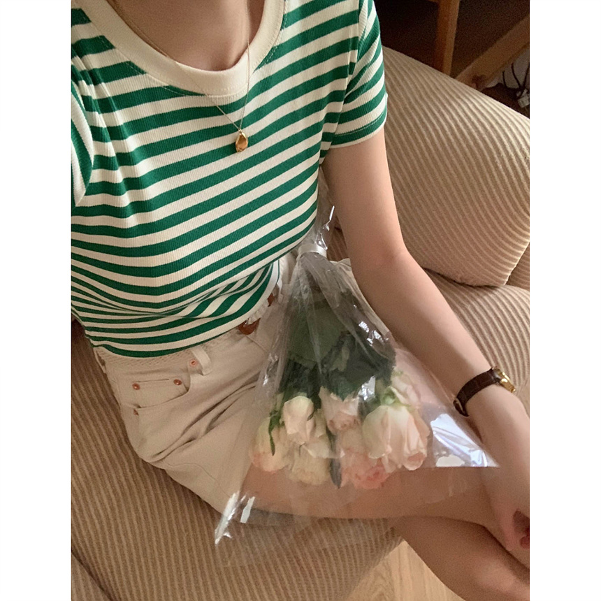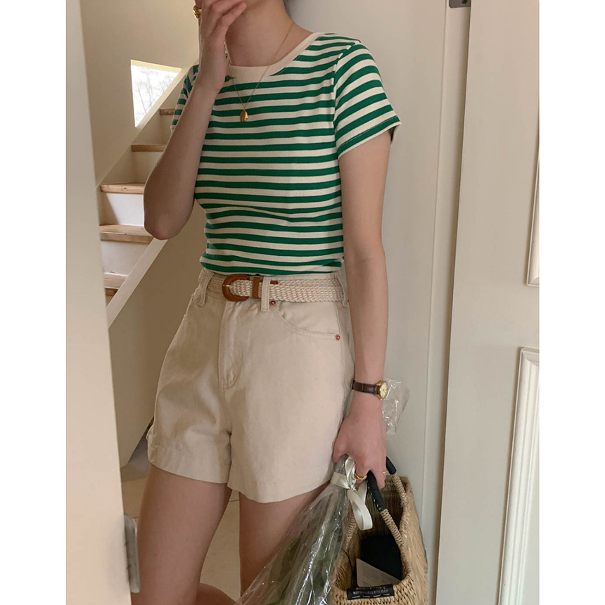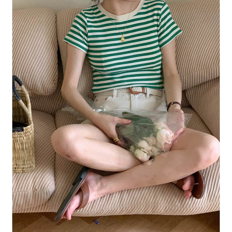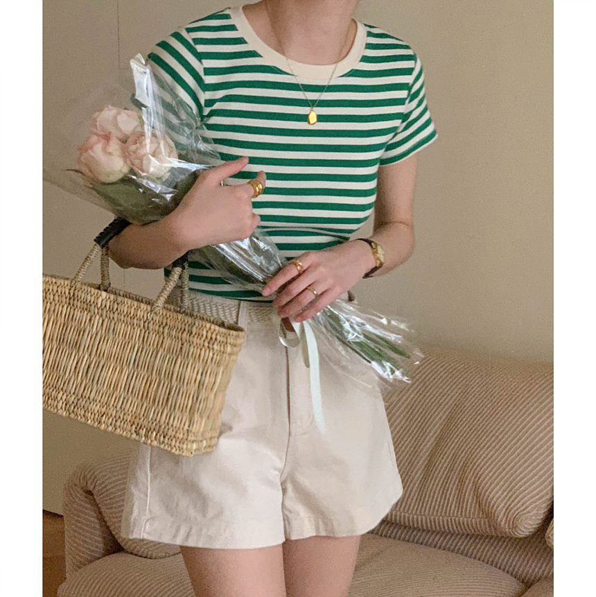 바로발송 마를린 슬림 스트라이프 라운드 반팔 티셔츠