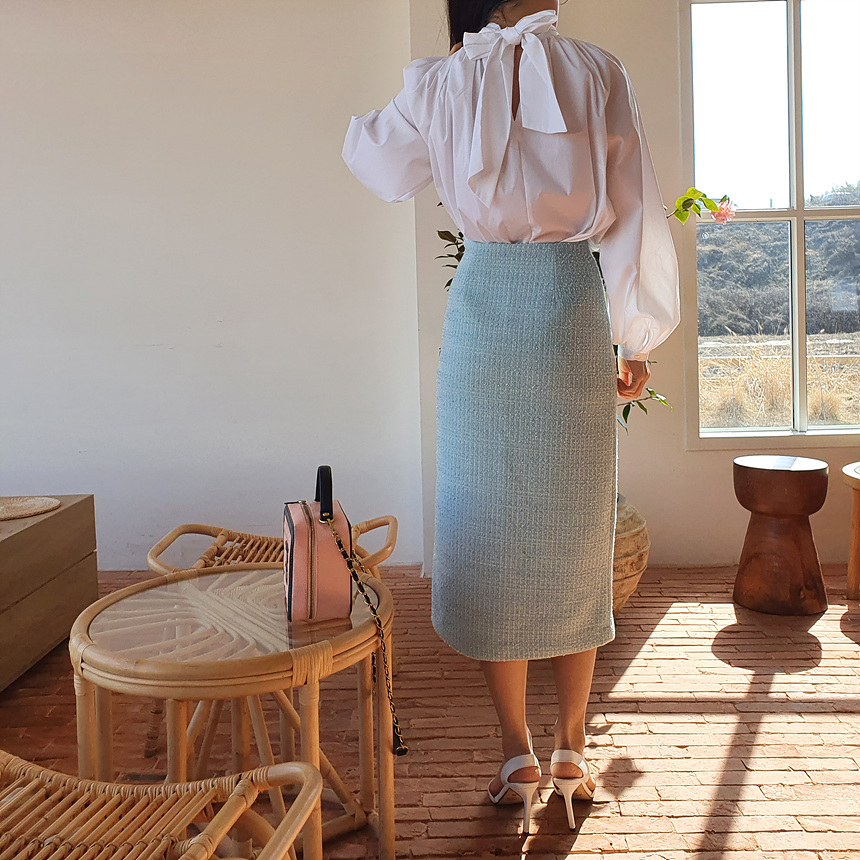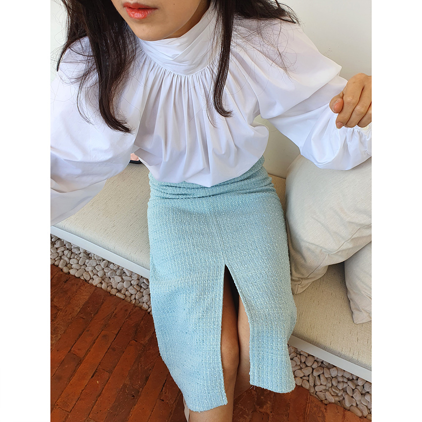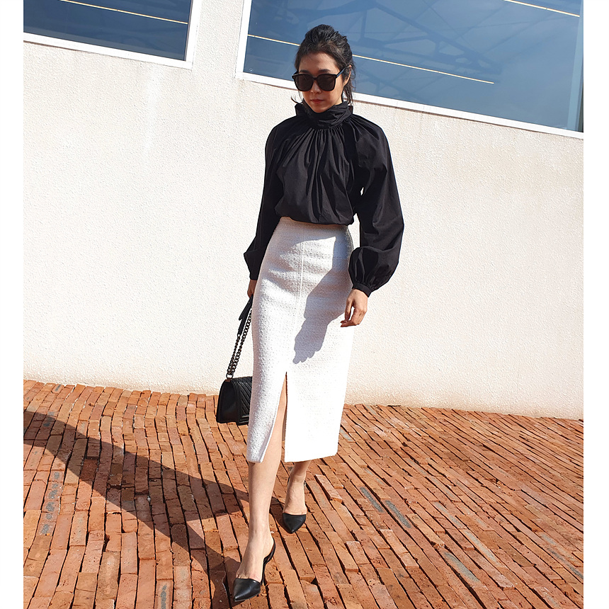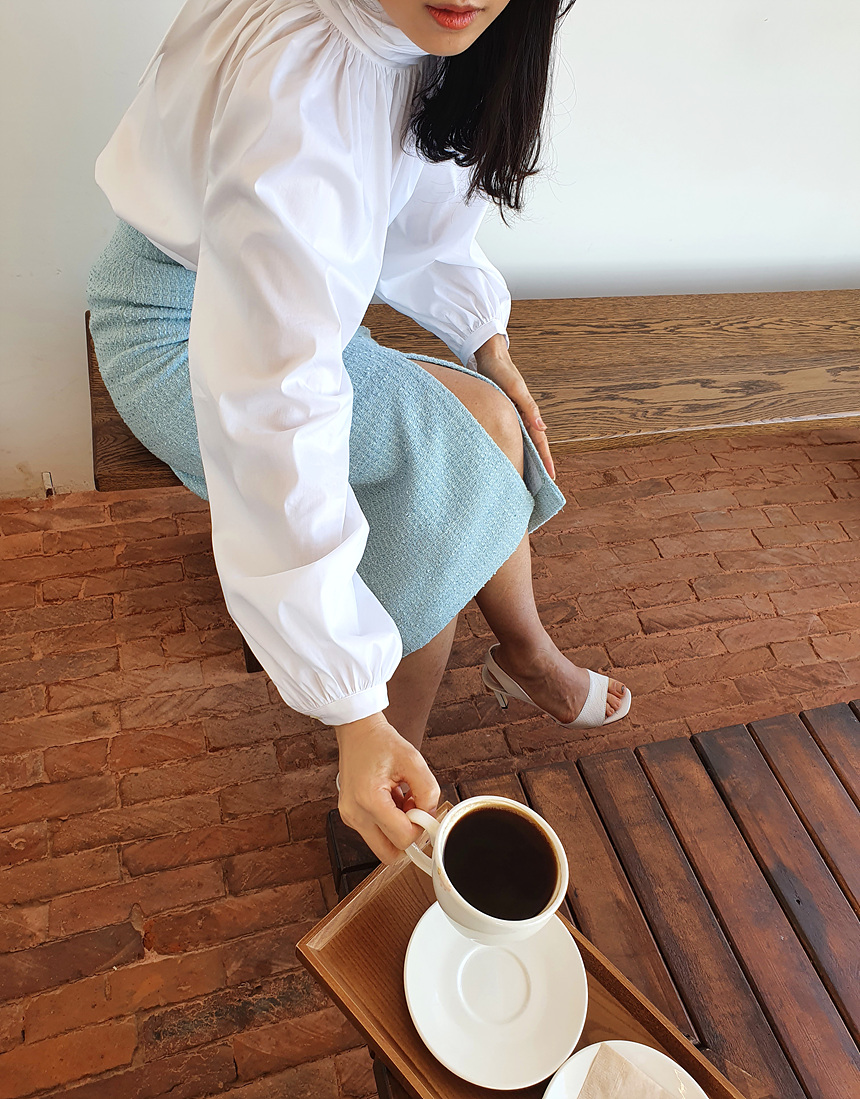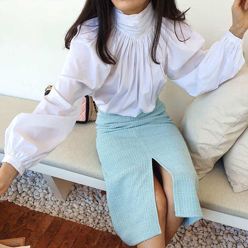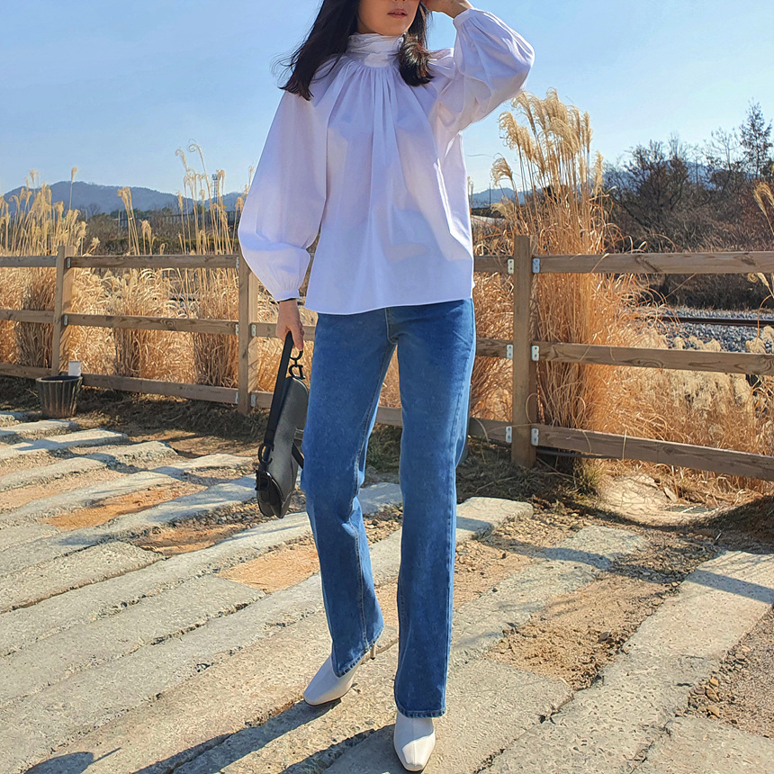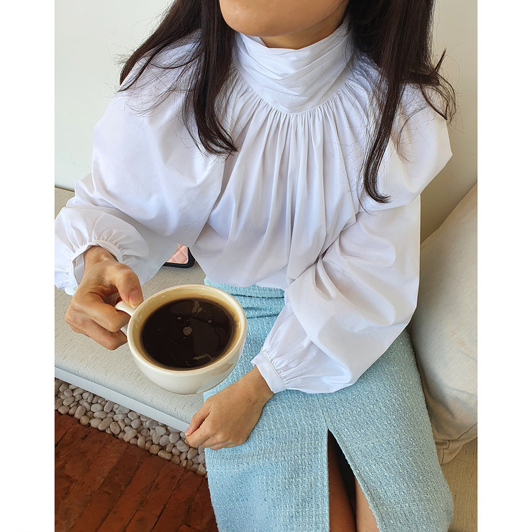 바로발송 루즈핏 볼륨 셔링 리본 블라우스
