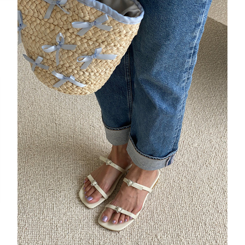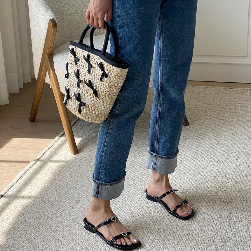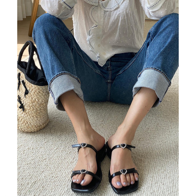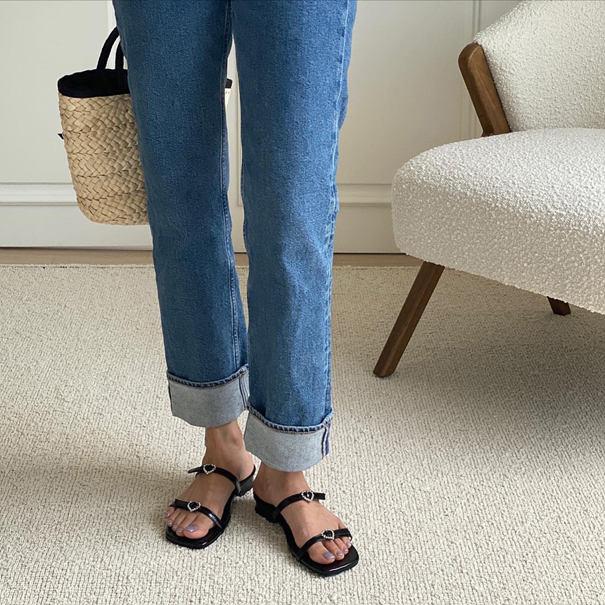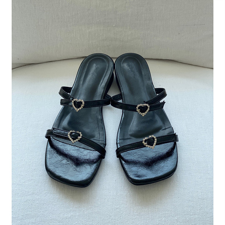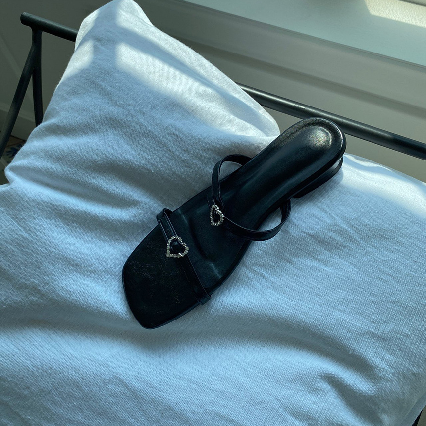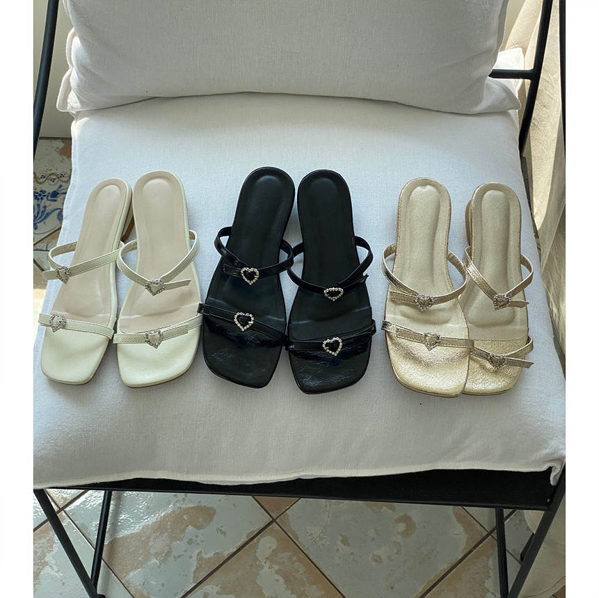 더블 하트 큐빅 슬리퍼 샌들 여름 슈즈