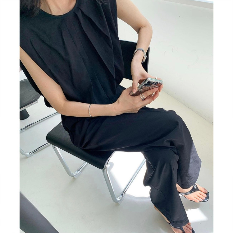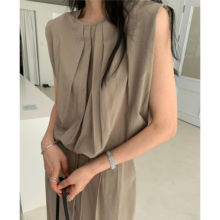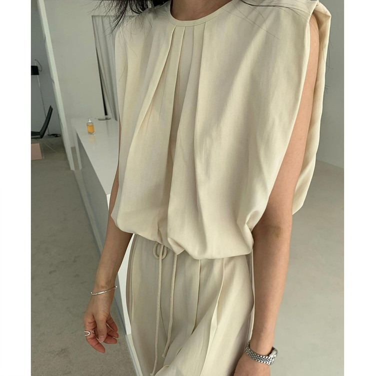소프 핀턱 민소매 블라우스