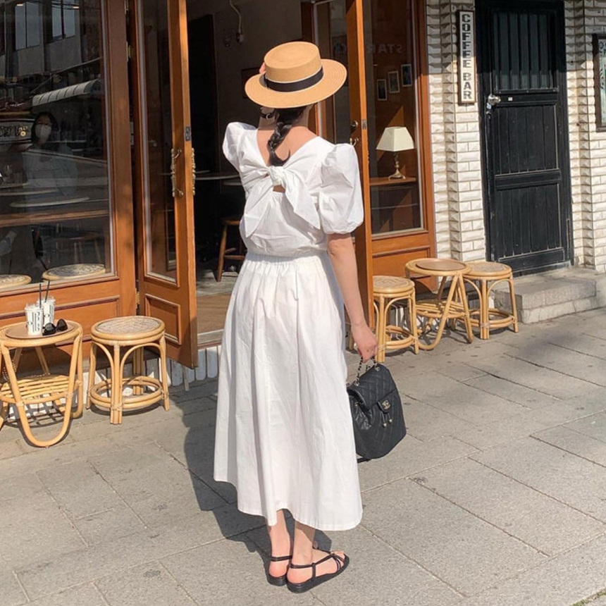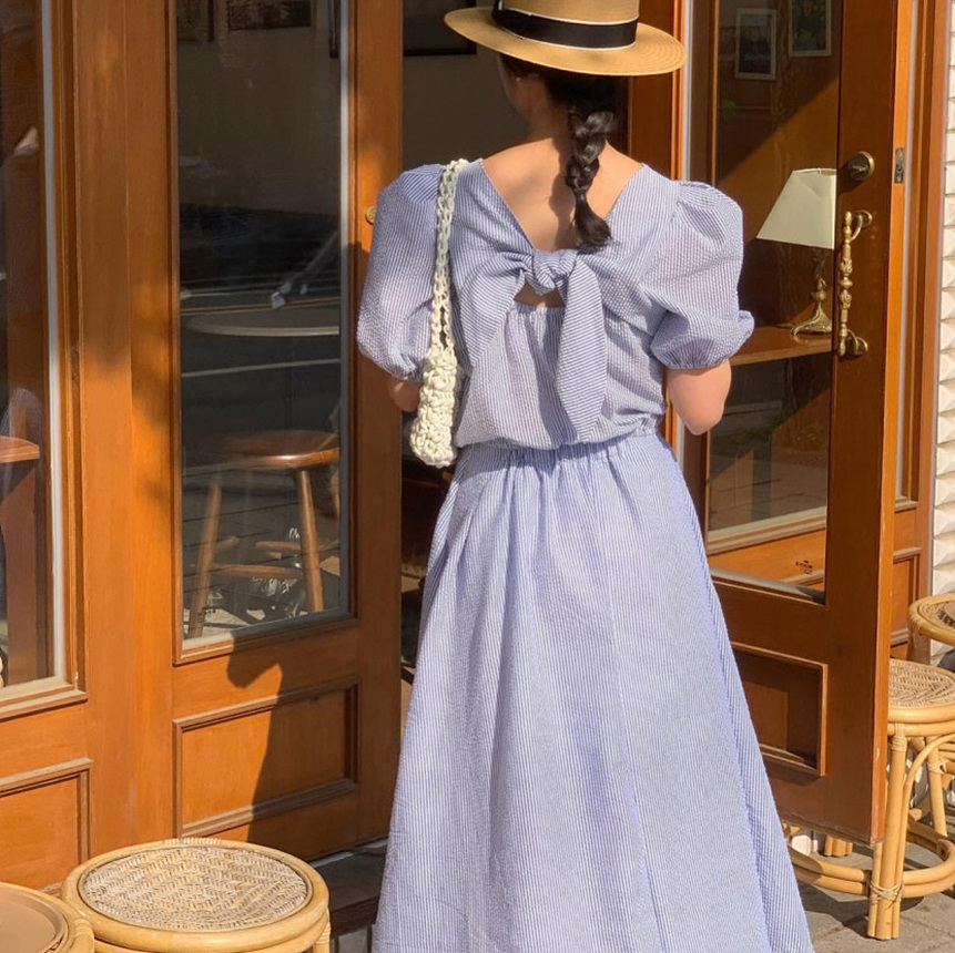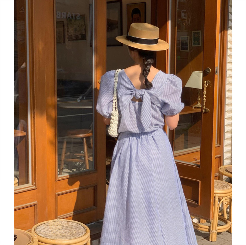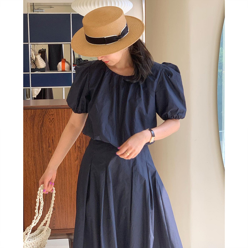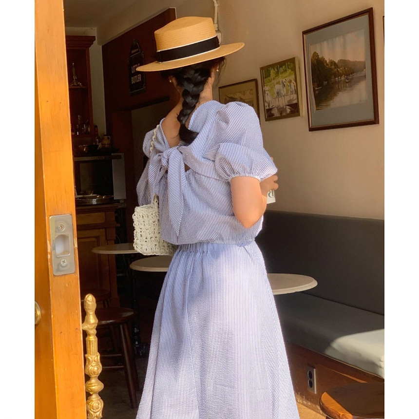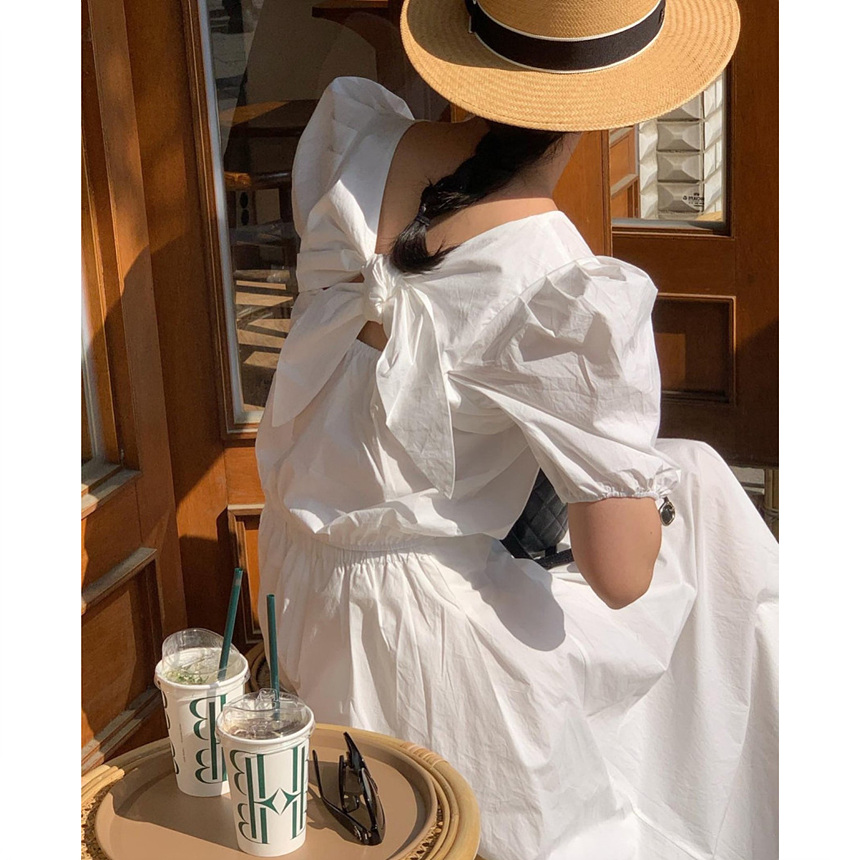 바로발송 시아 뒷리본 셔링 크롭 블라우스