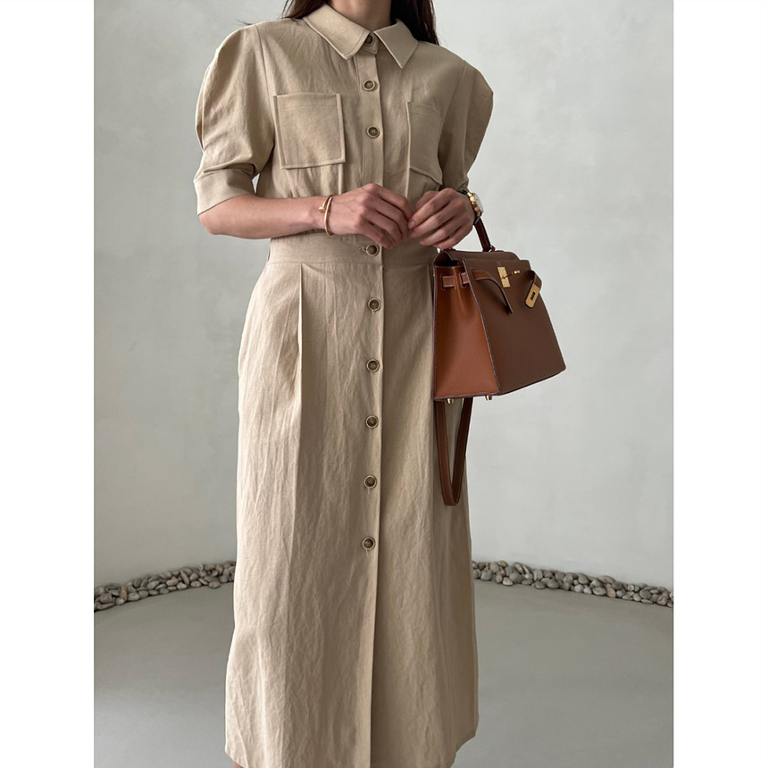 바로발송 퍼기 퍼프 린넨 에이치 원피스