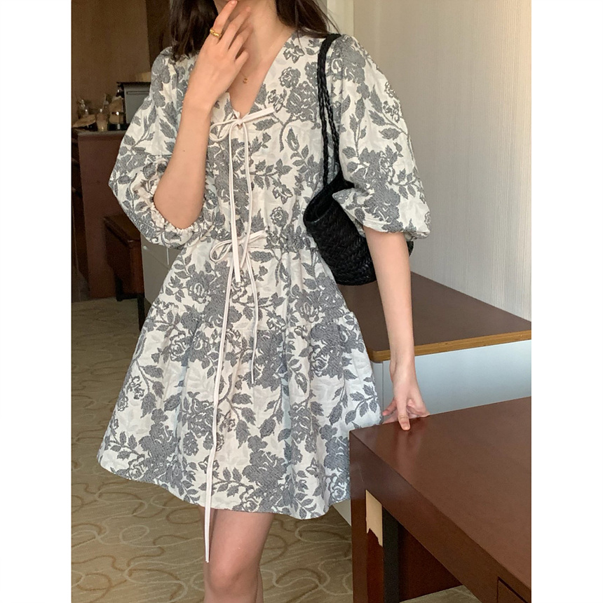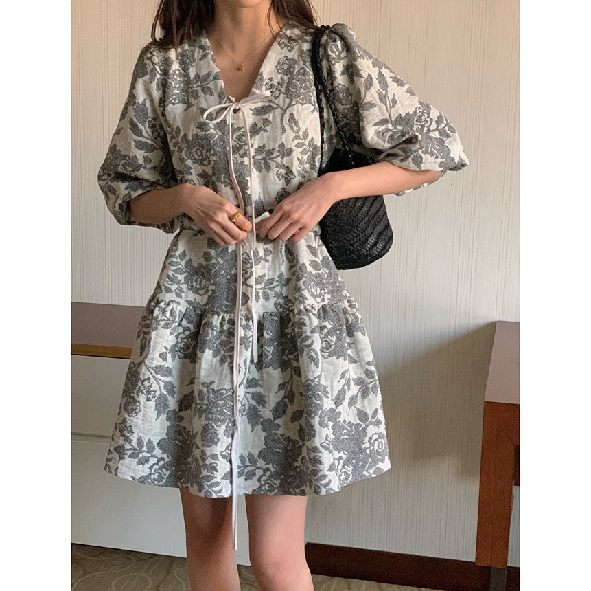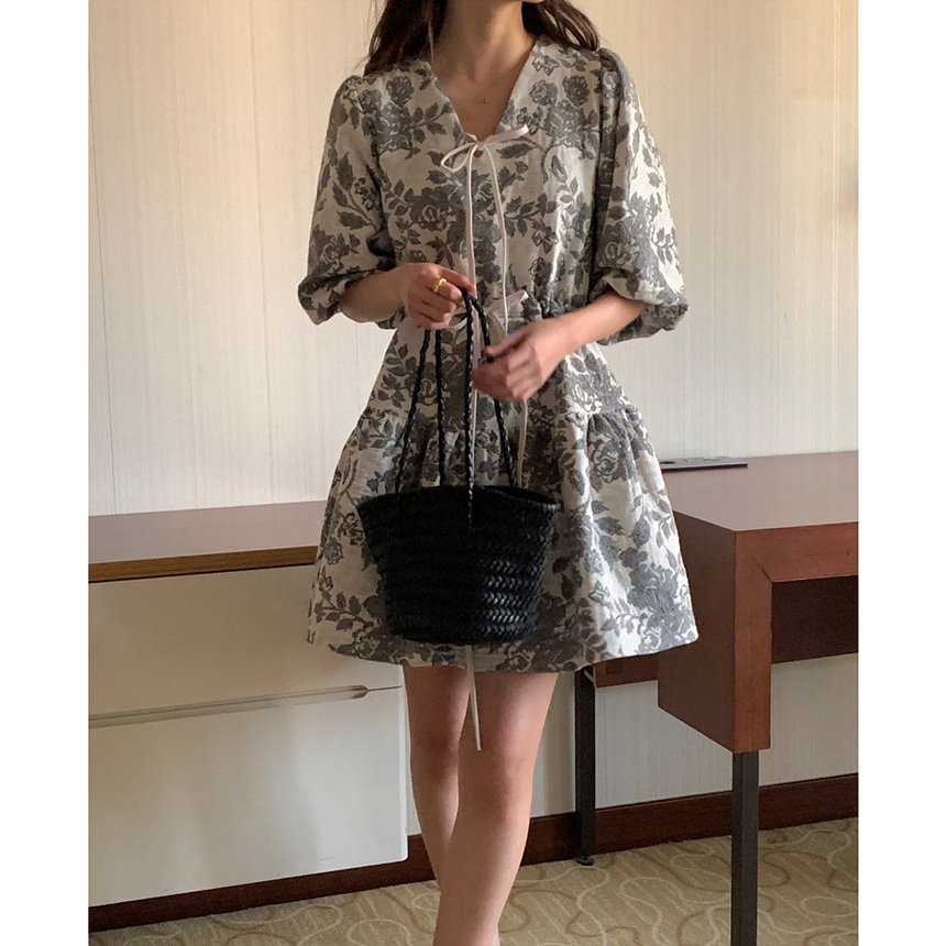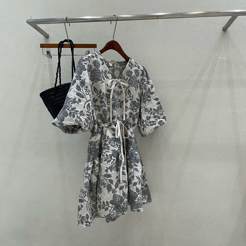 바로발송 엔틱 자가드 캉캉 미니 원피스