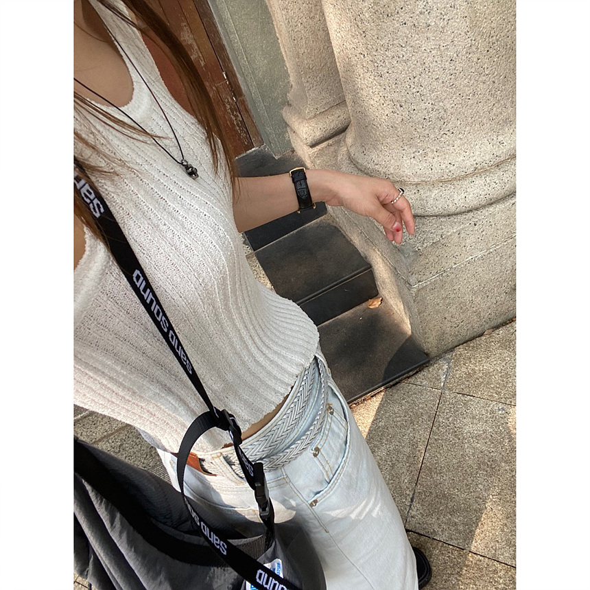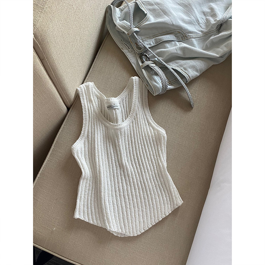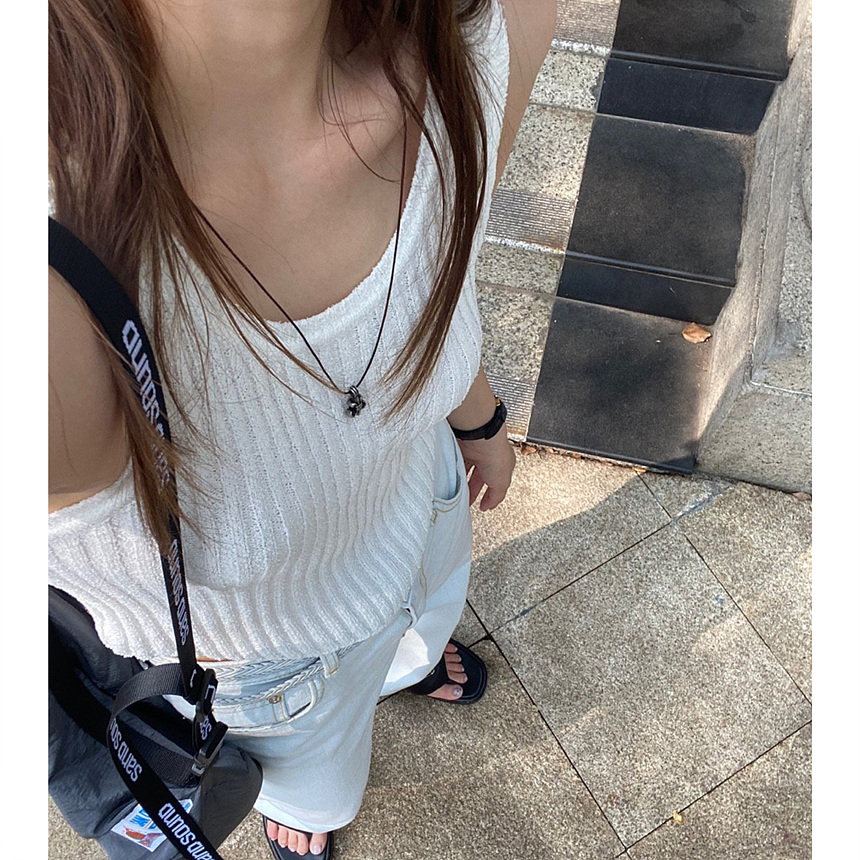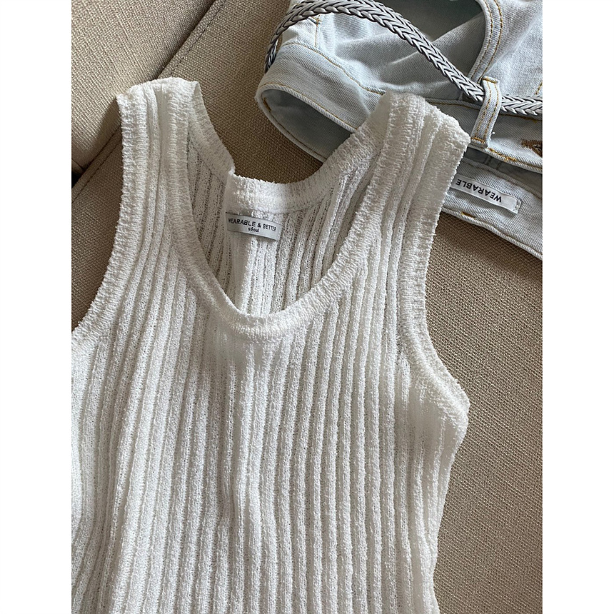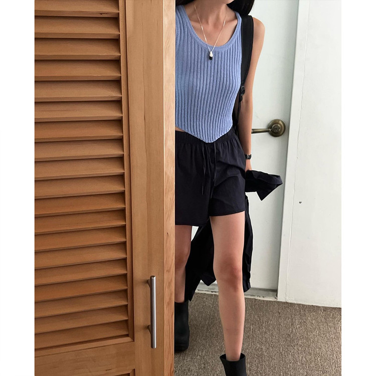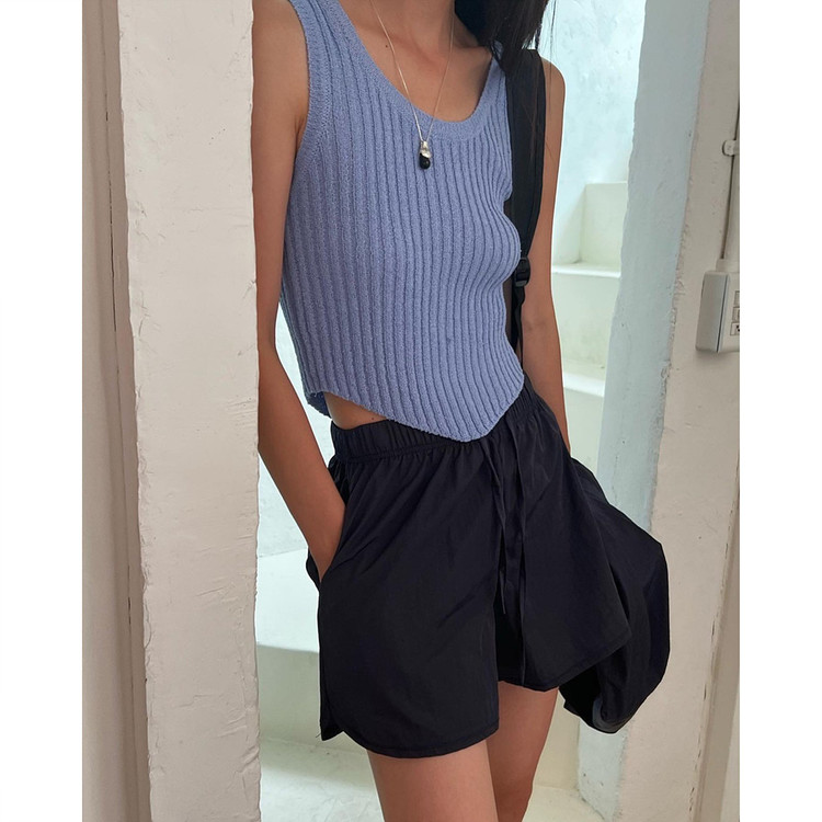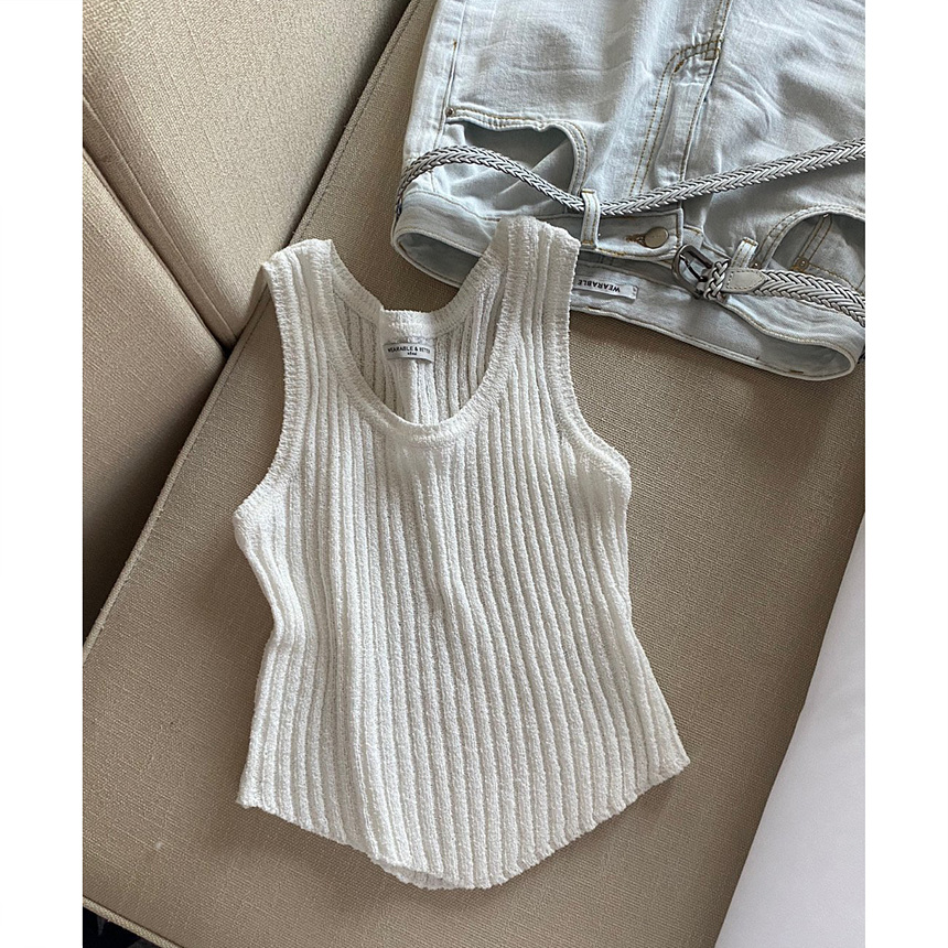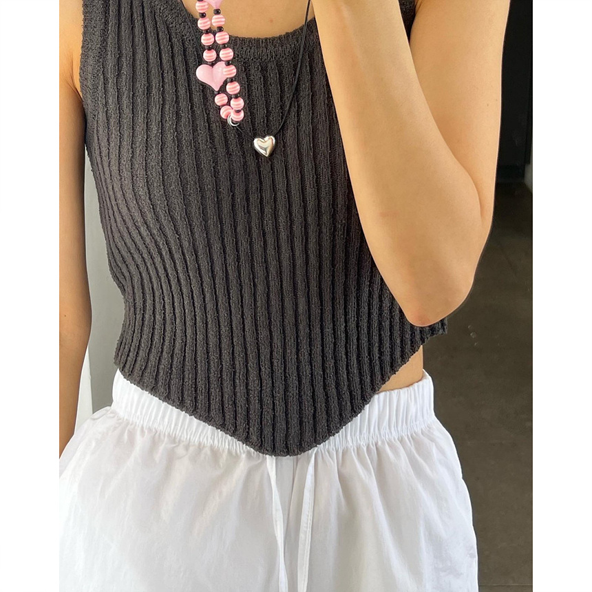 바로발송 삼각 밑단 유니크한 골지 니트 나시