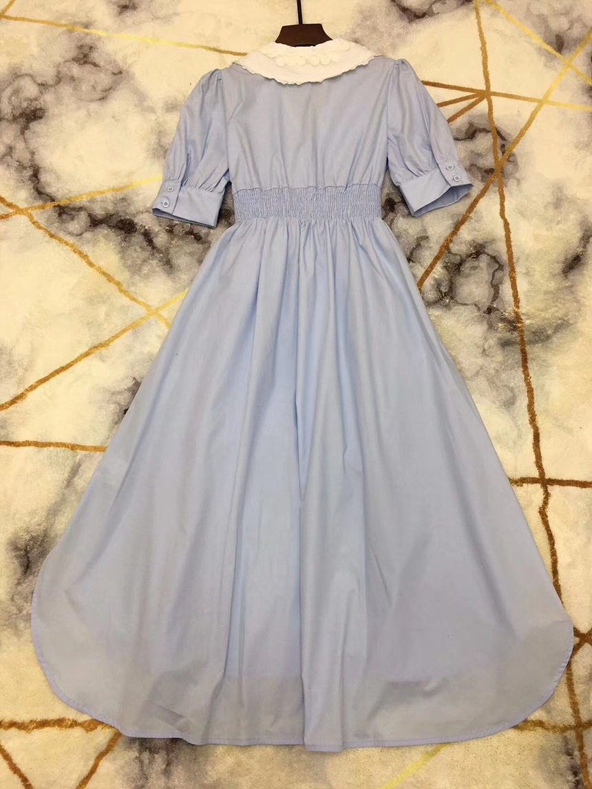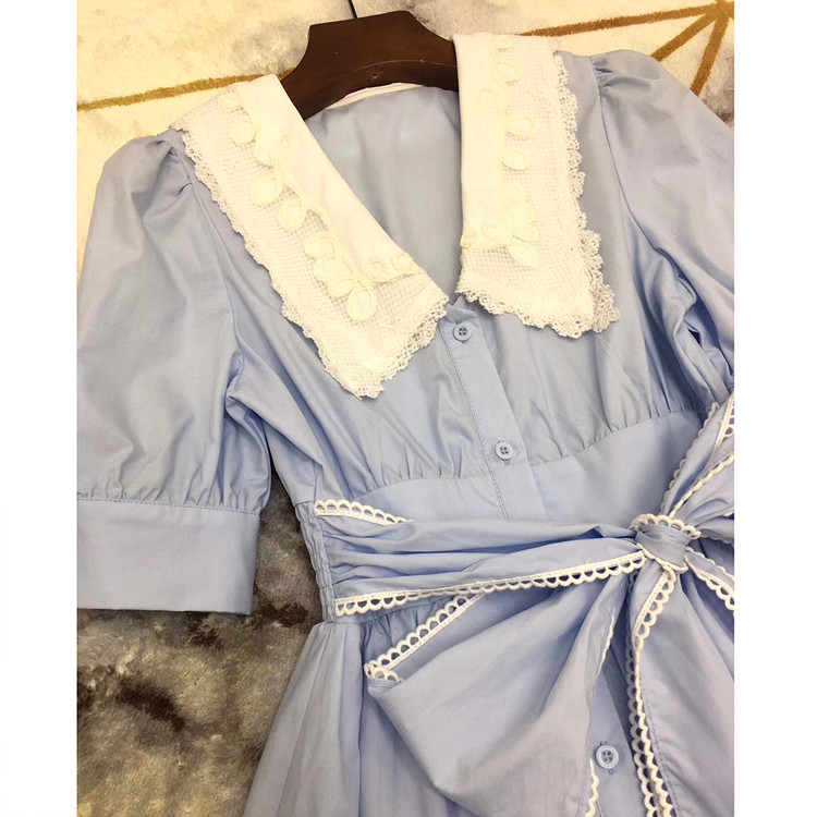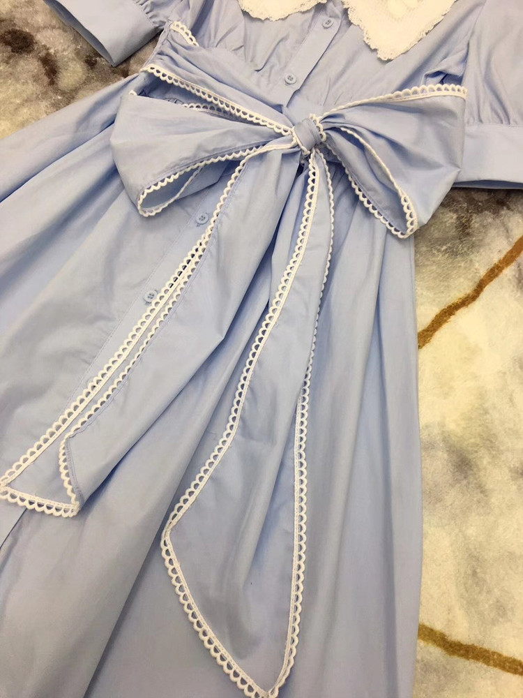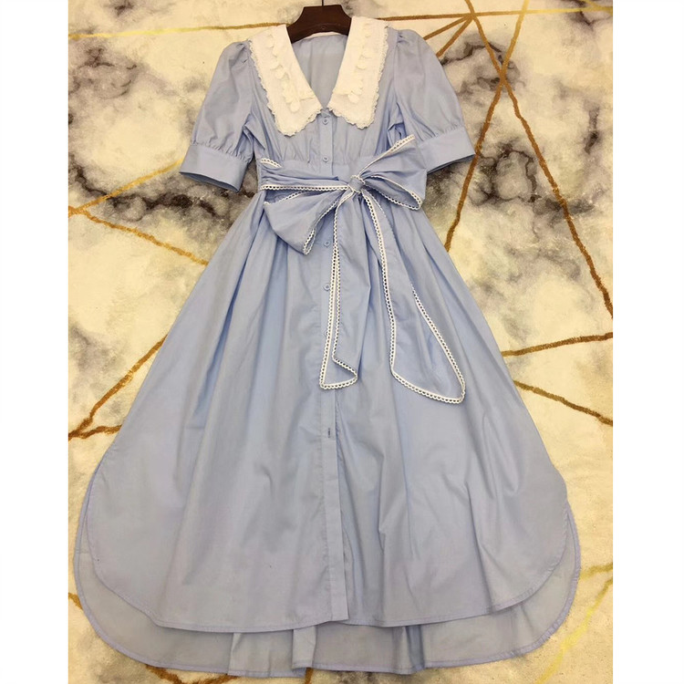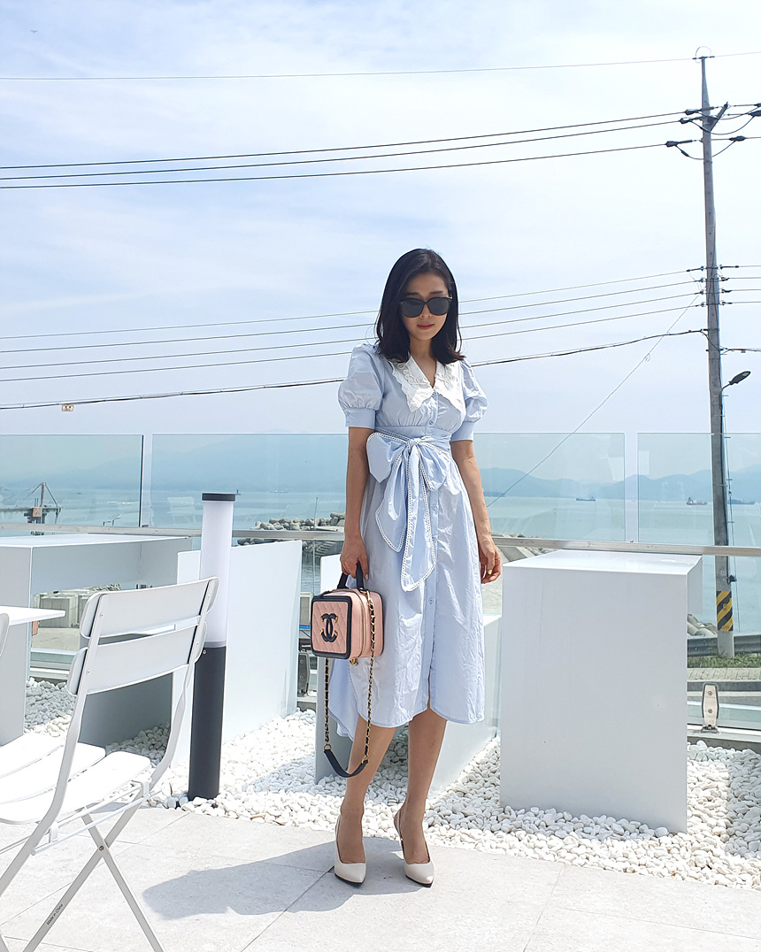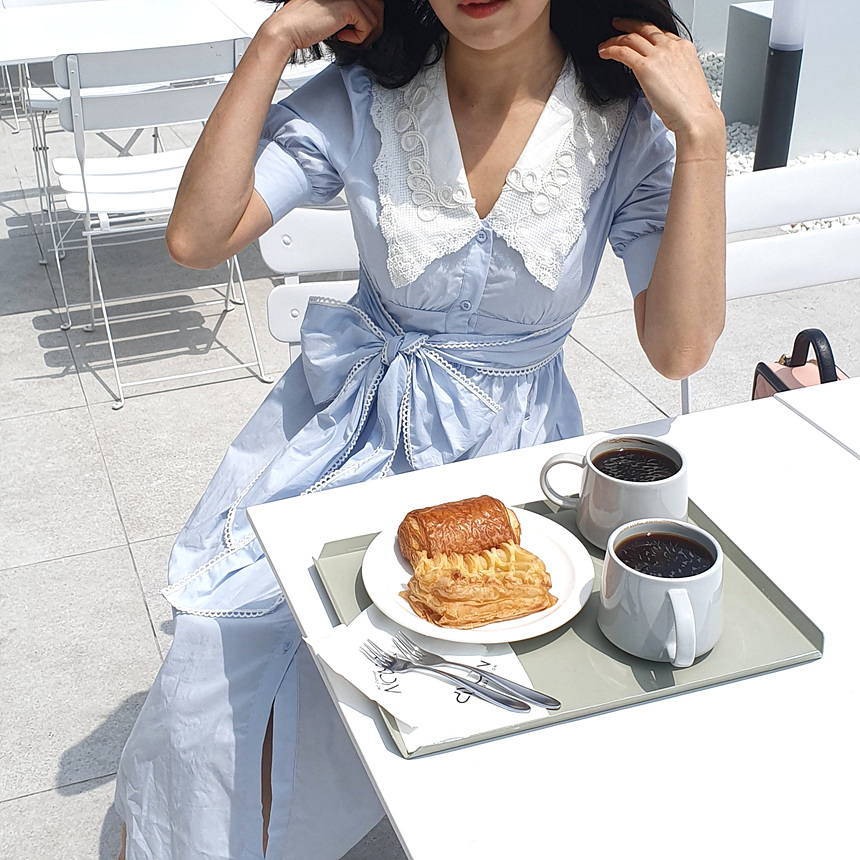 빅 카라 자수 리본 원피스
