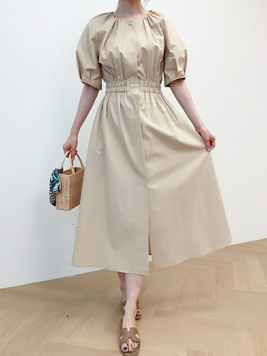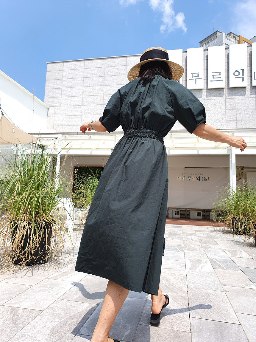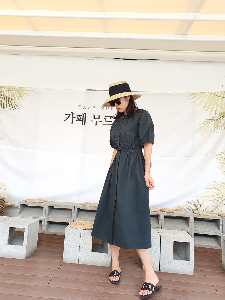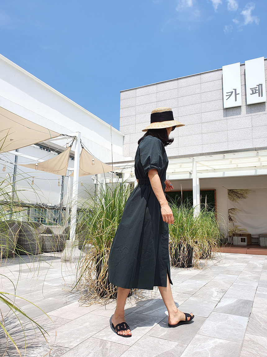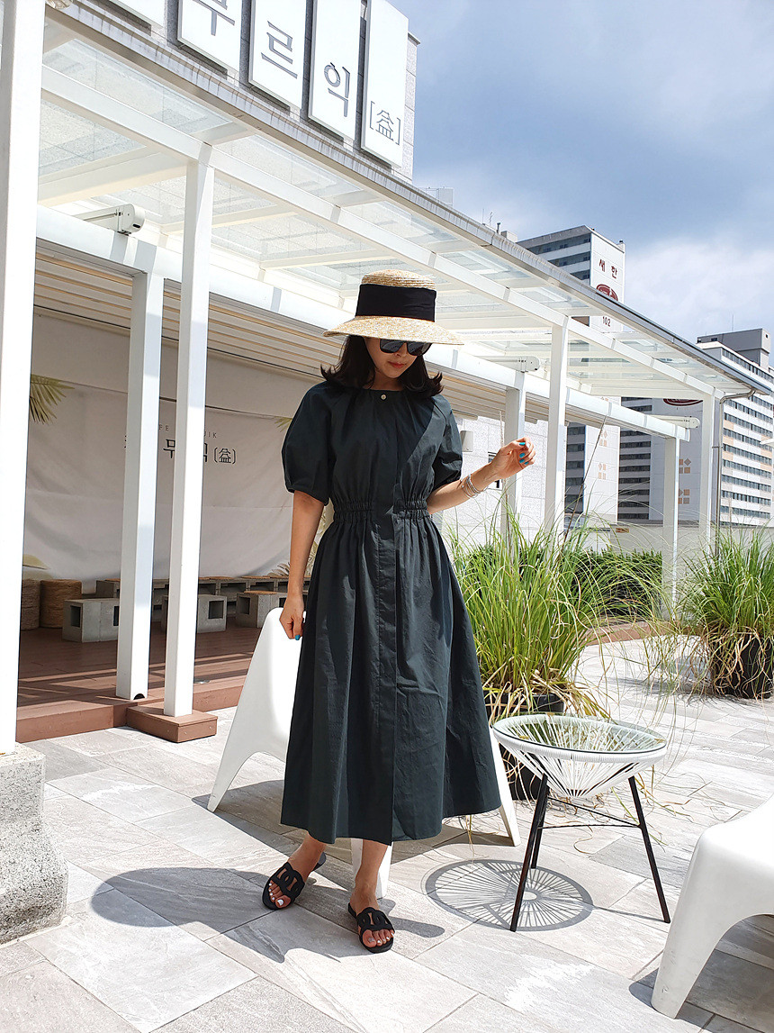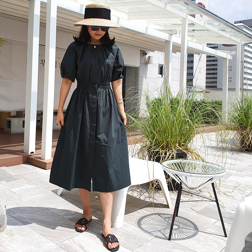 디어 허리 스모킹 볼륨 원피스