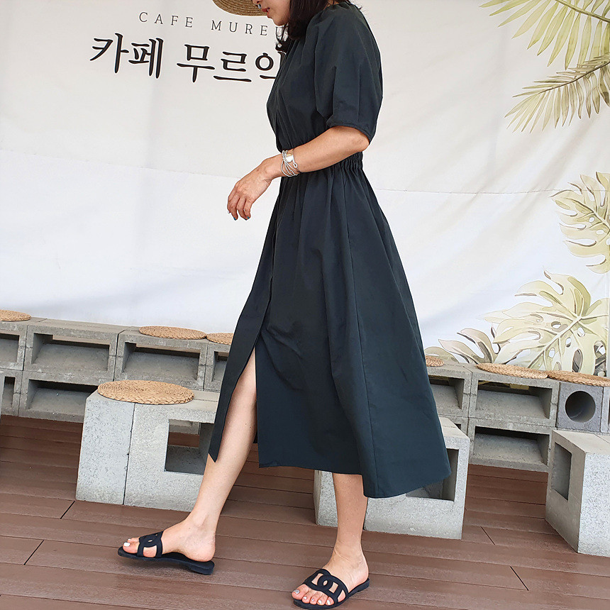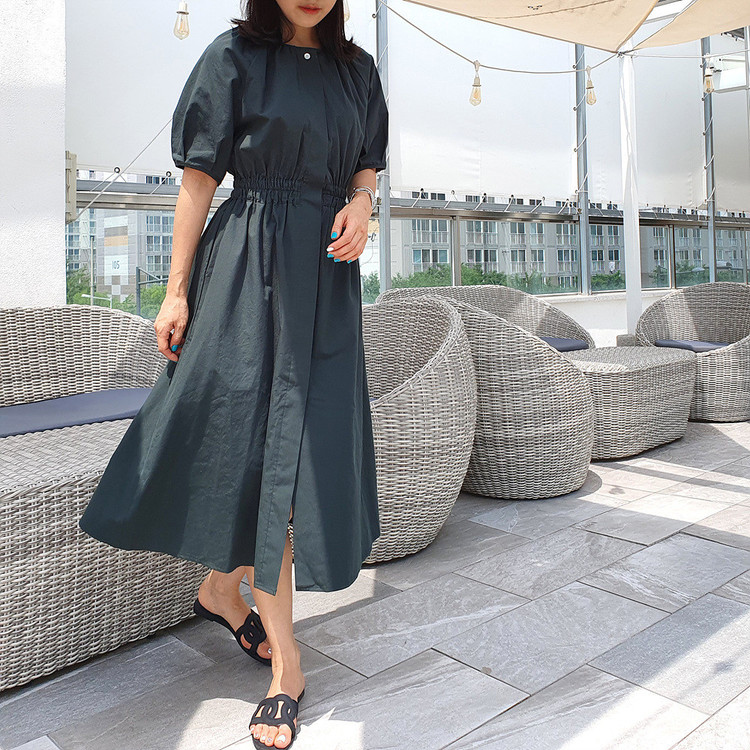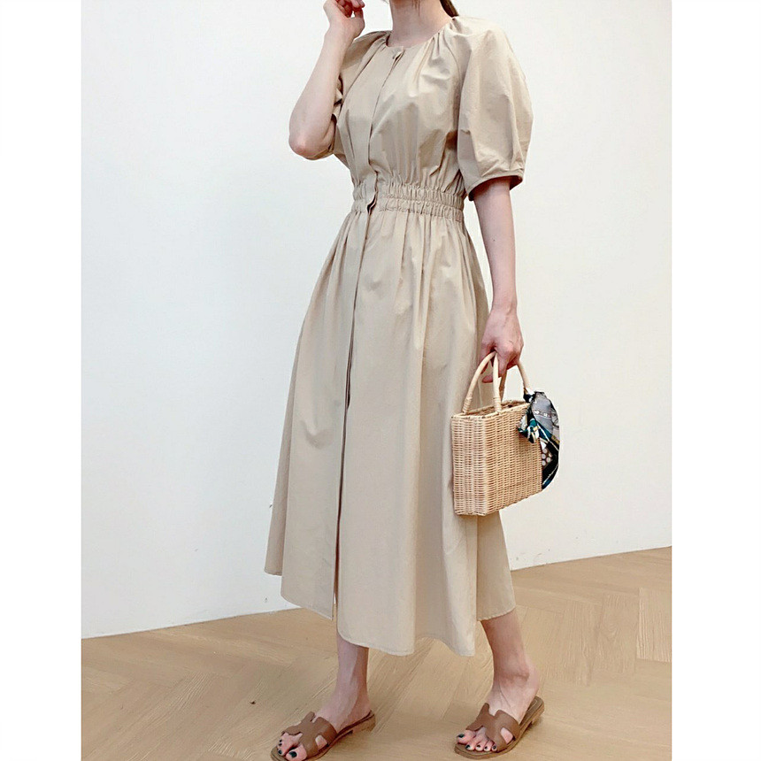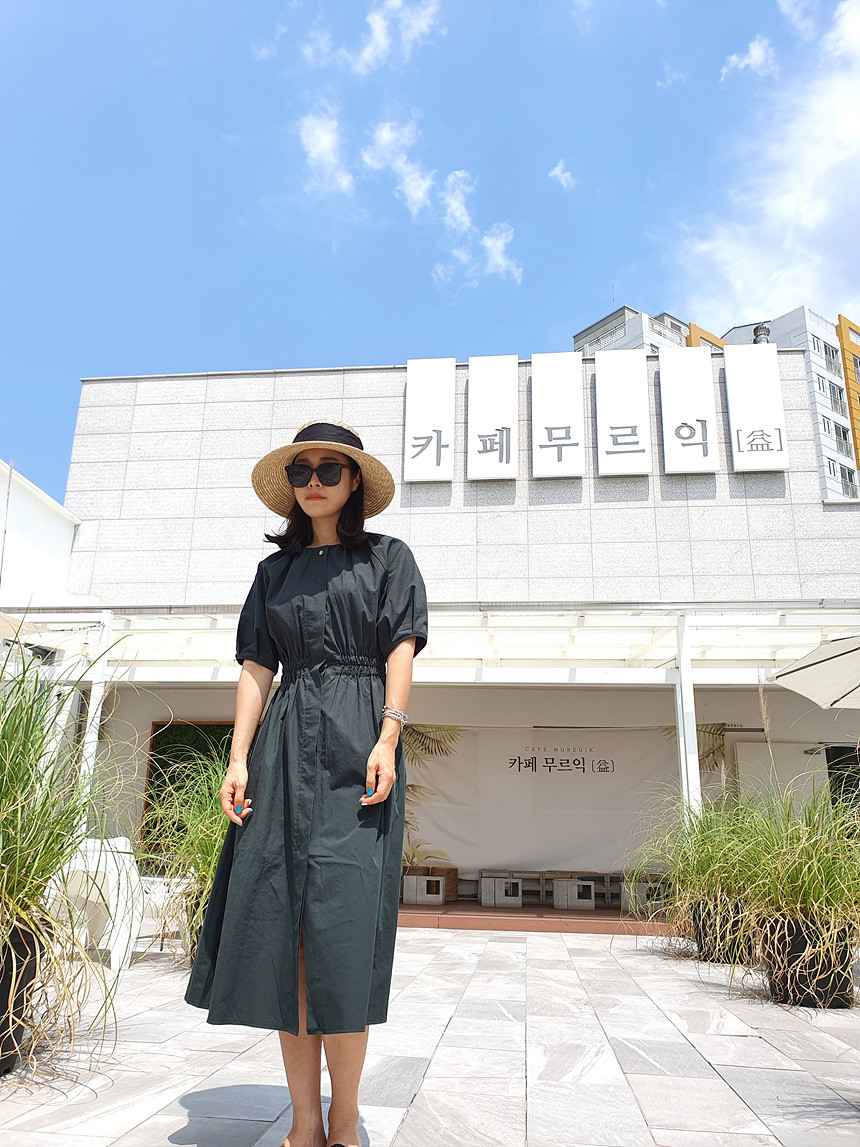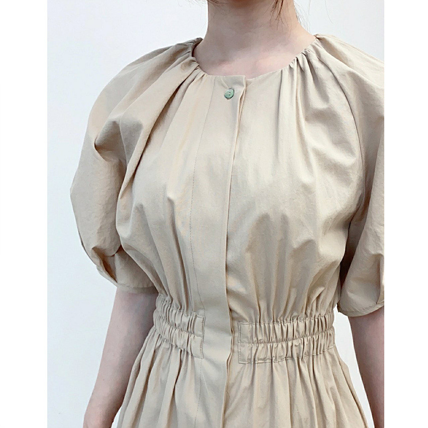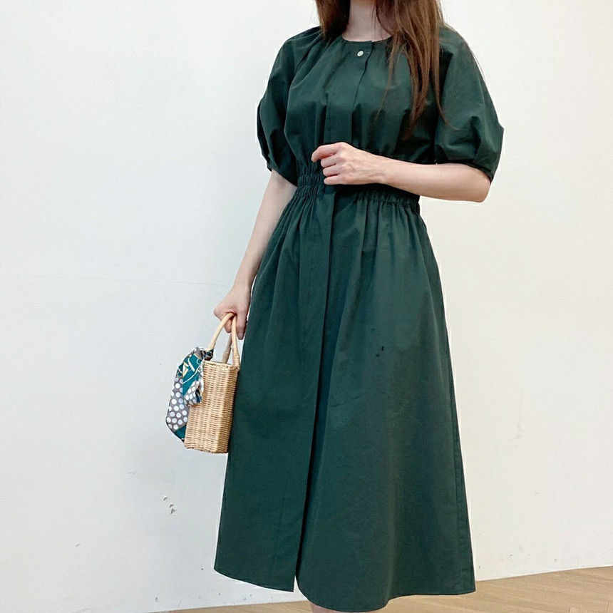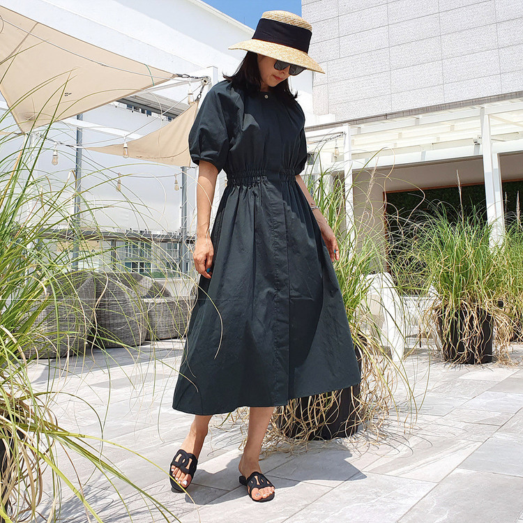 디어 허리 스모킹 볼륨 원피스