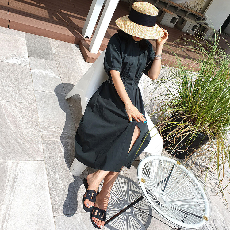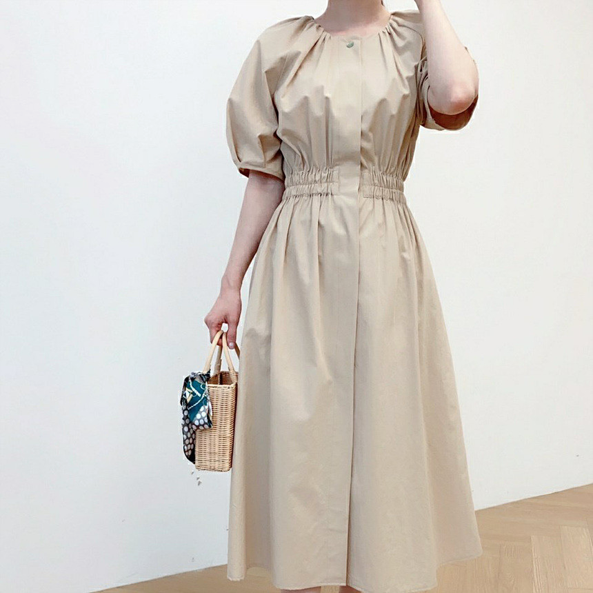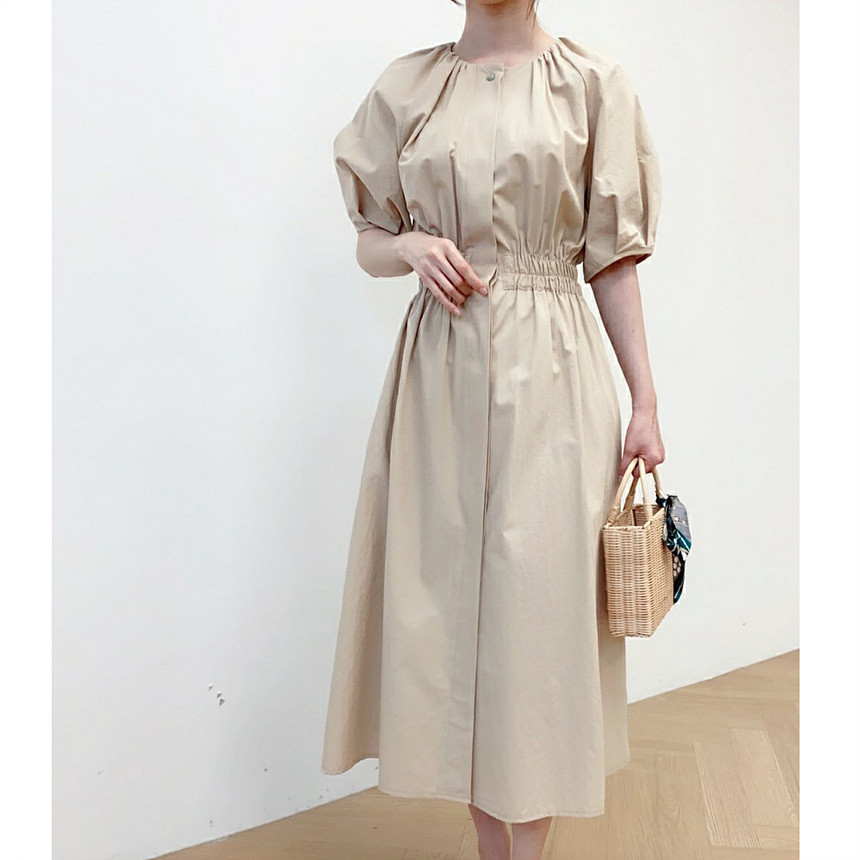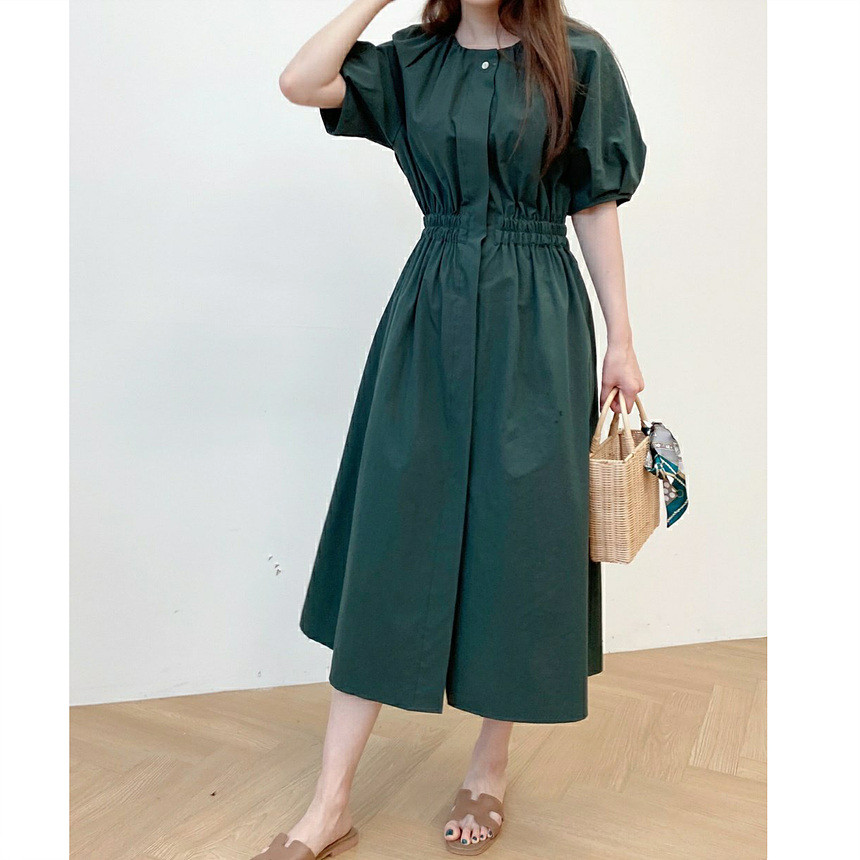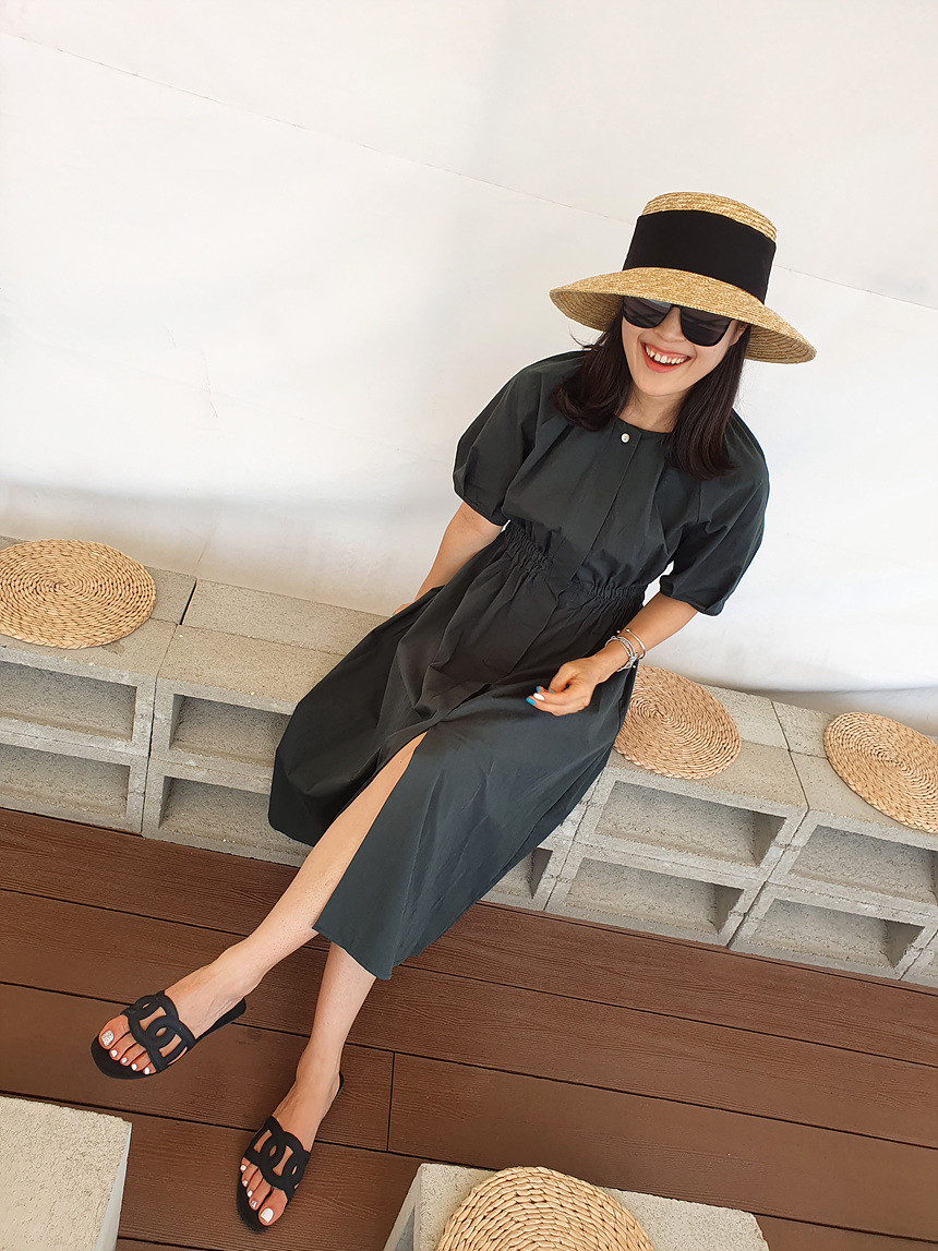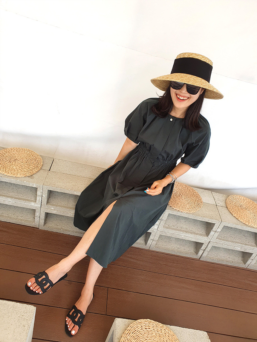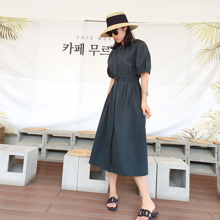 디어 허리 스모킹 볼륨 원피스
