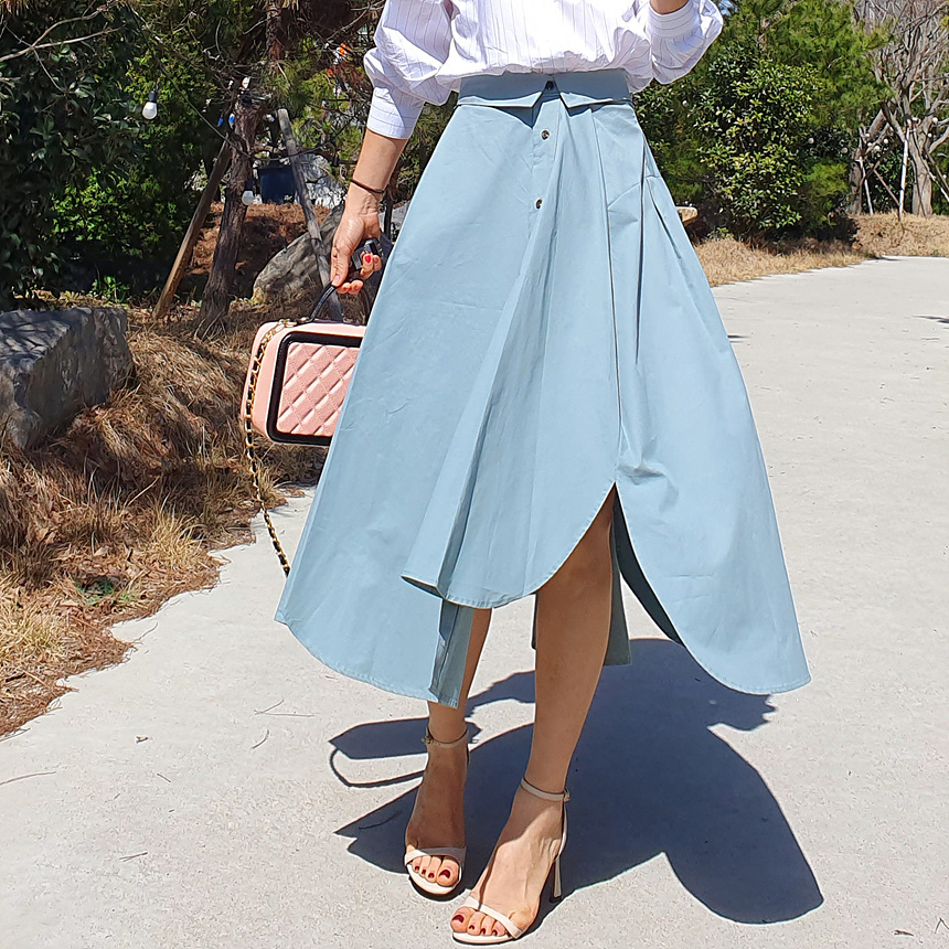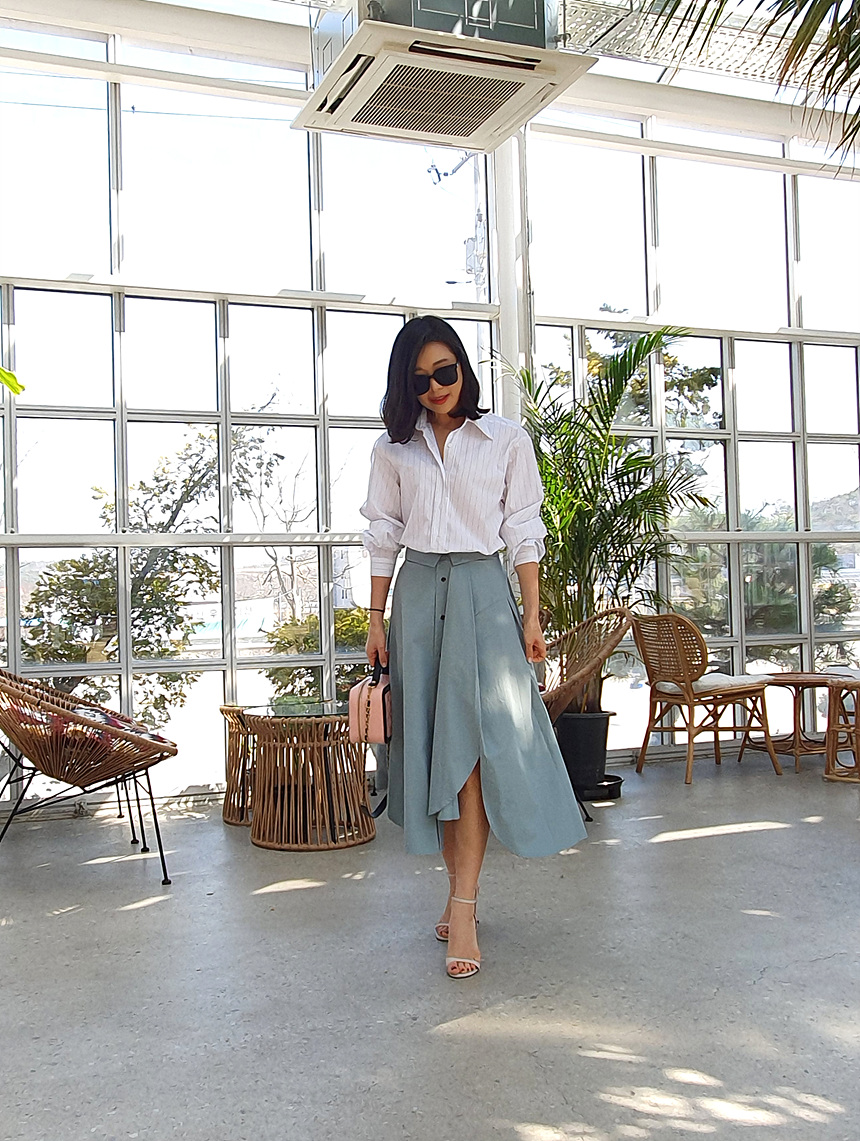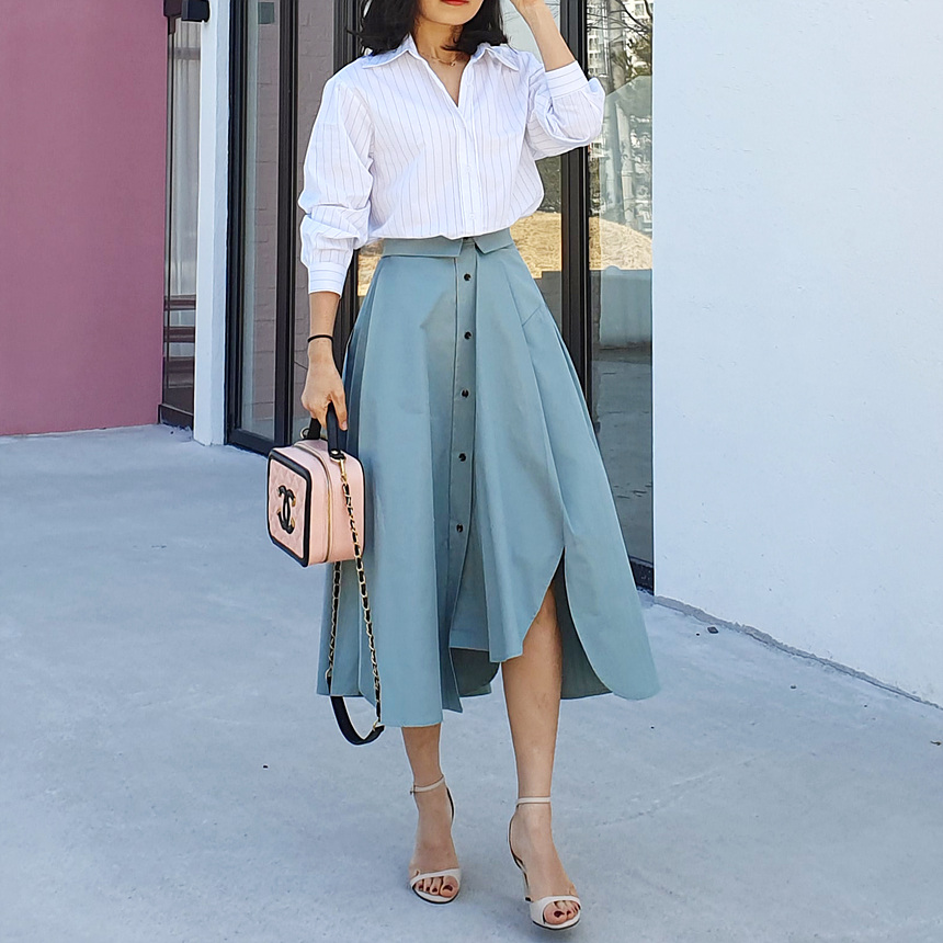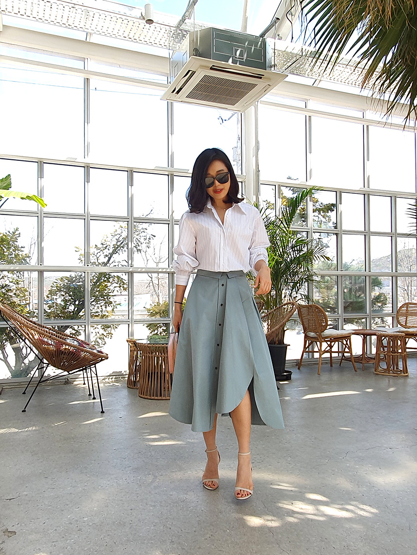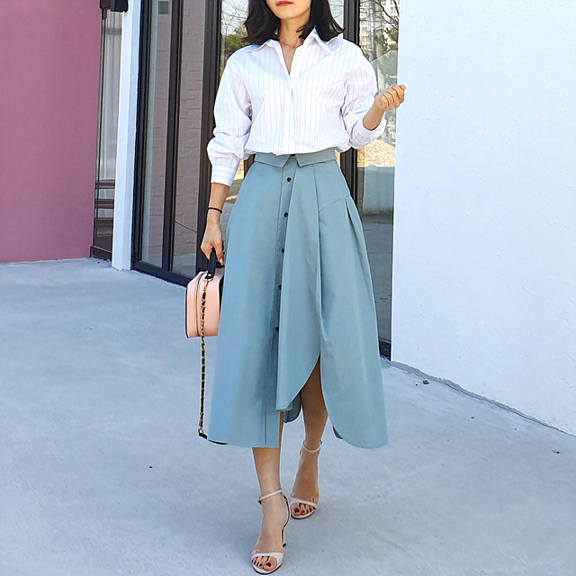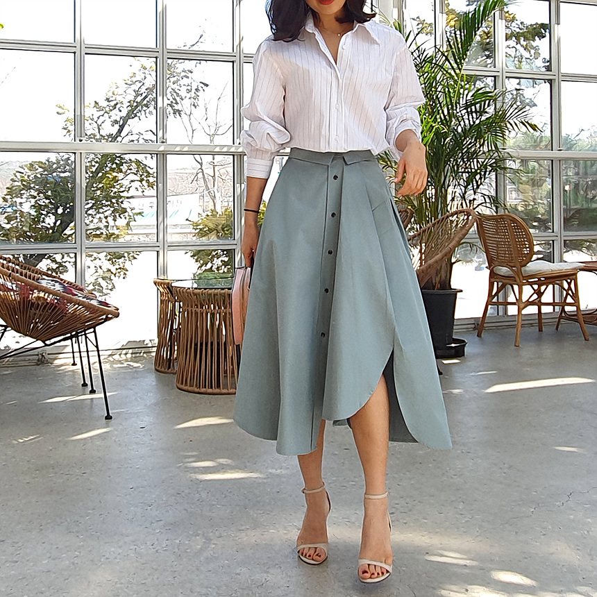 펼쳤을 때 셔츠 패턴을 스커트로 만들어 놓은 느낌인데요