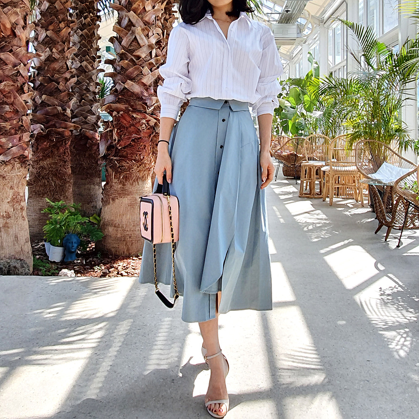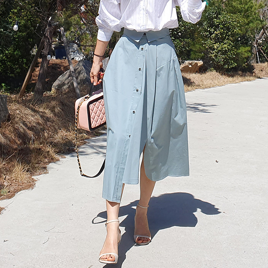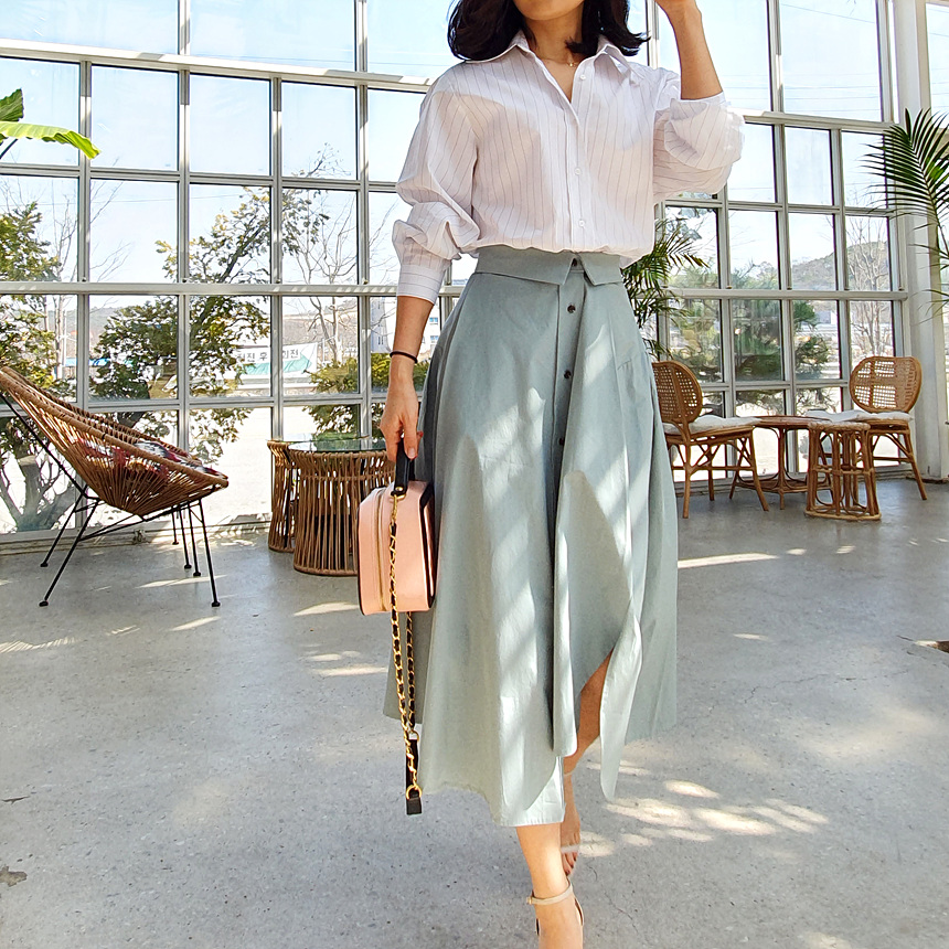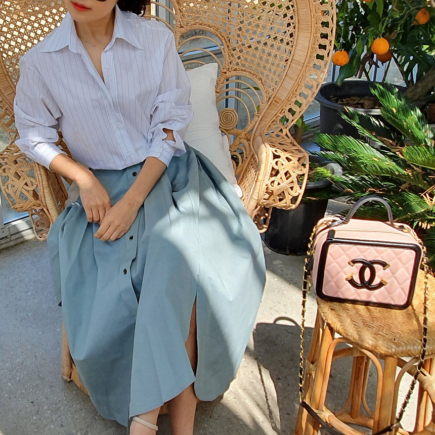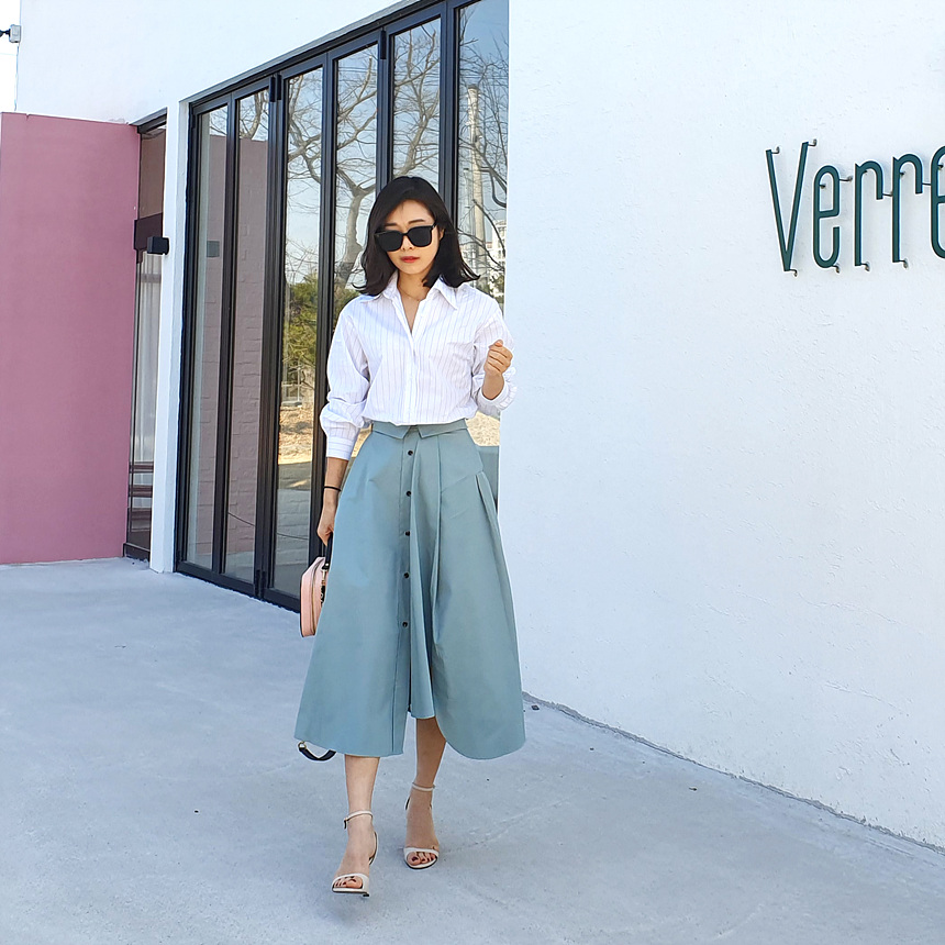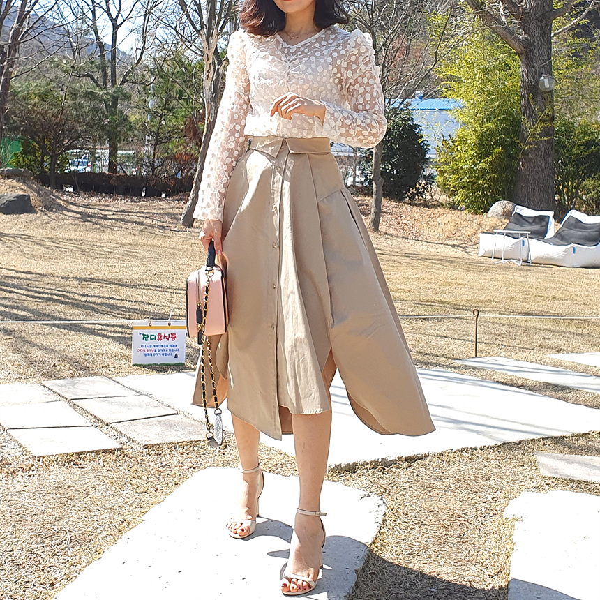 펼쳤을 때 셔츠 패턴을 스커트로 만들어 놓은 느낌인데요