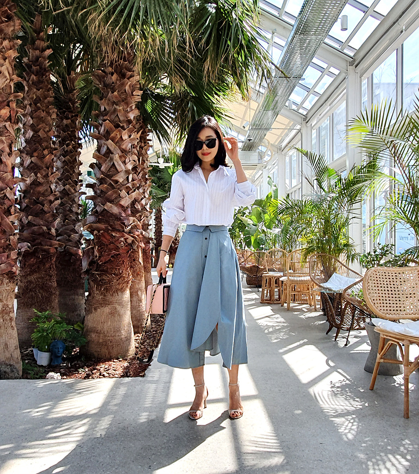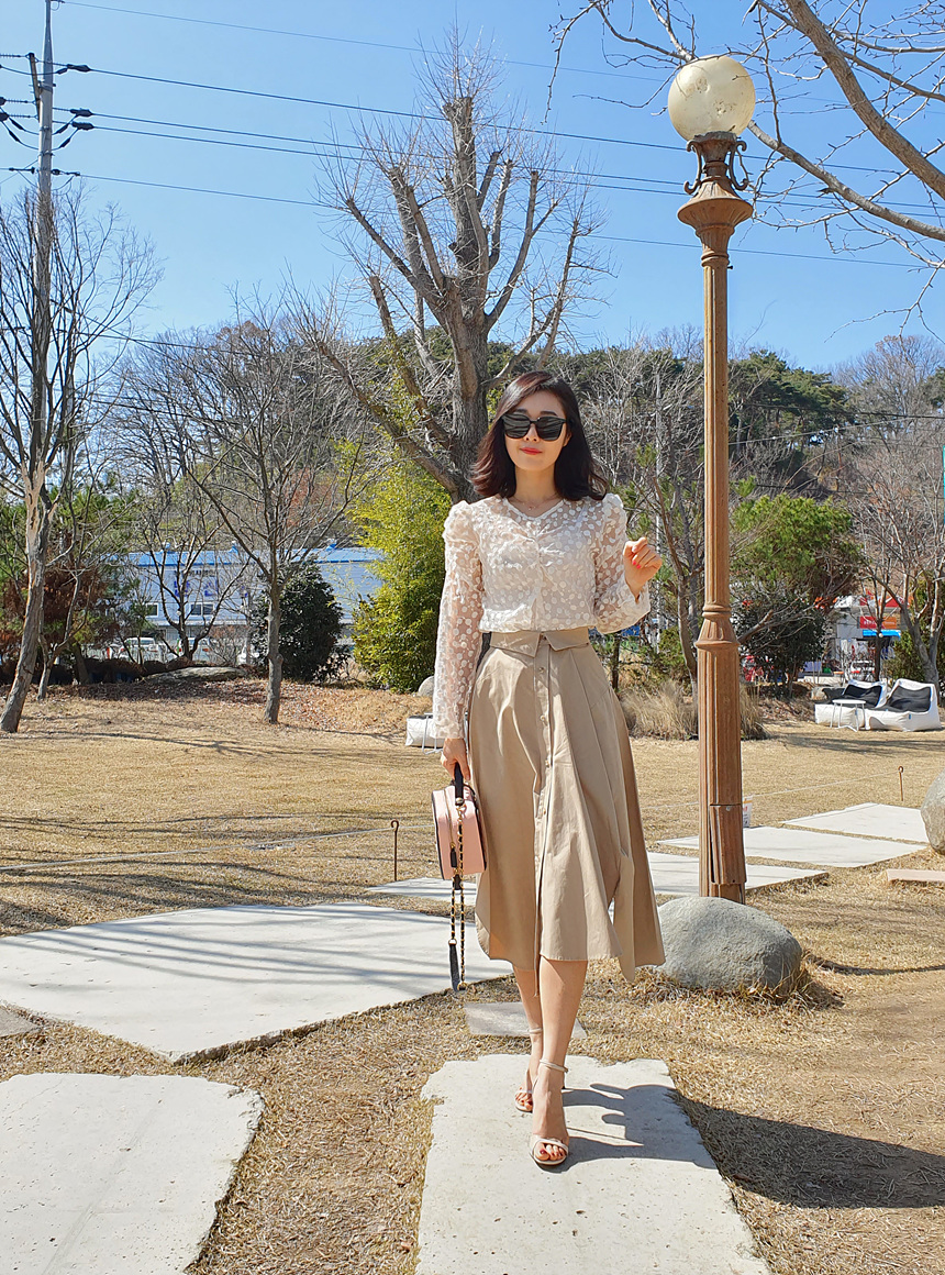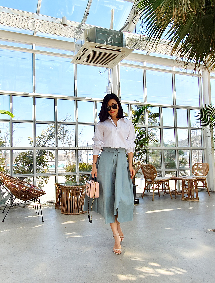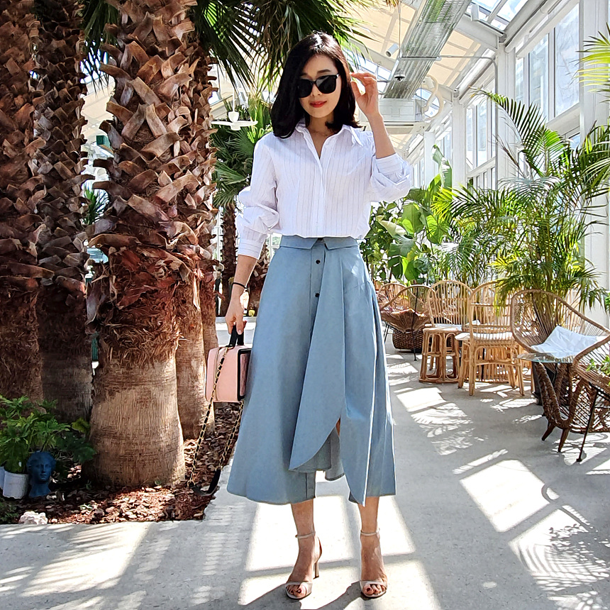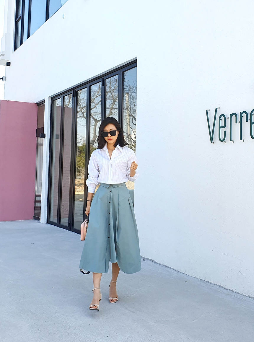 펼쳤을 때 셔츠 패턴을 스커트로 만들어 놓은 느낌인데요