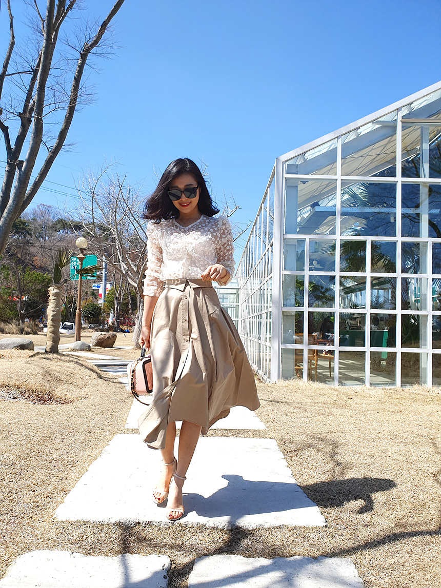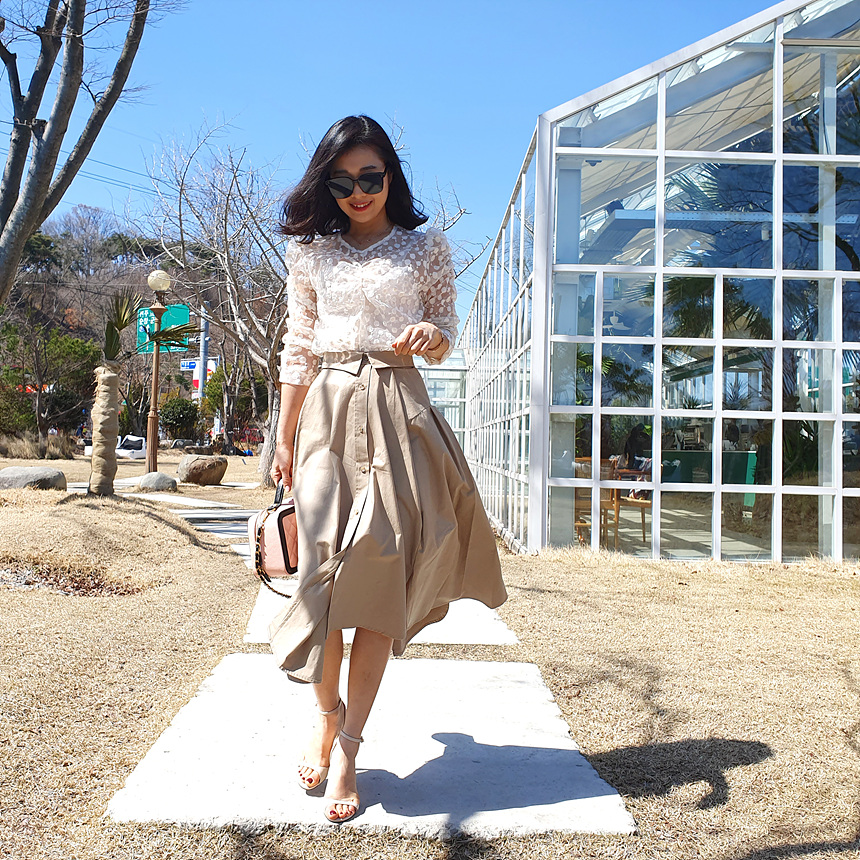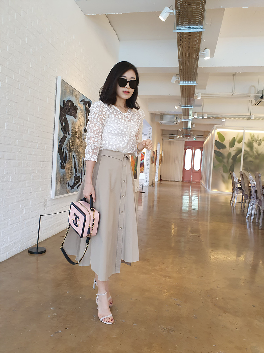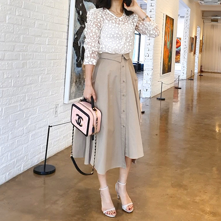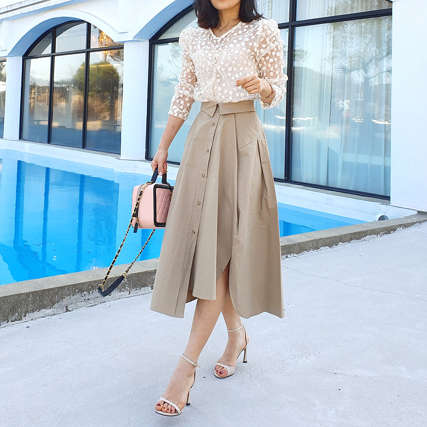 디자인에 신겨을 많이 쓴 스커트에요