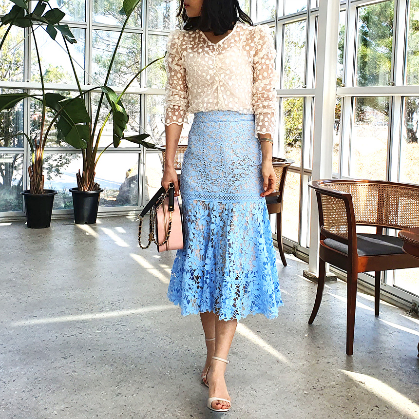 살색 안감까지도 하늘빛 레이스와 잘 어울려
