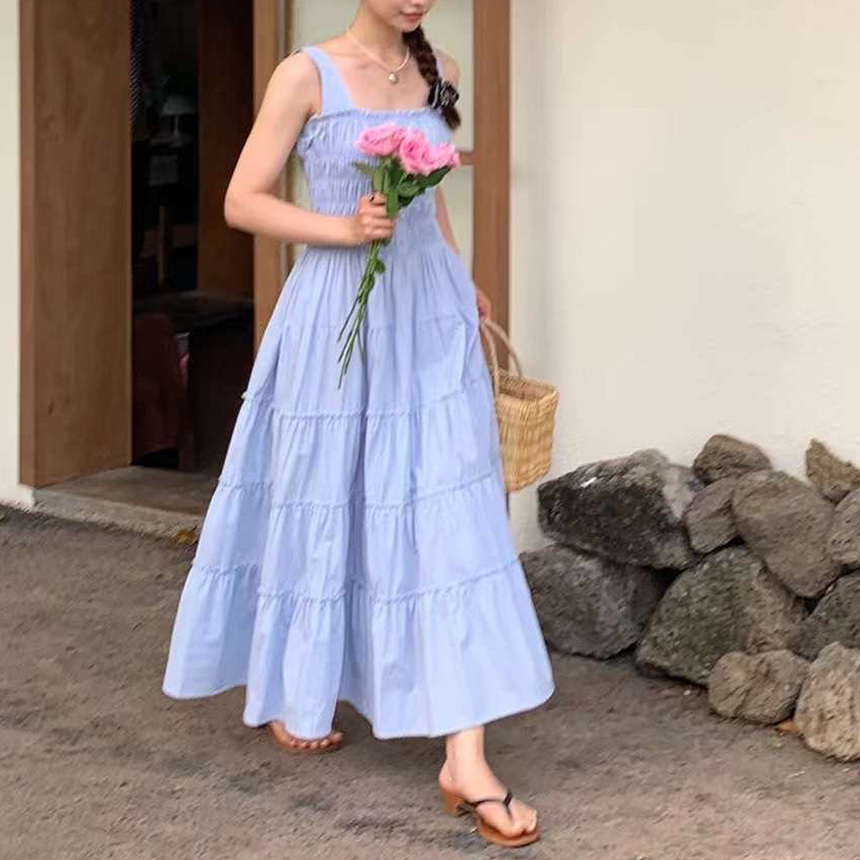 바로발송 아우어 스모킹 플레어 민소매 원피스