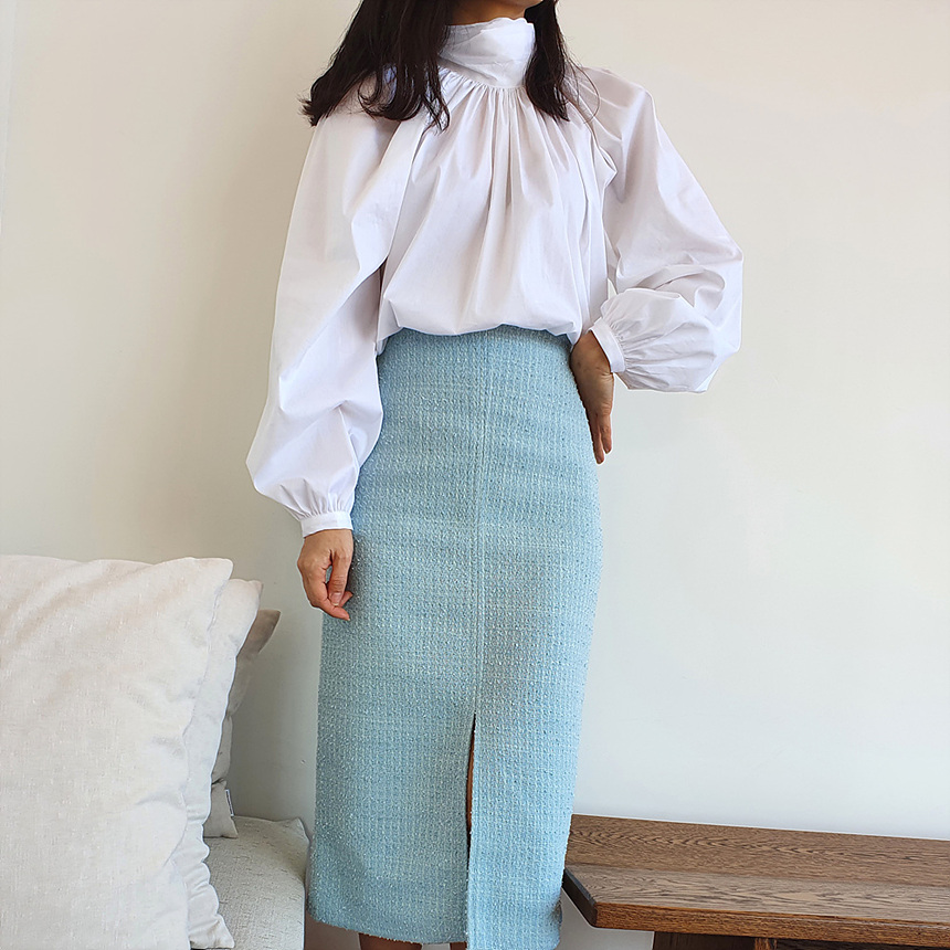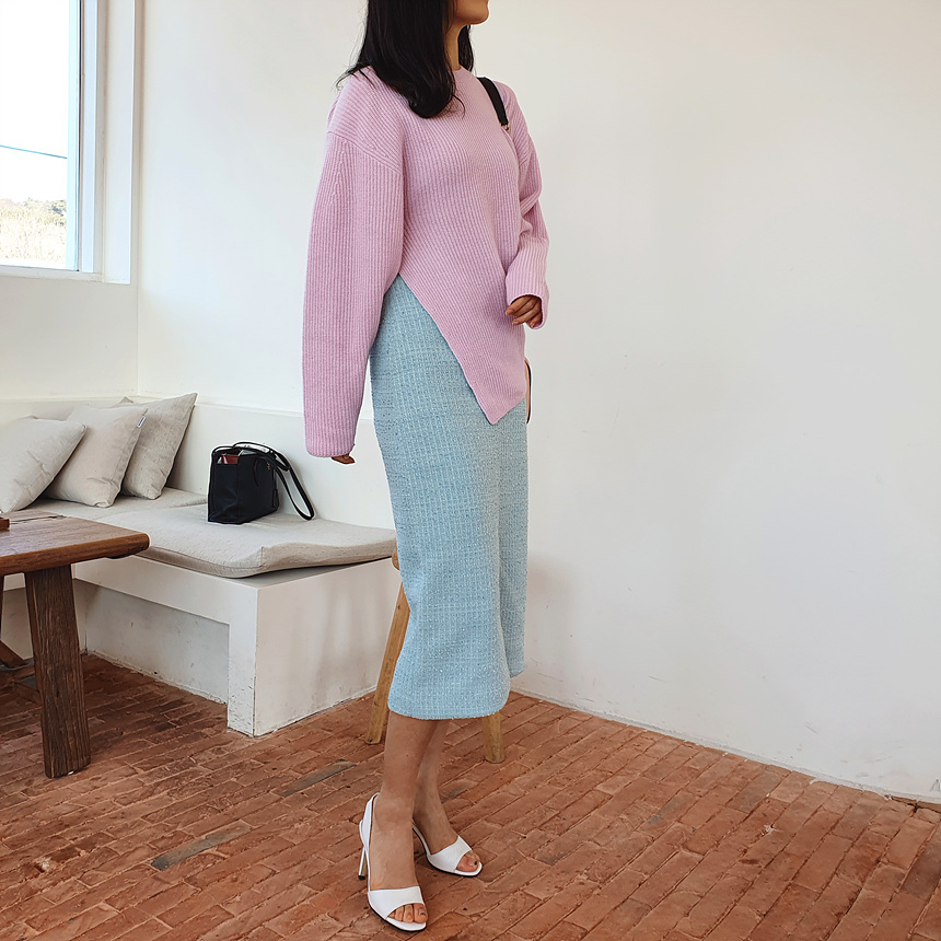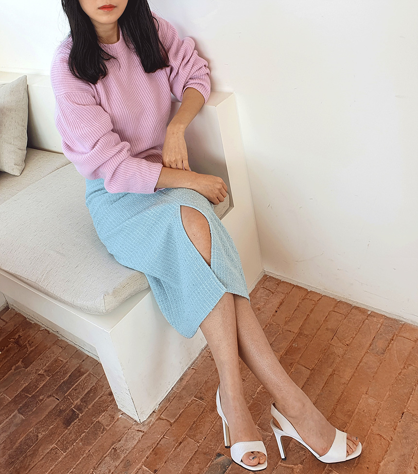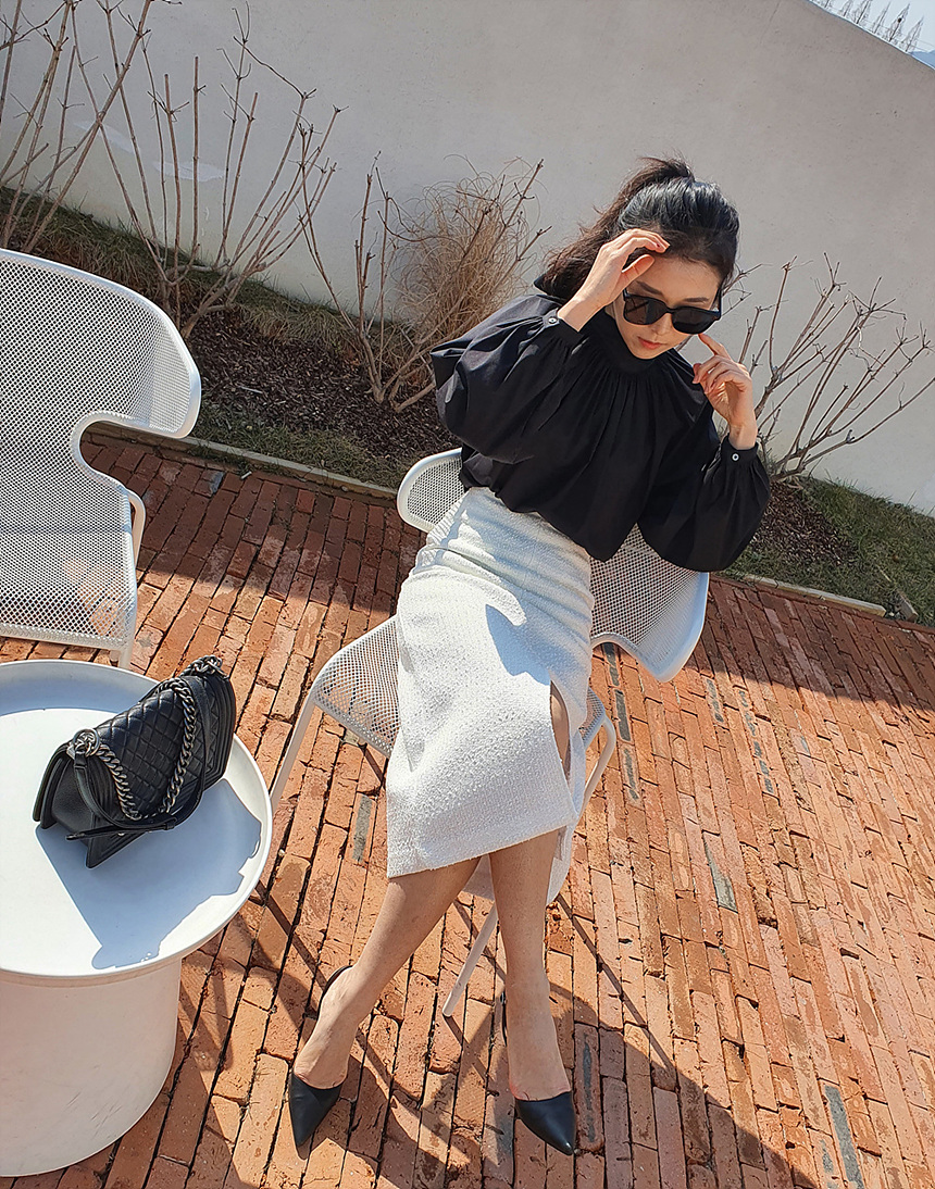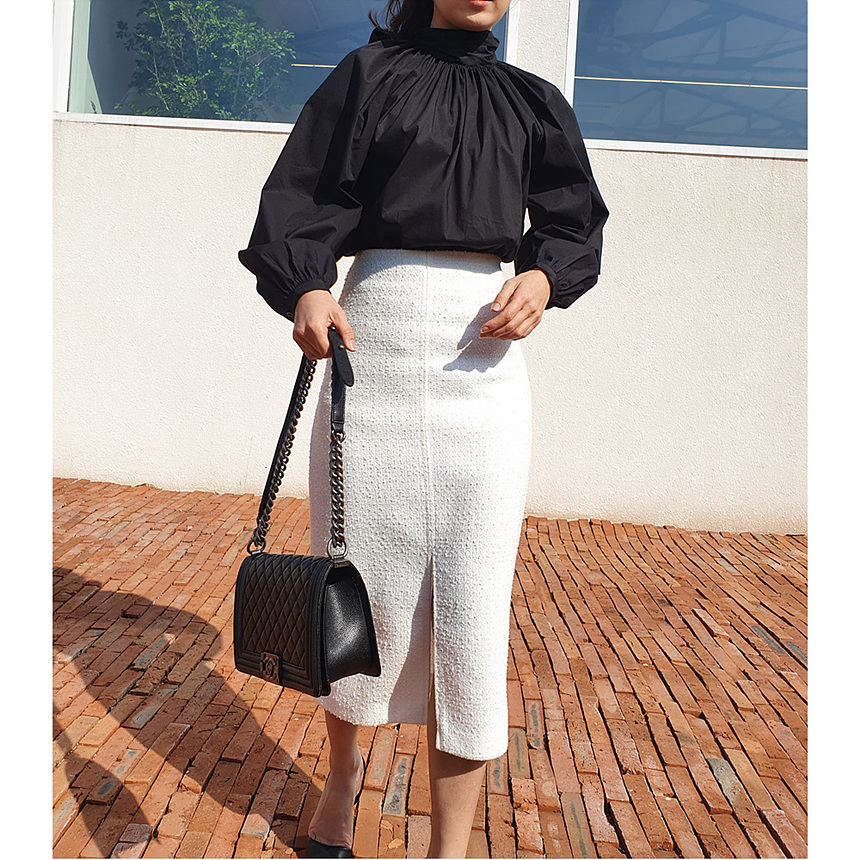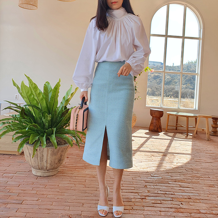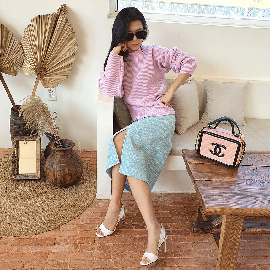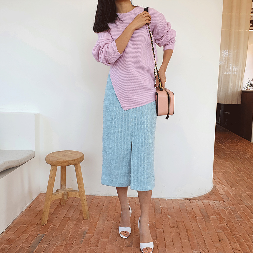 에이치 라인에 미디보다는 살짝 긴 미디 롱 스커트로