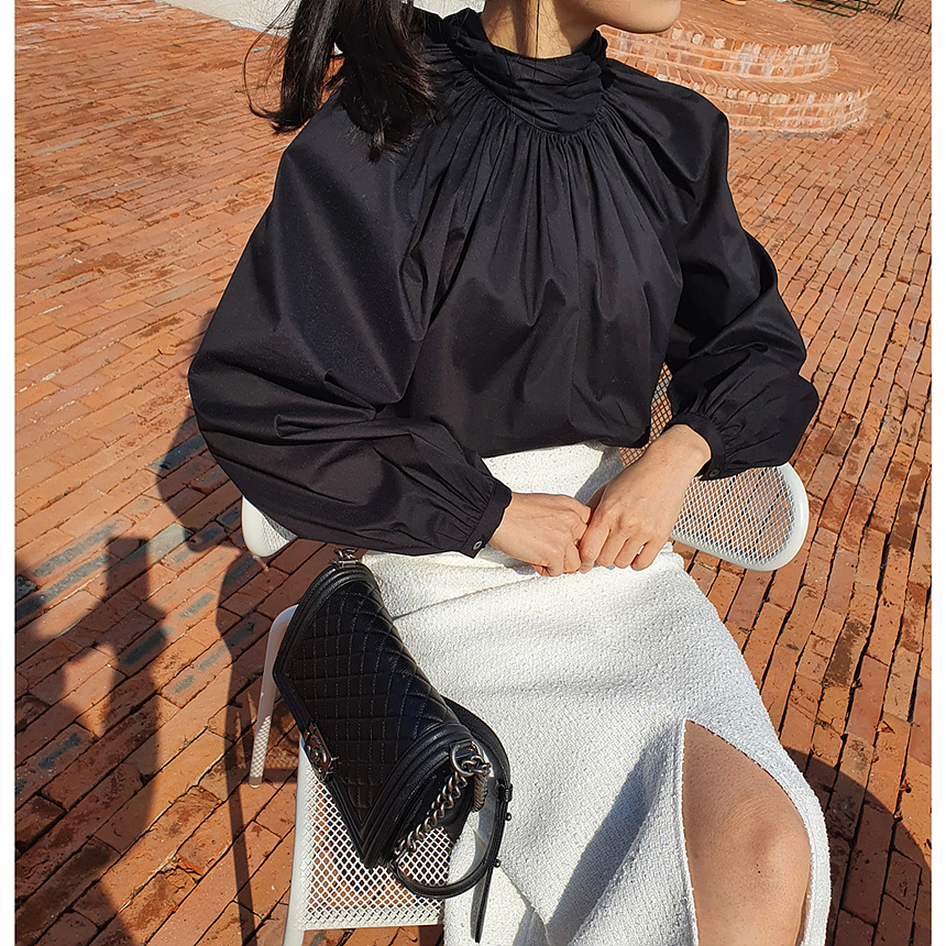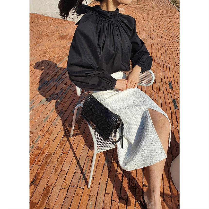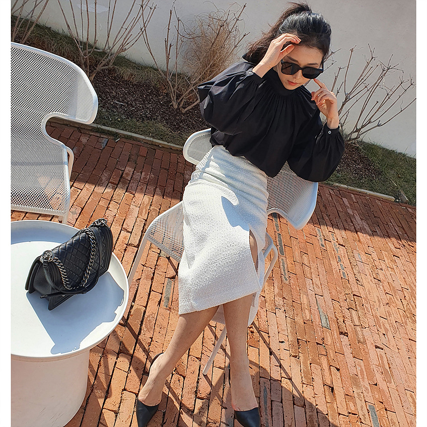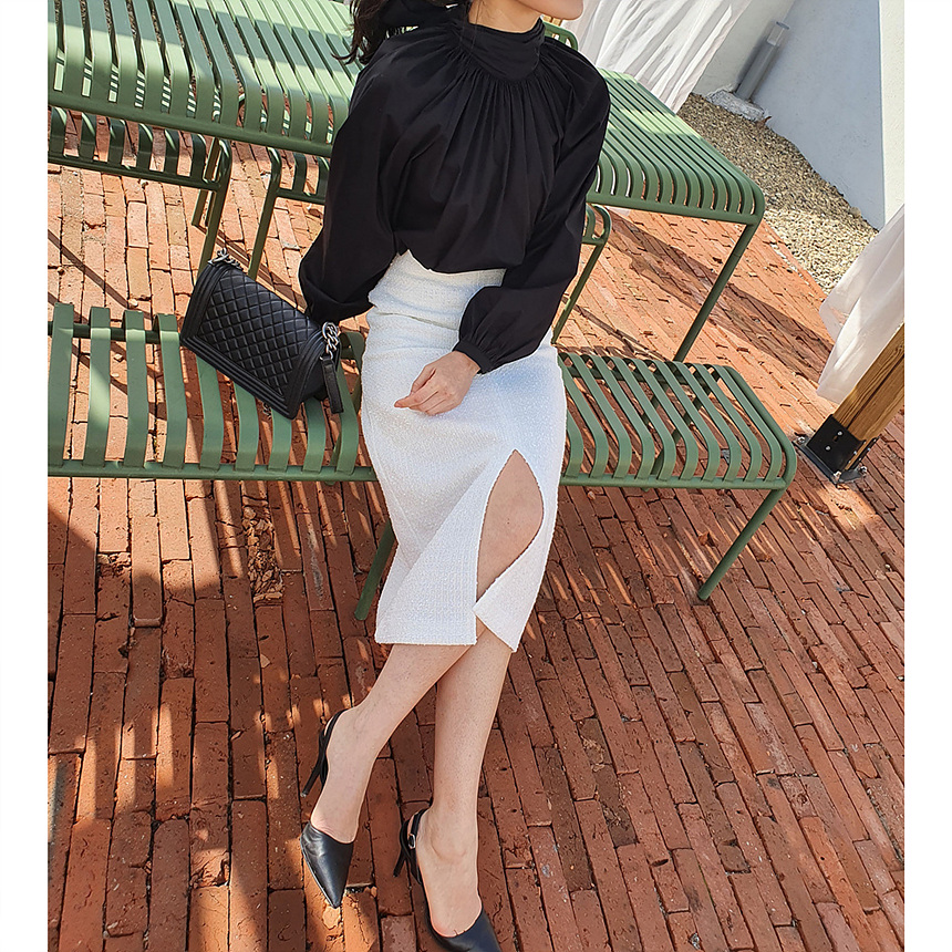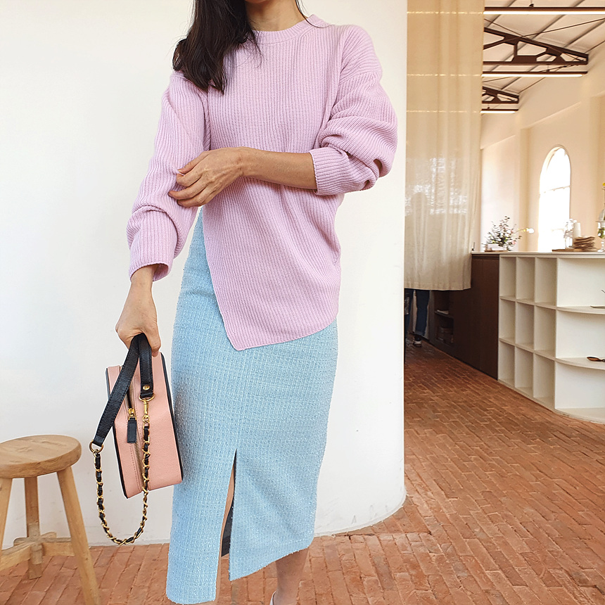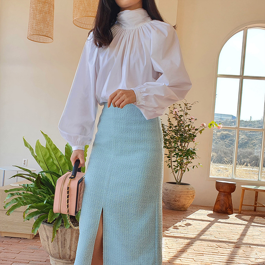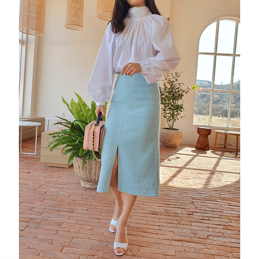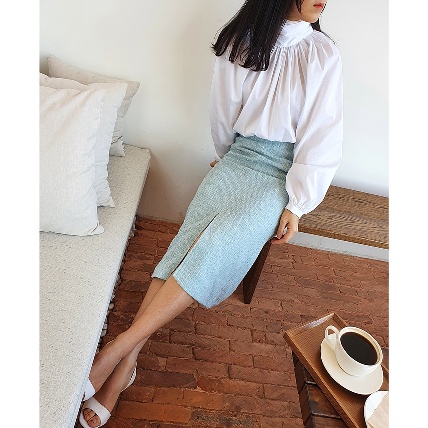 에이치 라인에 미디보다는 살짝 긴 미디 롱 스커트로