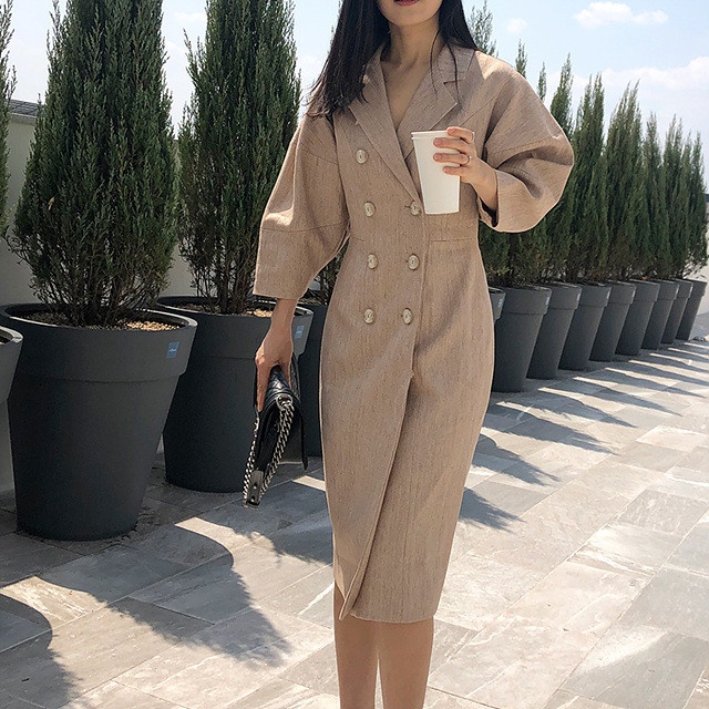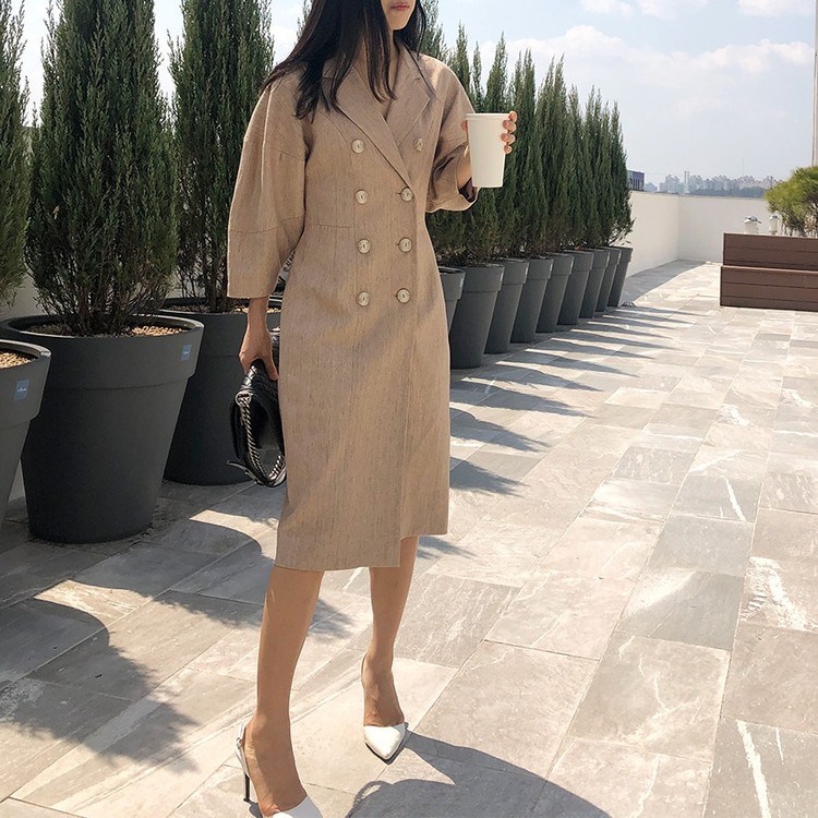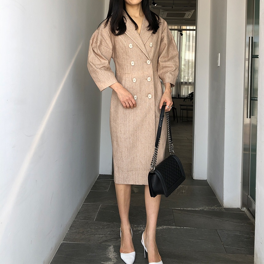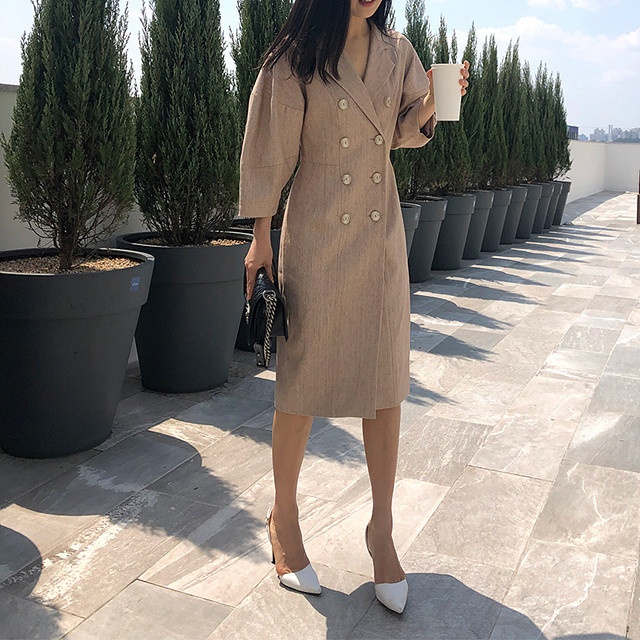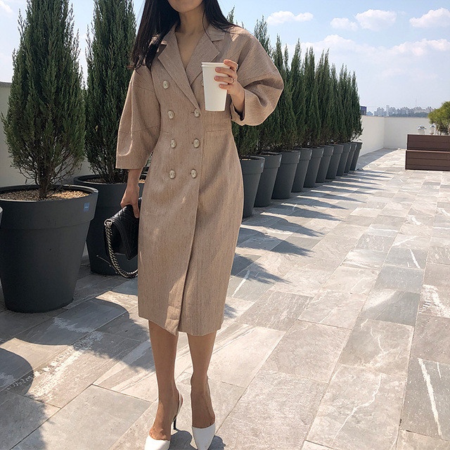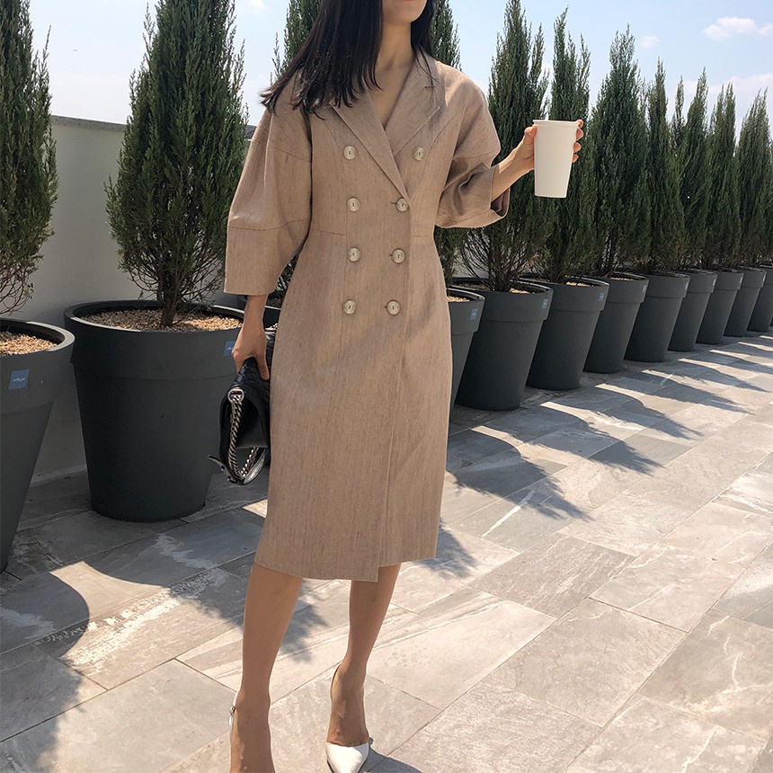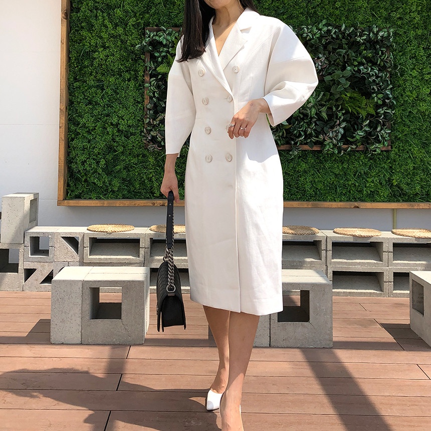 고퀄리티 리넨 벌룬 더블 버튼 원피스